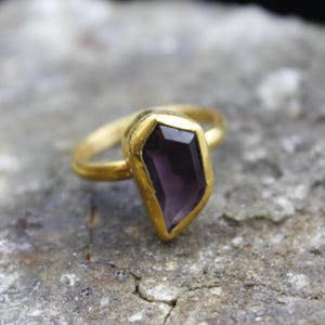 Natural Rhodolite Garnet Silver Ring | 24K Gold Over 925k Solid Silver
