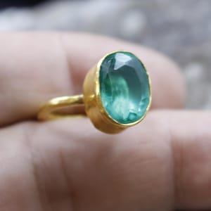 Natural Cabochon Coral Ring | 24K Gold Over 925k Solid Silver
