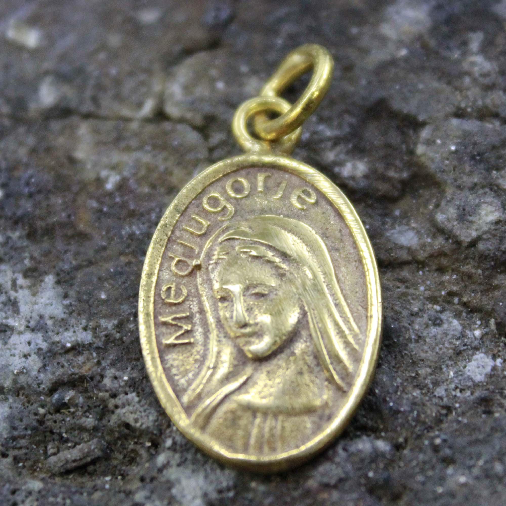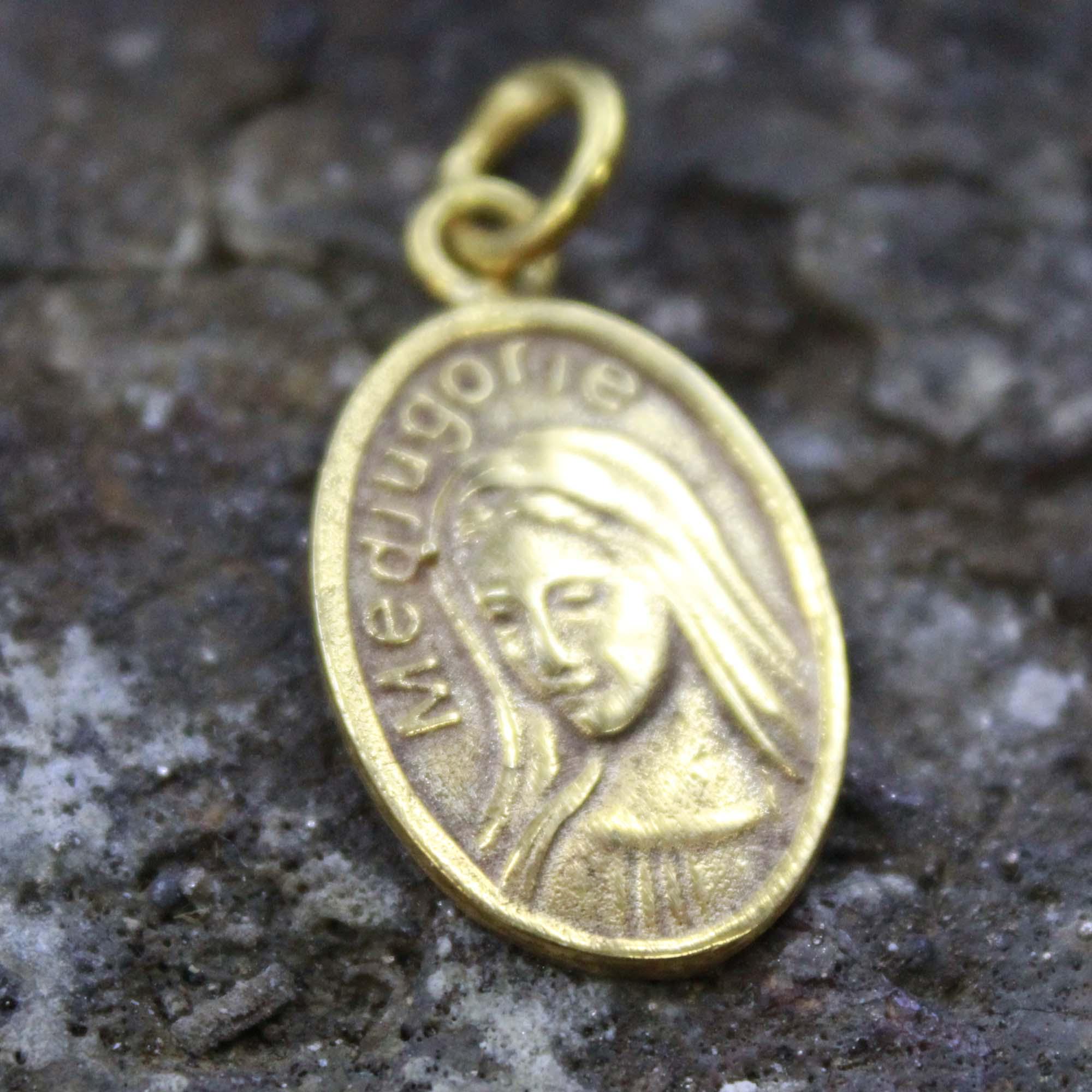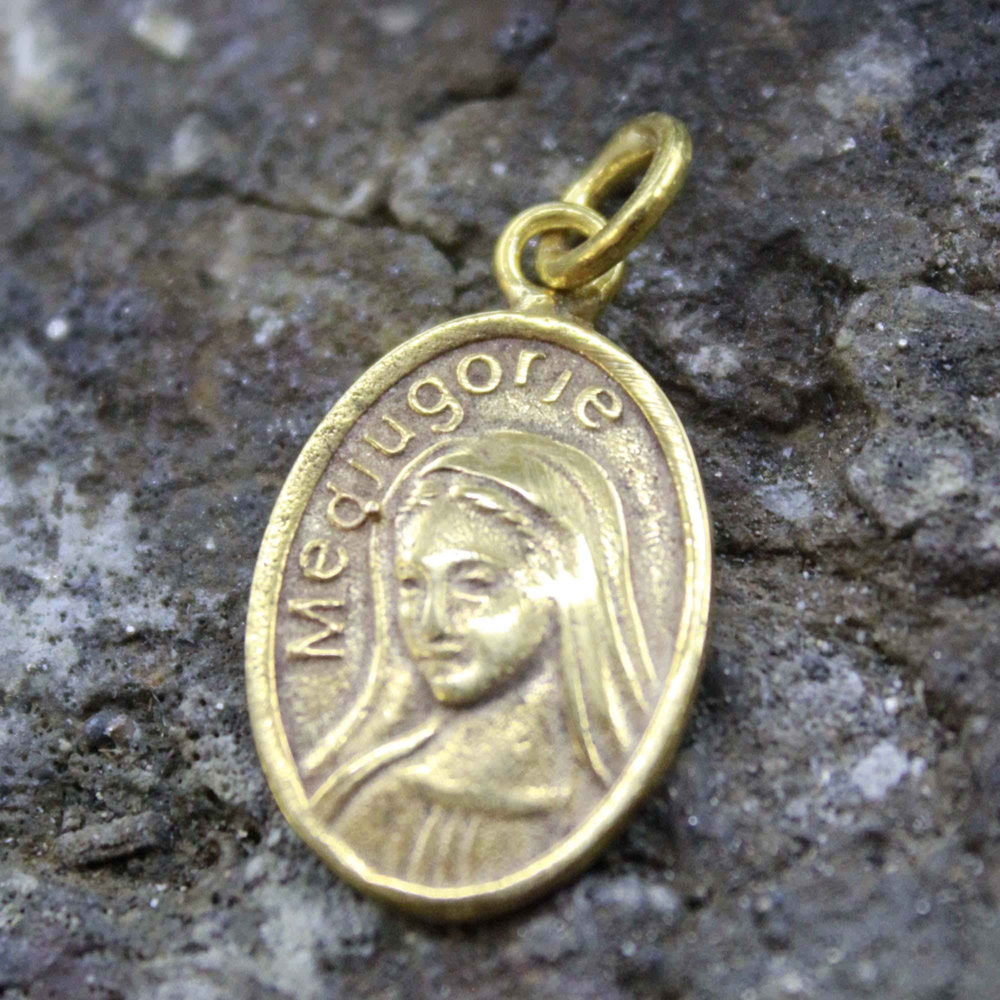 Handmade Bronze Virgin Mary Intaglio Pendant | Sterling Silver Religious Necklace | Catholic Christian Jewelry Gift