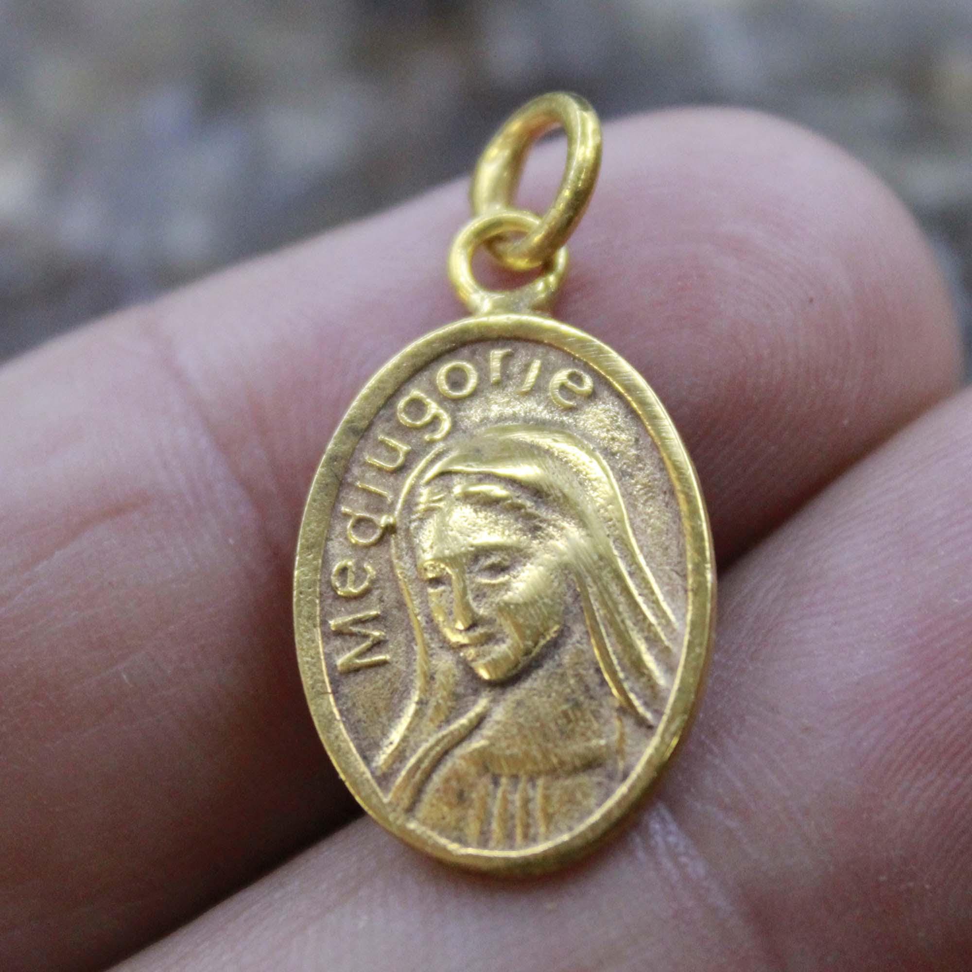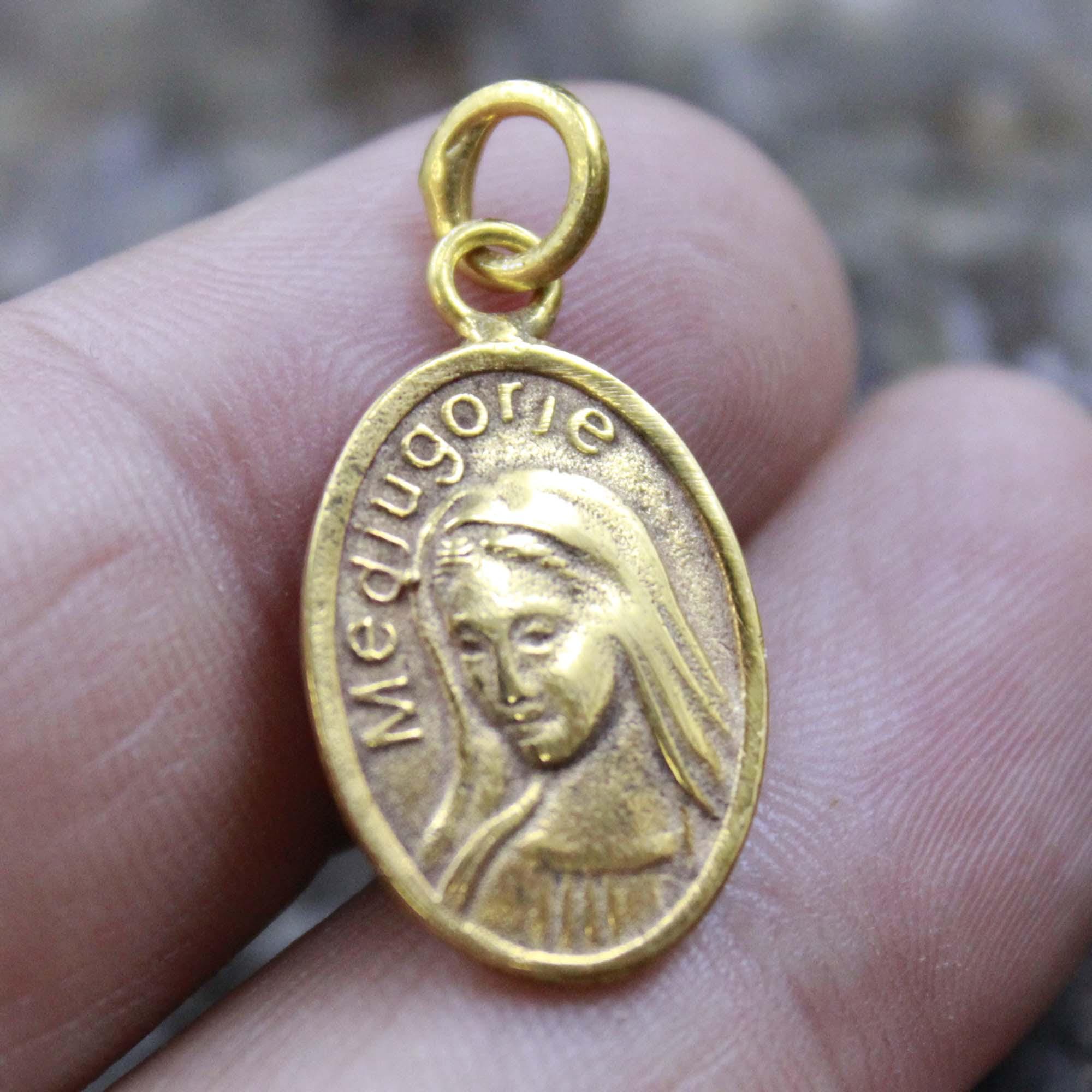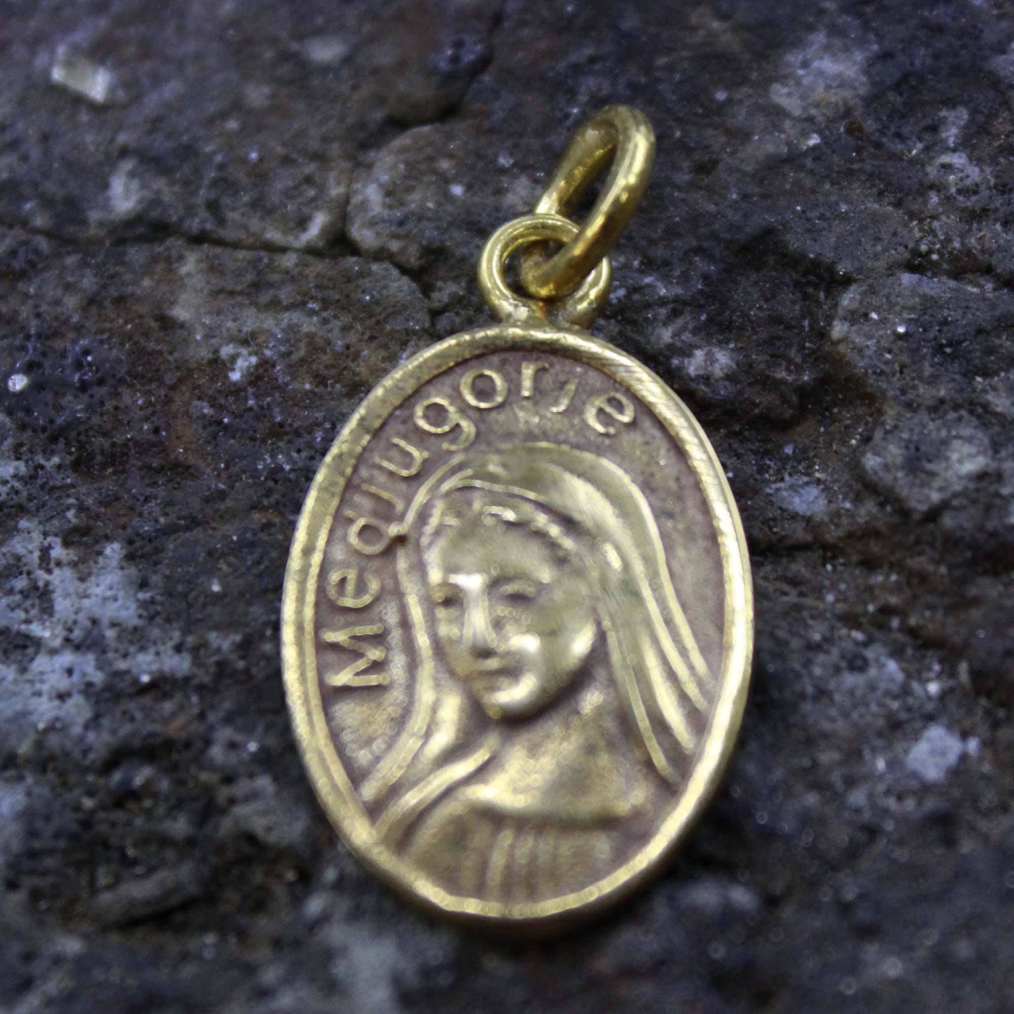 Handmade Bronze Virgin Mary Intaglio Pendant | Sterling Silver Religious Necklace | Catholic Christian Jewelry Gift