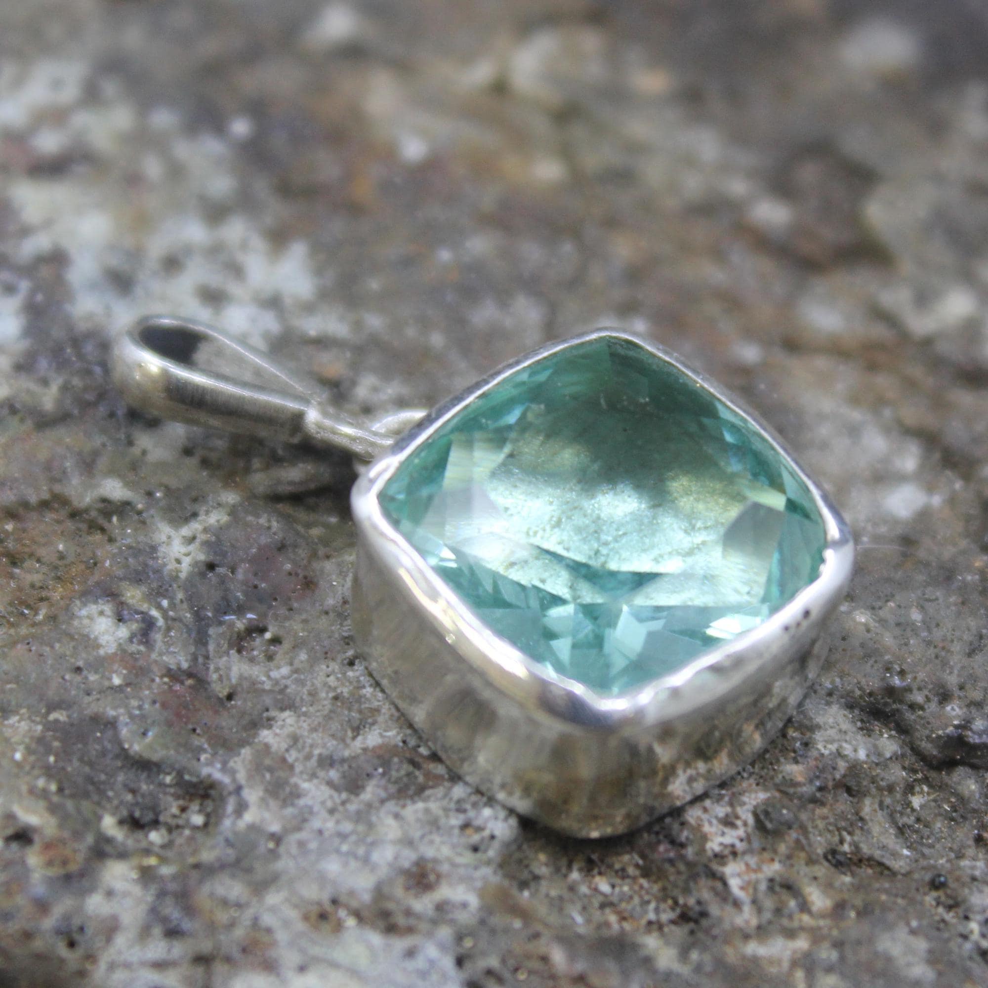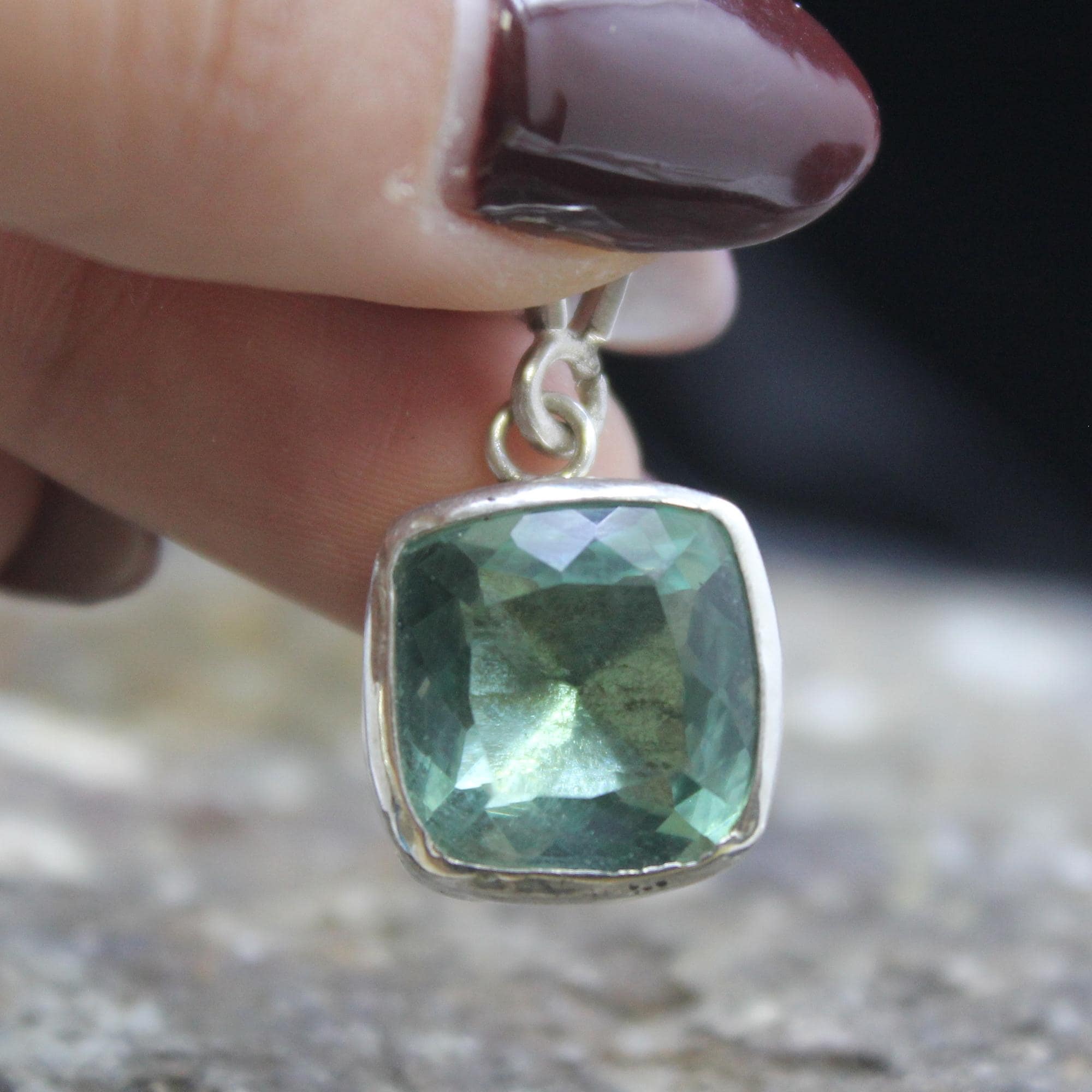 METAL: 925k Solid Silver GEM: Lab Created Paraiba Tourmaline Stone Size: 12 x 12 mm Finish : Yellow Gold Vermeil , Solid Silver Finish, Rose Gold Vermeil