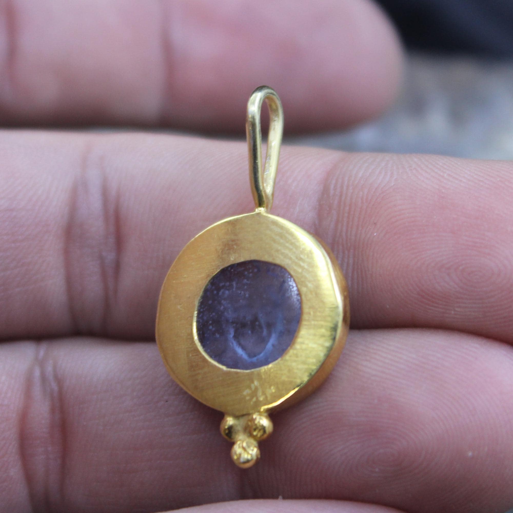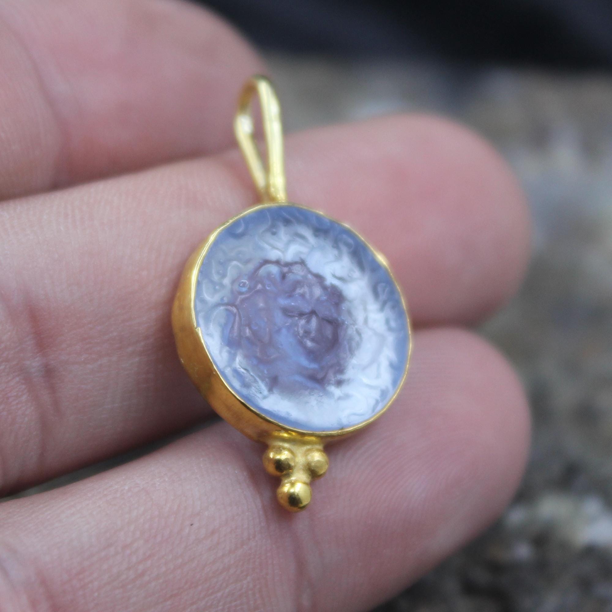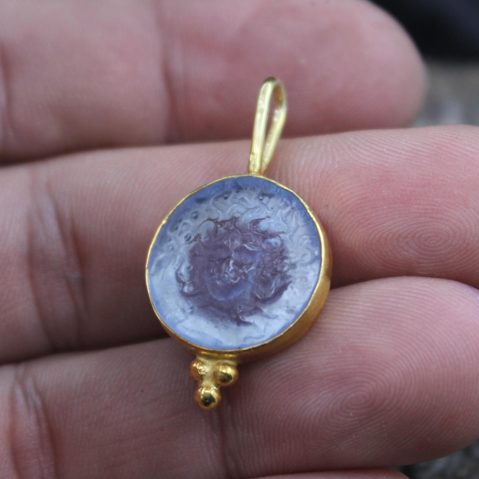 METAL: 925k Solid Silver and Bronze coin GEM: Enamel intaglio Intaglio Size: 17 x 17 mm Pendant Length : 27 mm Finish : Yellow Gold Vermeil , Solid Silver Finish, Rose Gold Vermeil