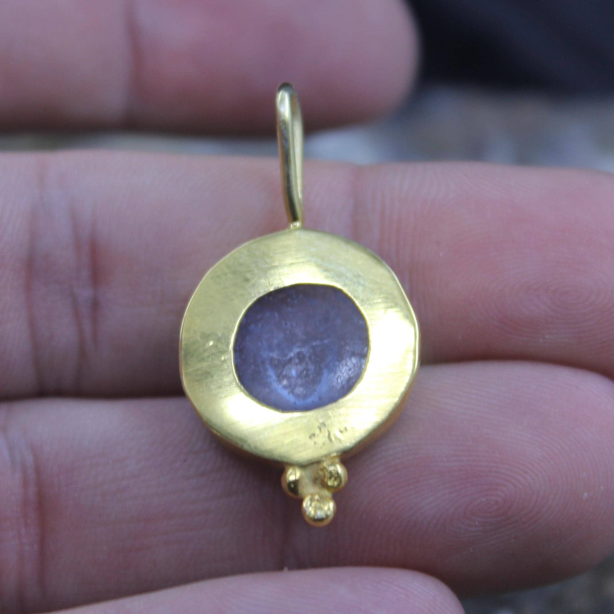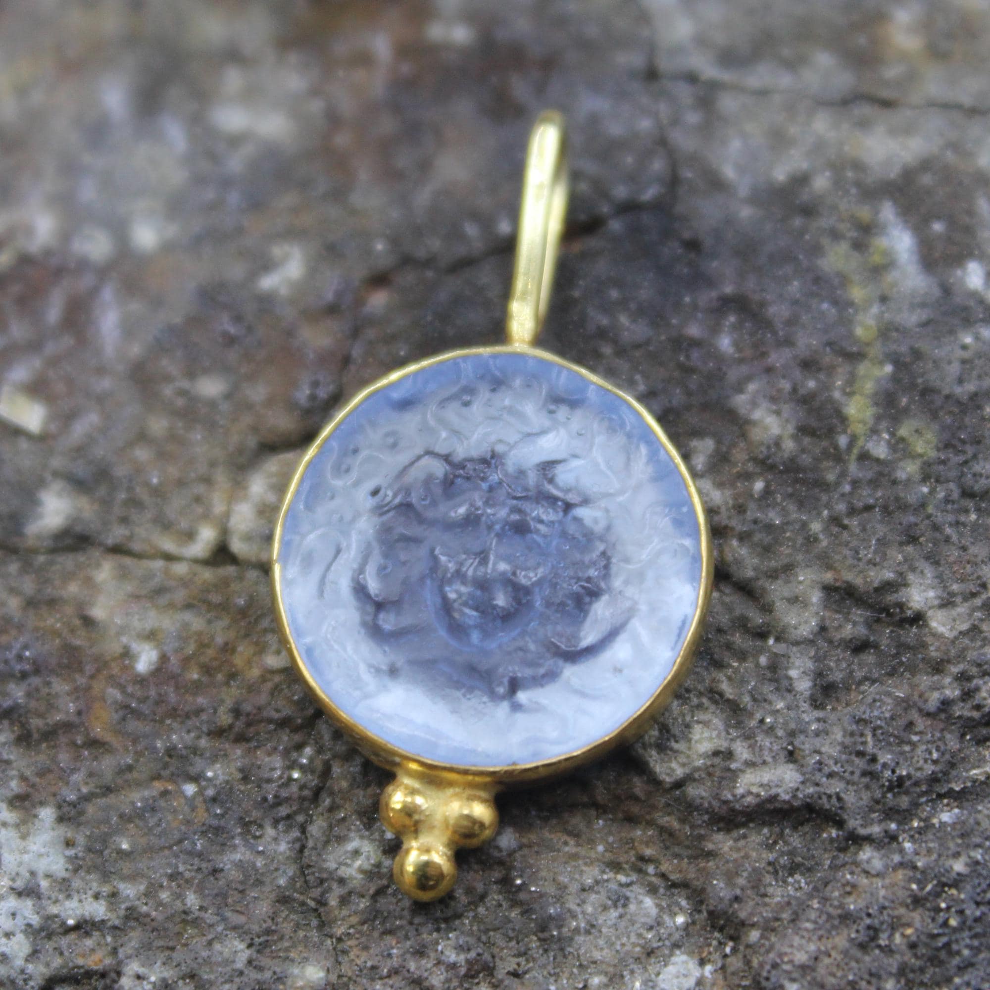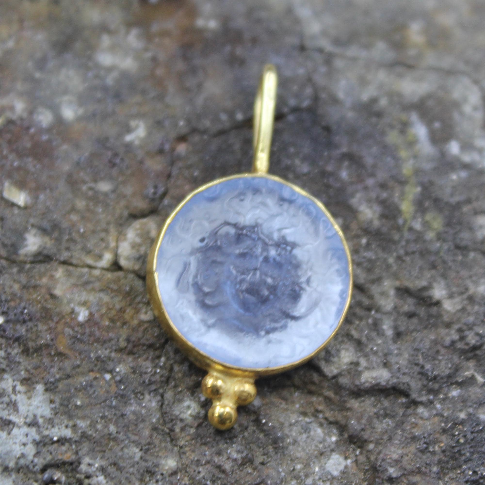 METAL: 925k Solid Silver and Bronze coin GEM: Enamel intaglio Intaglio Size: 17 x 17 mm Pendant Length : 27 mm Finish : Yellow Gold Vermeil , Solid Silver Finish, Rose Gold Vermeil