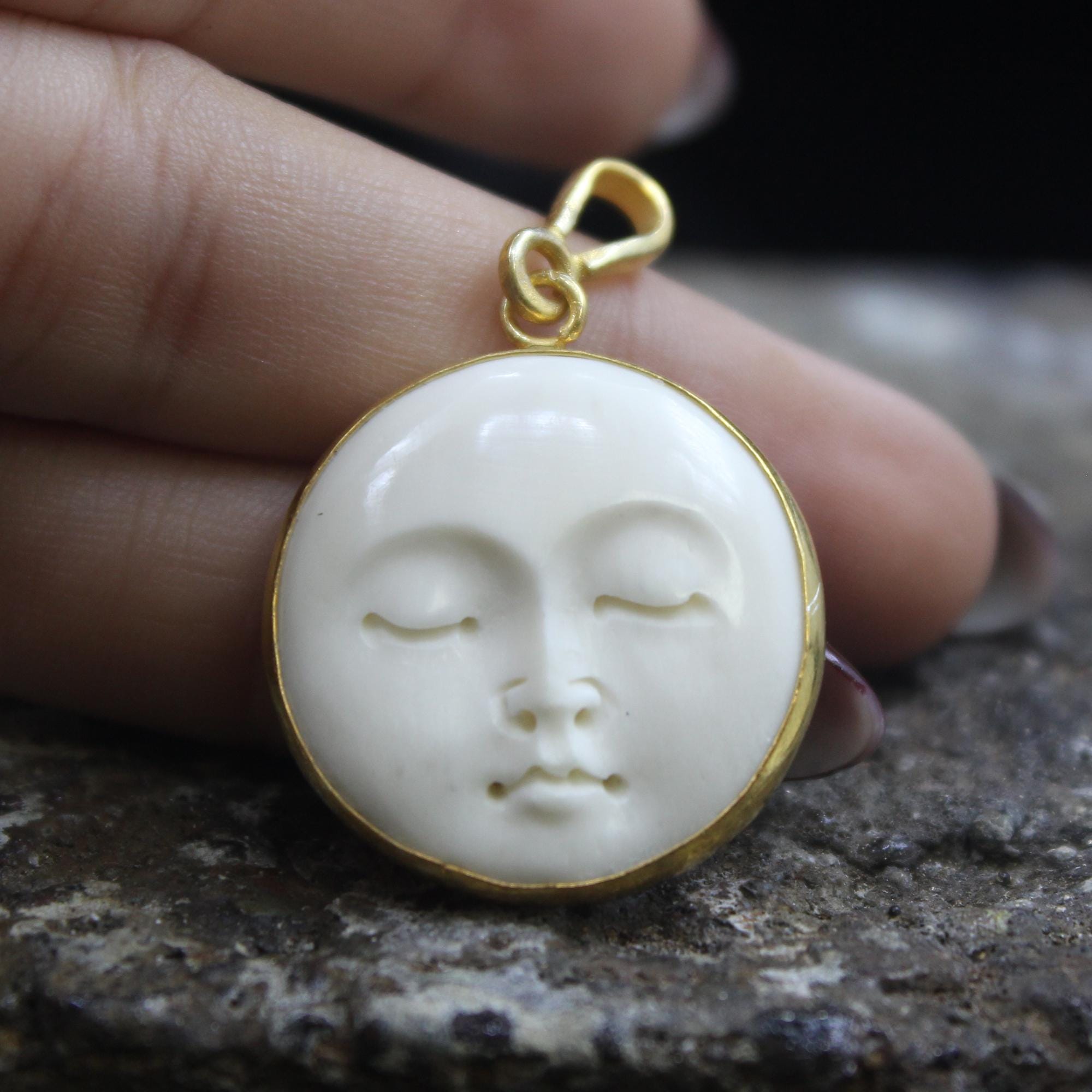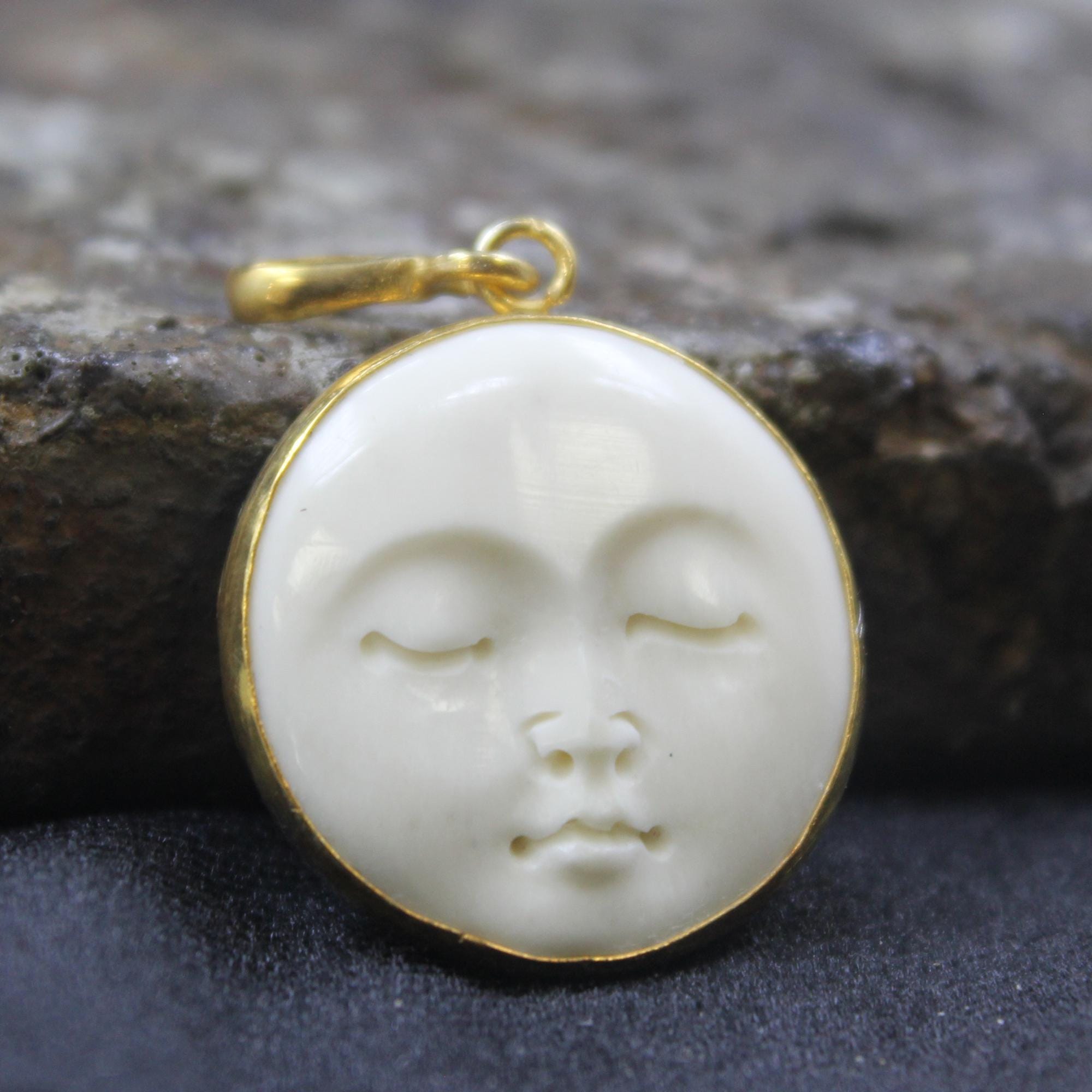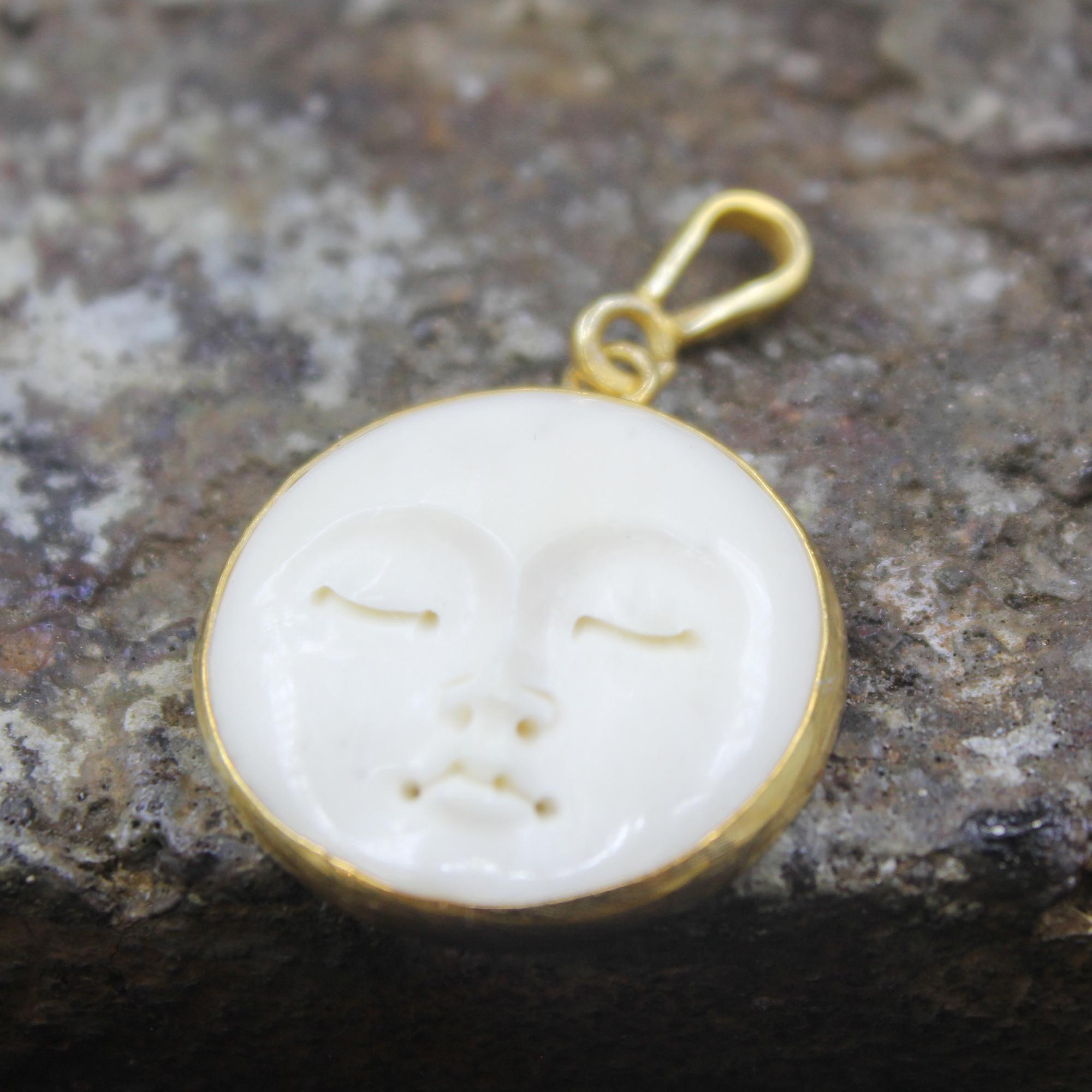 and Carved Bone Buddha Pendant – 24K Gold Vermeil over 925 Sterling Silver