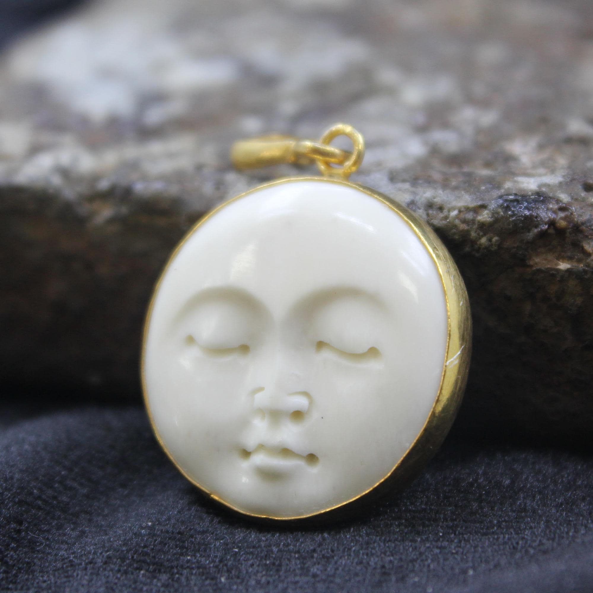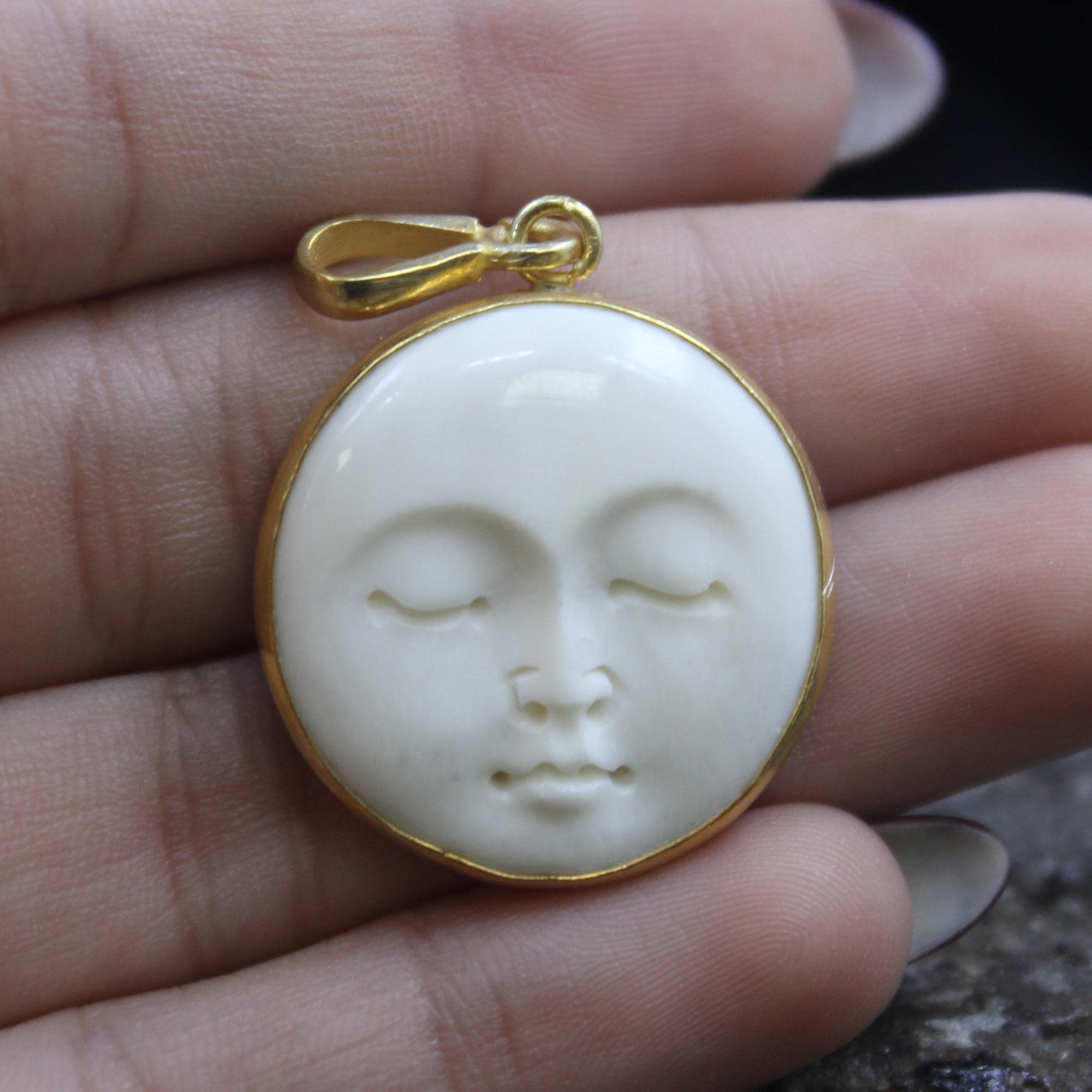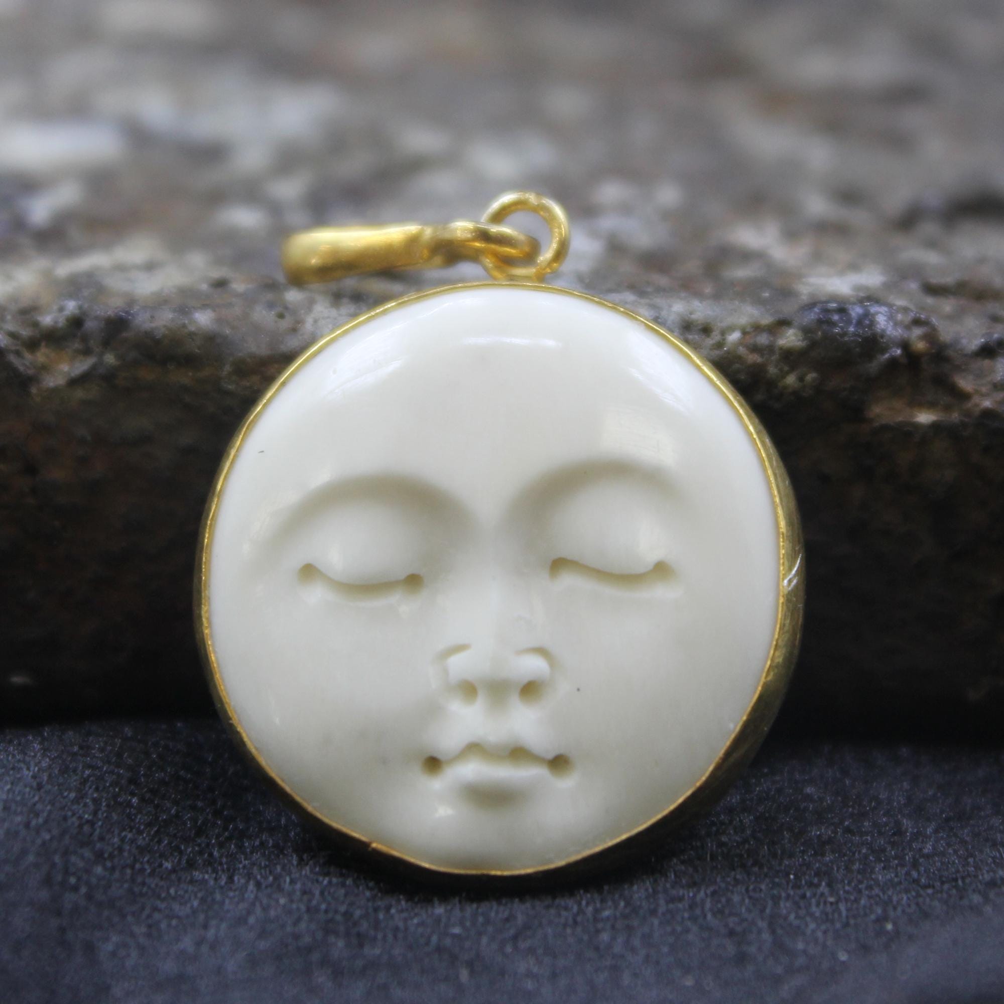and Carved Bone Buddha Pendant – 24K Gold Vermeil over 925 Sterling Silver