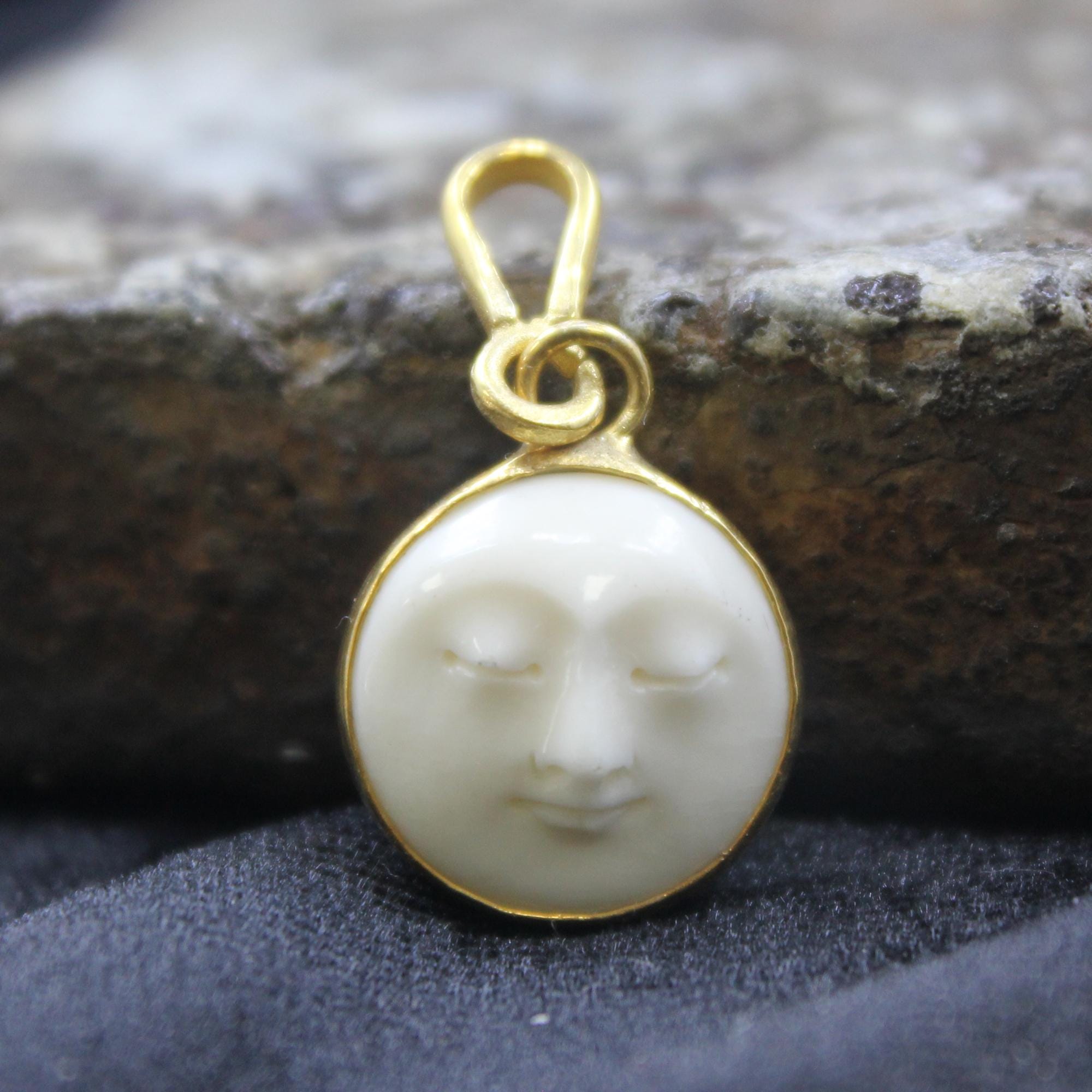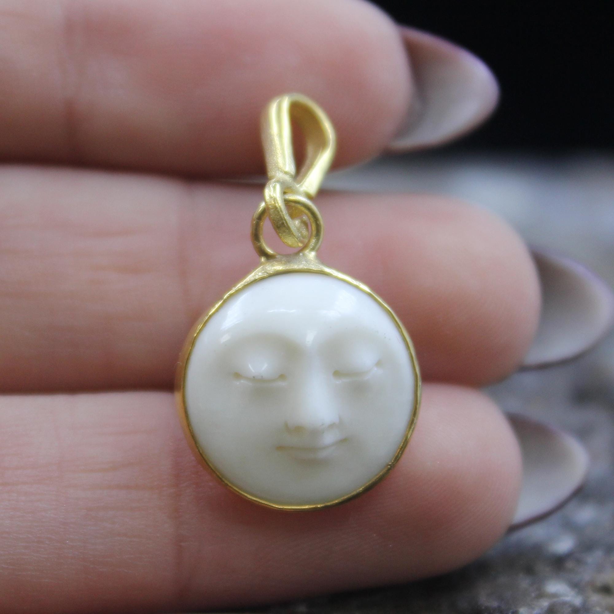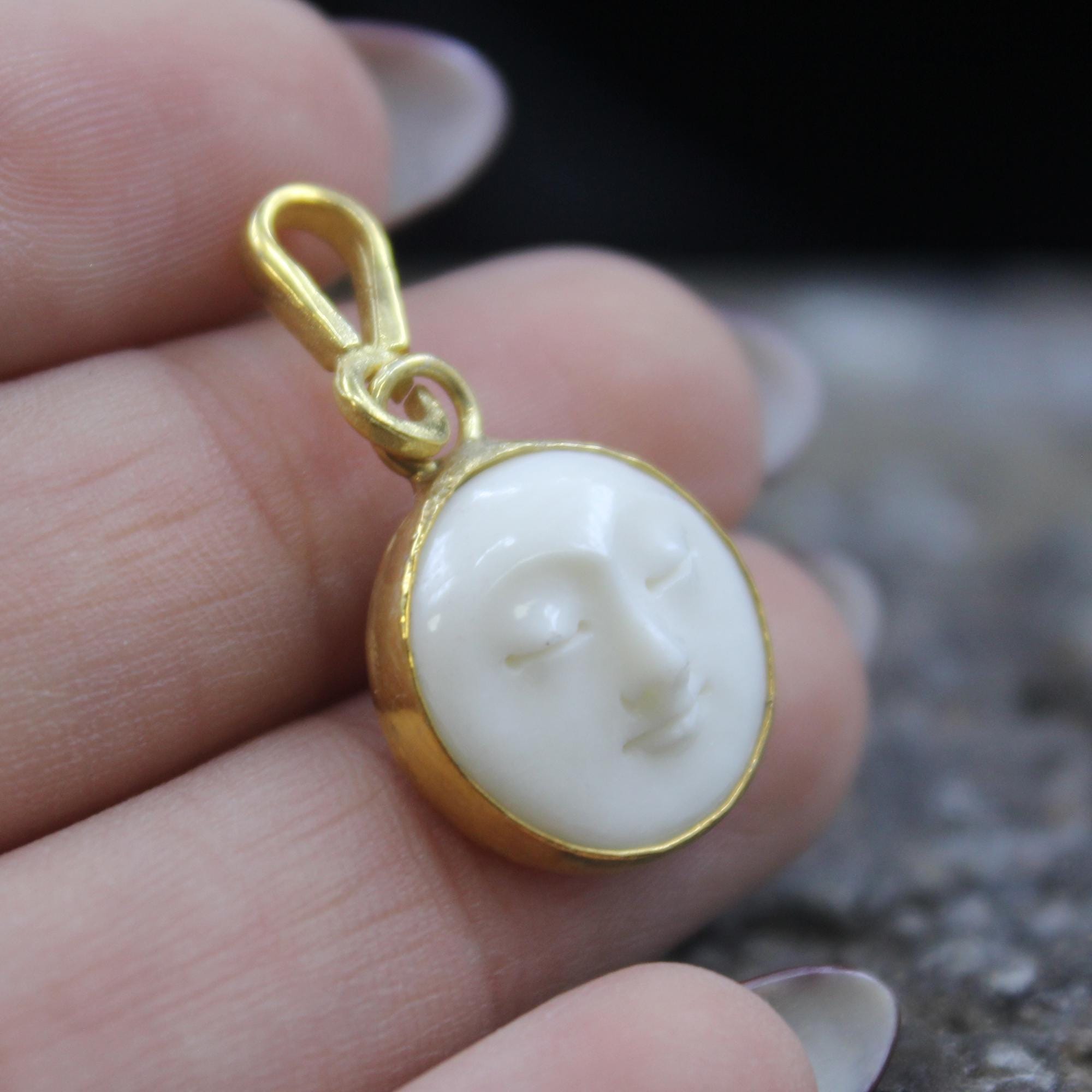The carving is framed in 925 sterling silver, richly finished with 24K gold vermeil, giving it a warm golden glow while maintaining durability. Each pendant is handmade, ensuring that no two pieces are ever exactly the same—making yours truly one-of-a-kind.