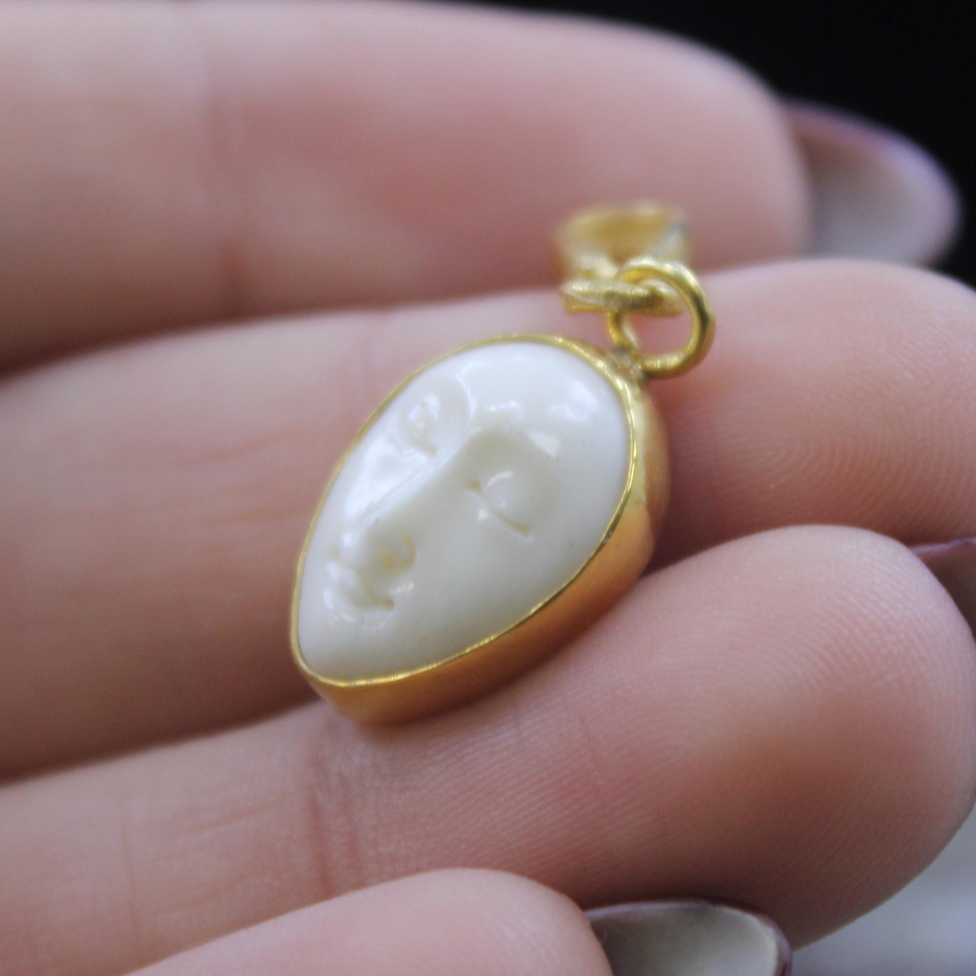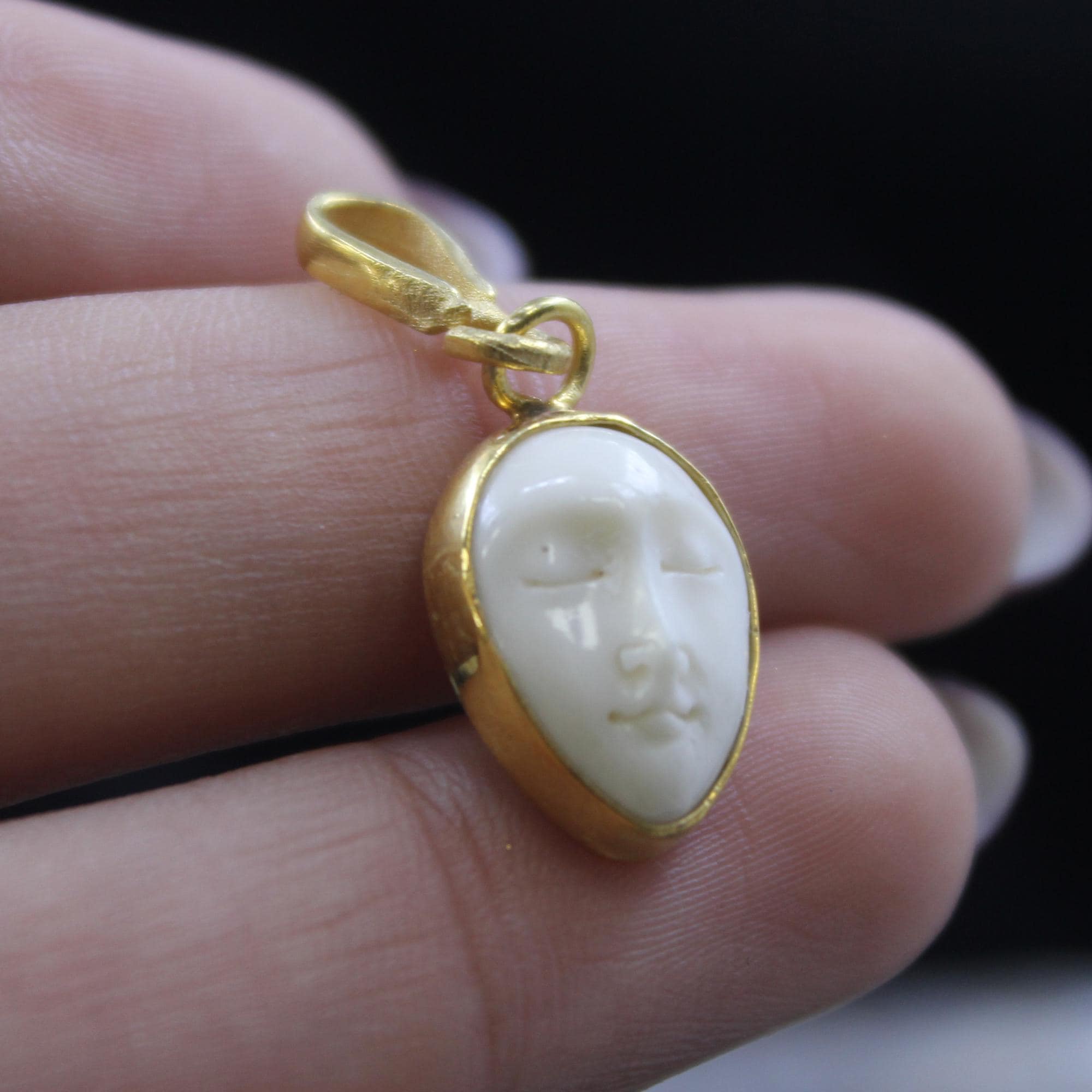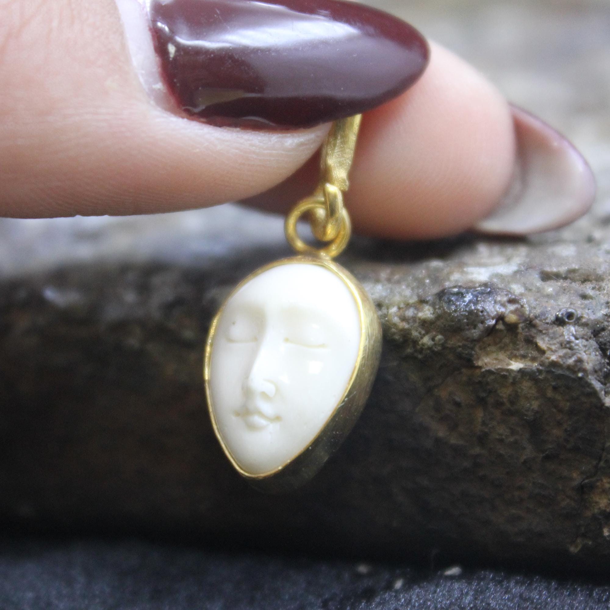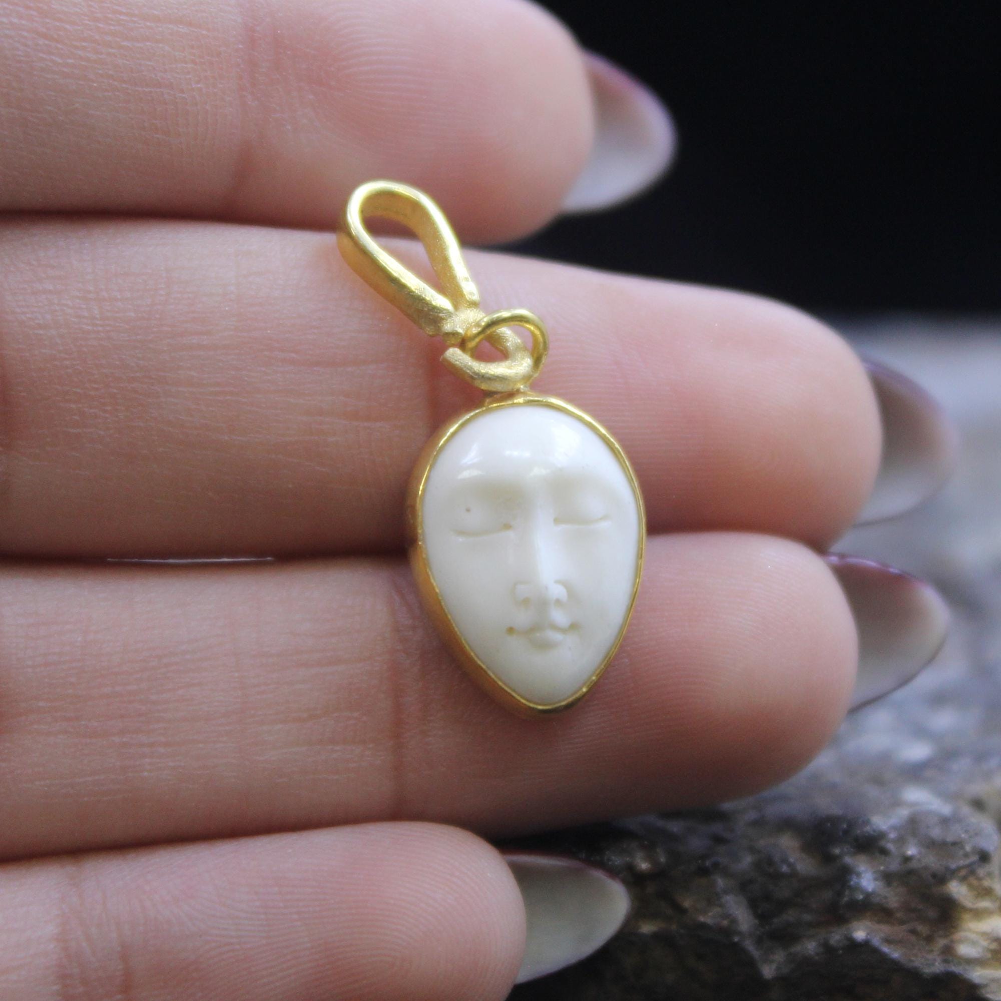 METAL: 925k Solid Silver GEM: Bone Bone Size: 15 x 11 mm Pendant Length : 30 mm Finish : Yellow Gold Vermeil , Solid Silver Finish, Rose Gold Vermeil