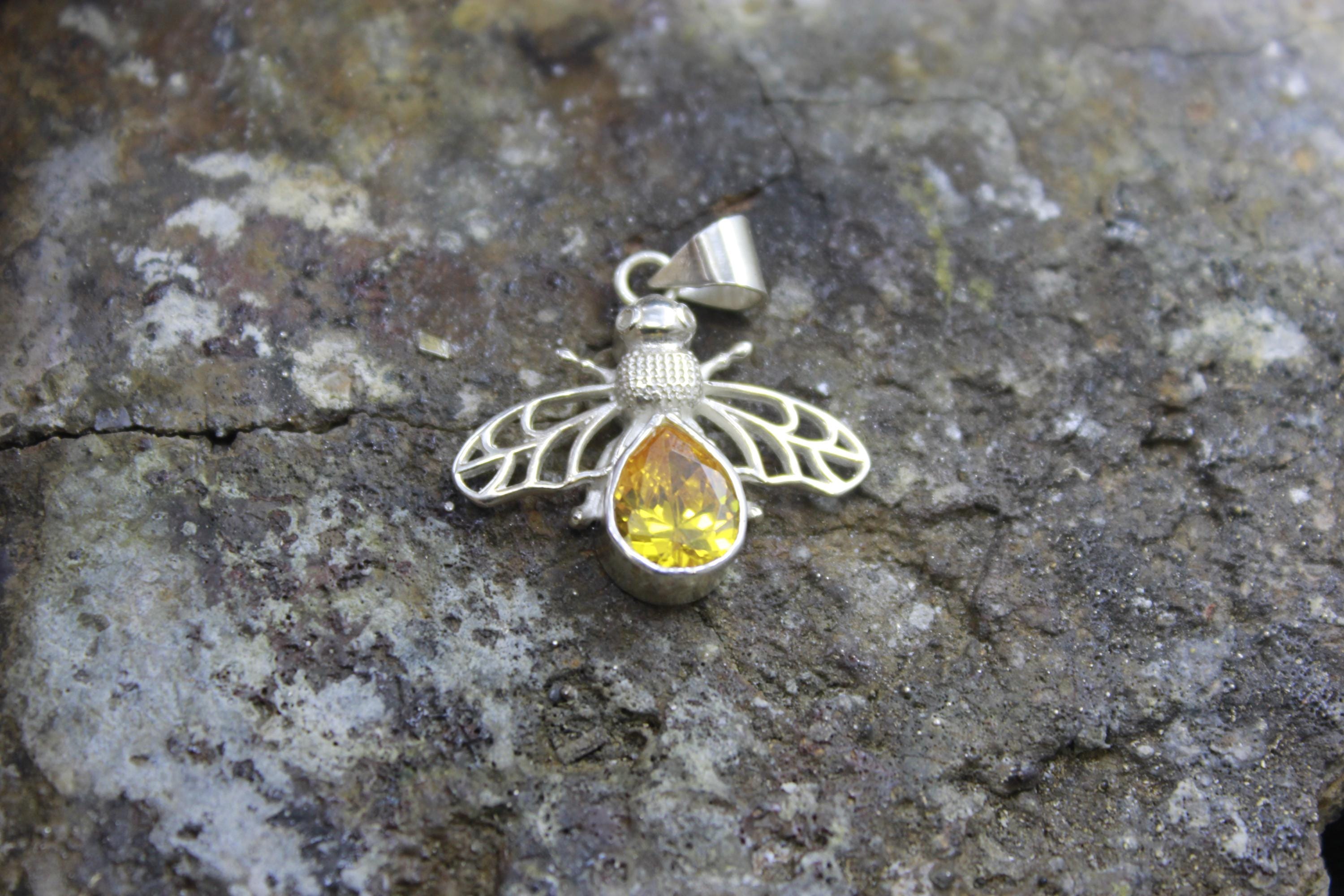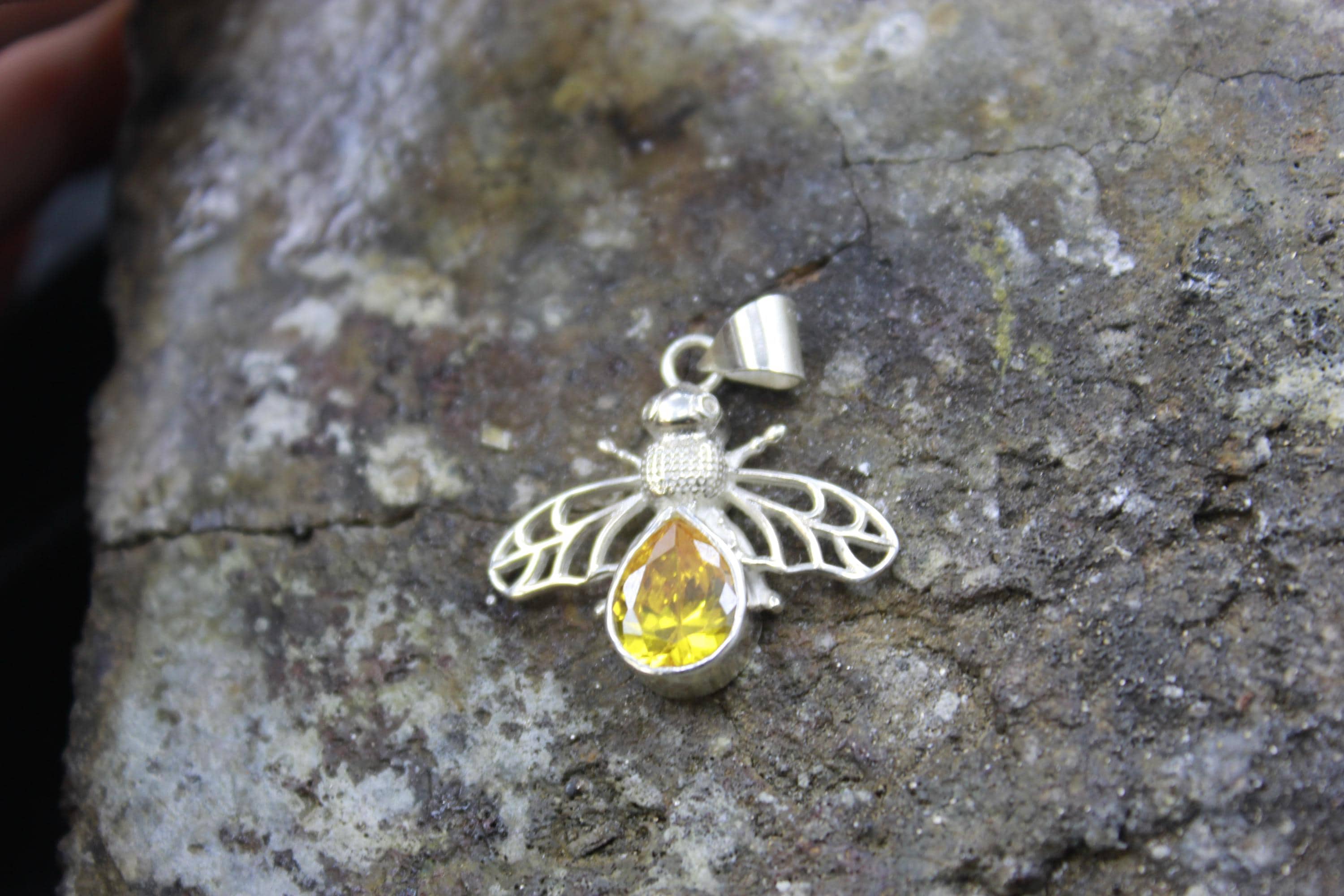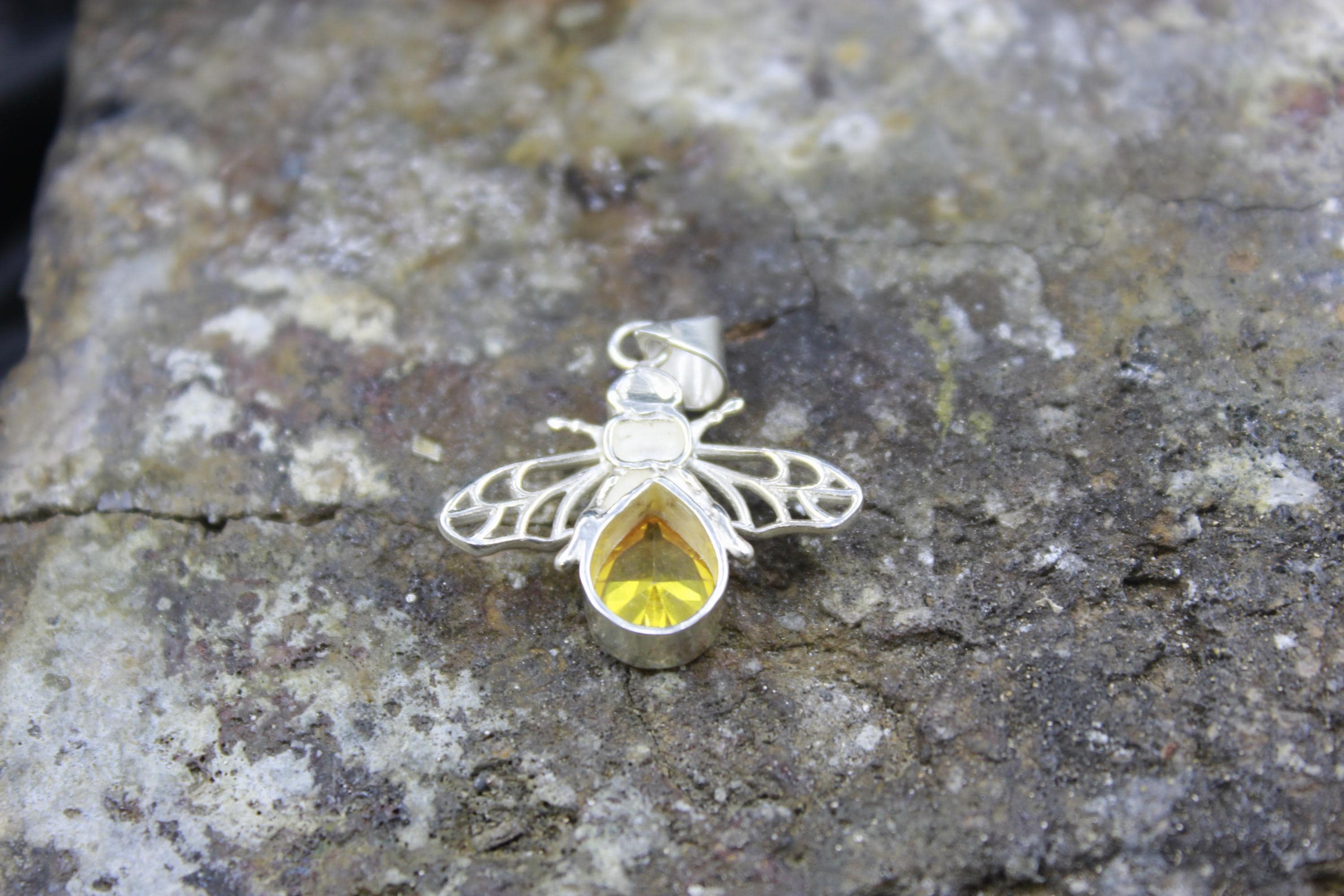 The honey bee, a universal symbol of prosperity, hard work, and harmony with nature, is beautifully detailed, making this pendant a meaningful gift or a unique treasure for your own jewelry collection. The golden citrine, often called the “sun stone,” is believed to bring joy, abundance, and positive energy to its wearer.