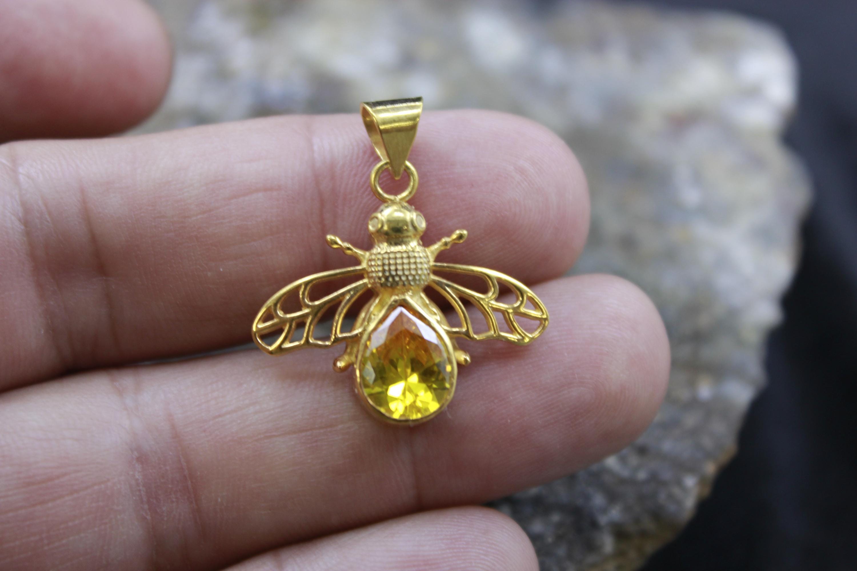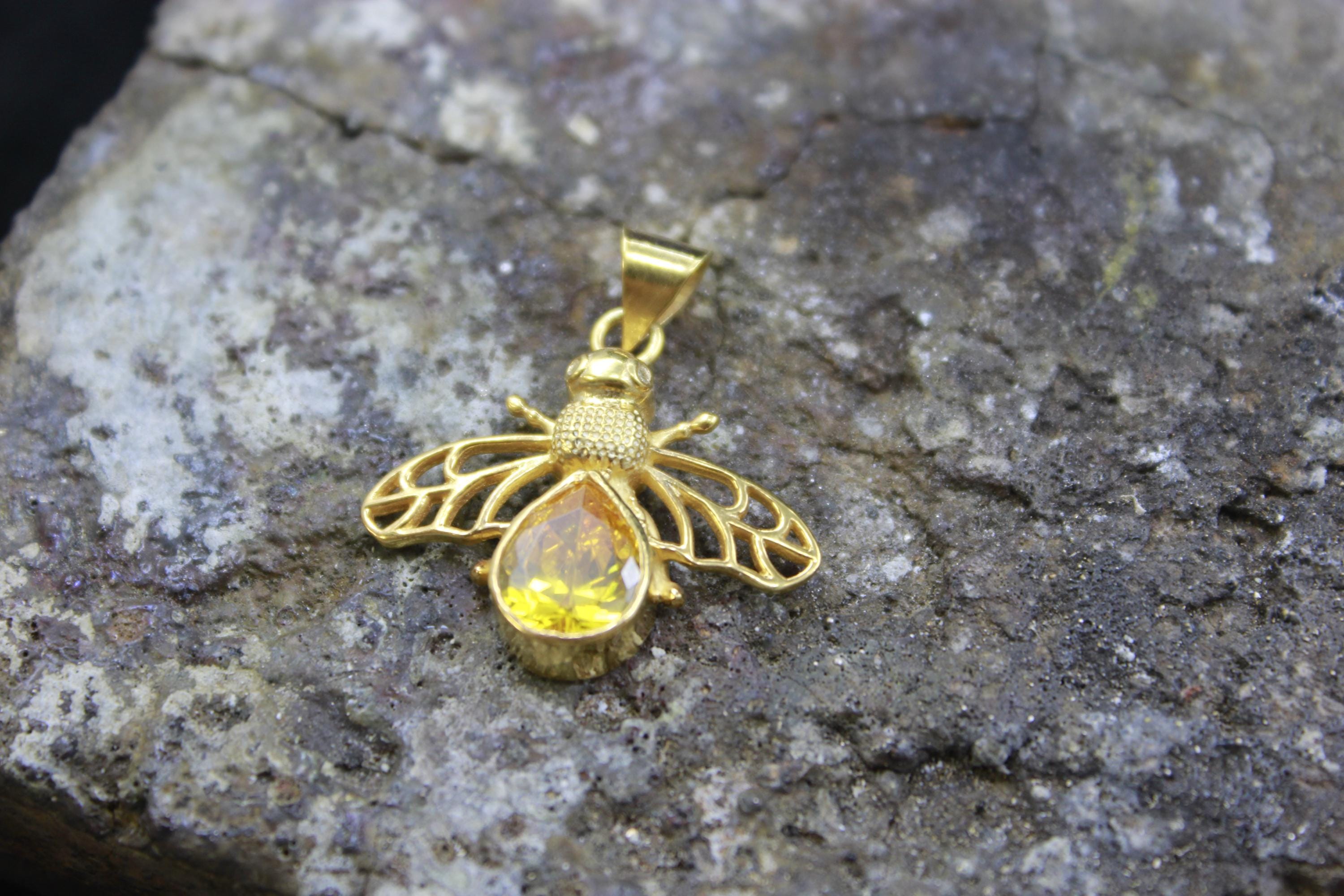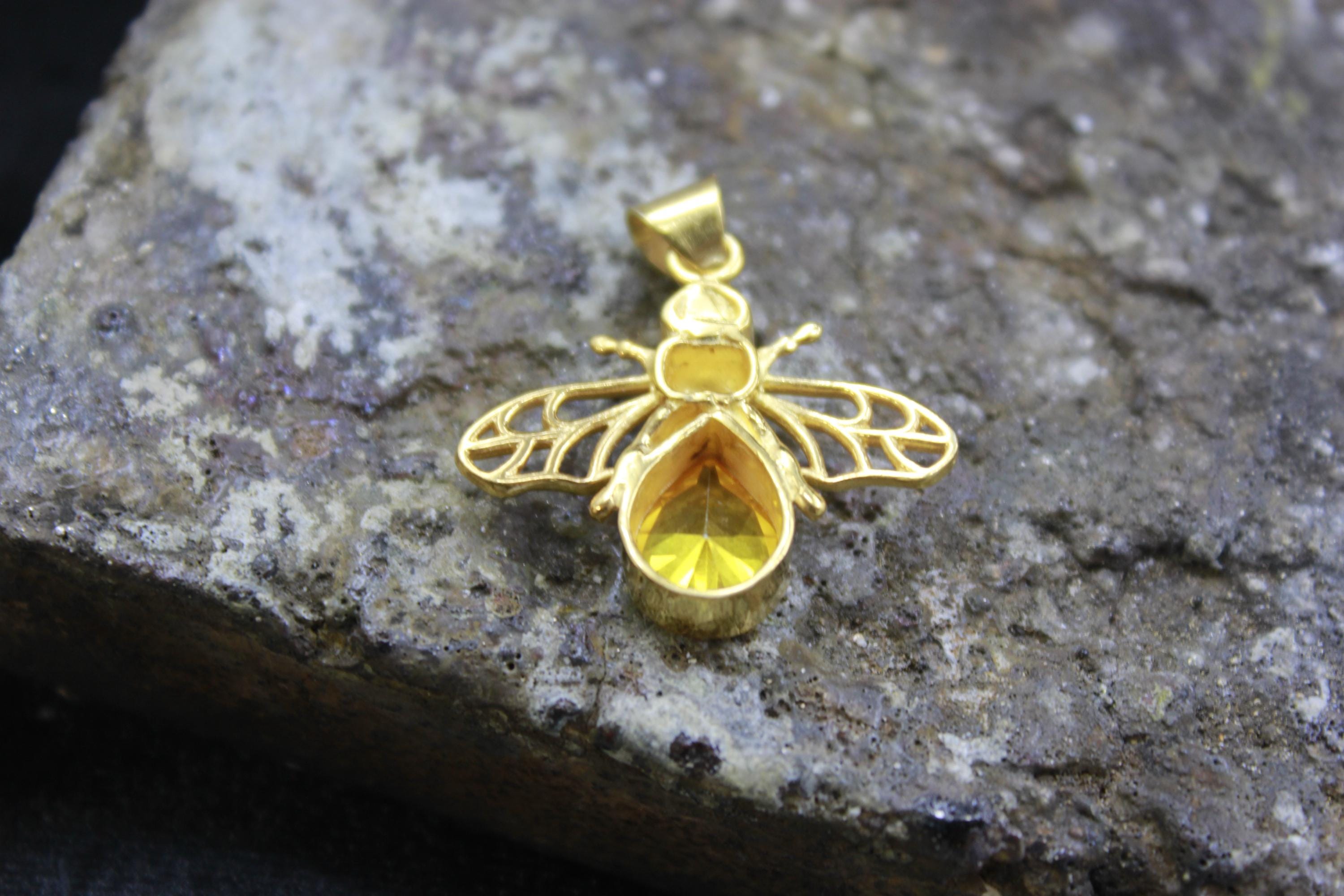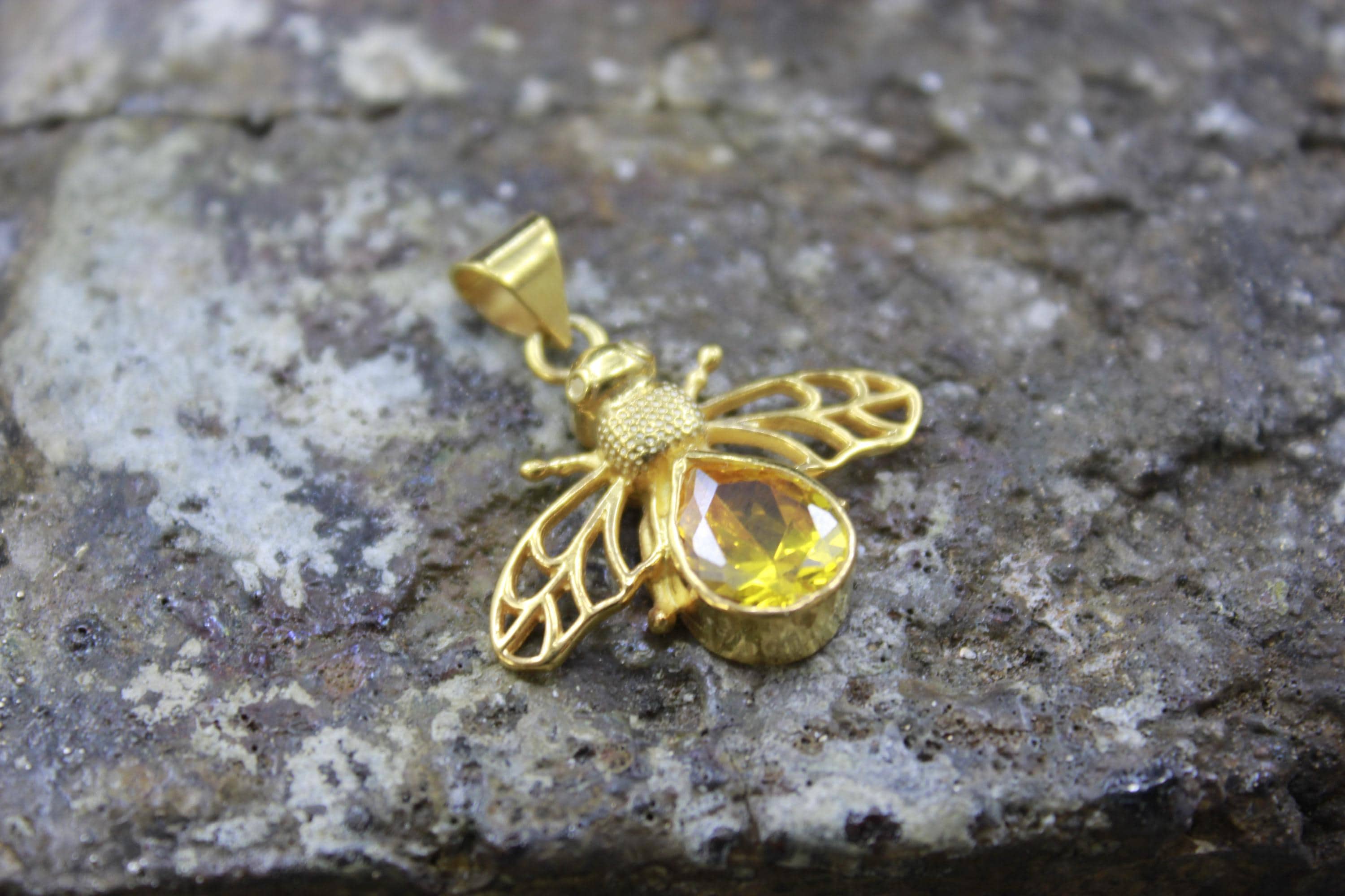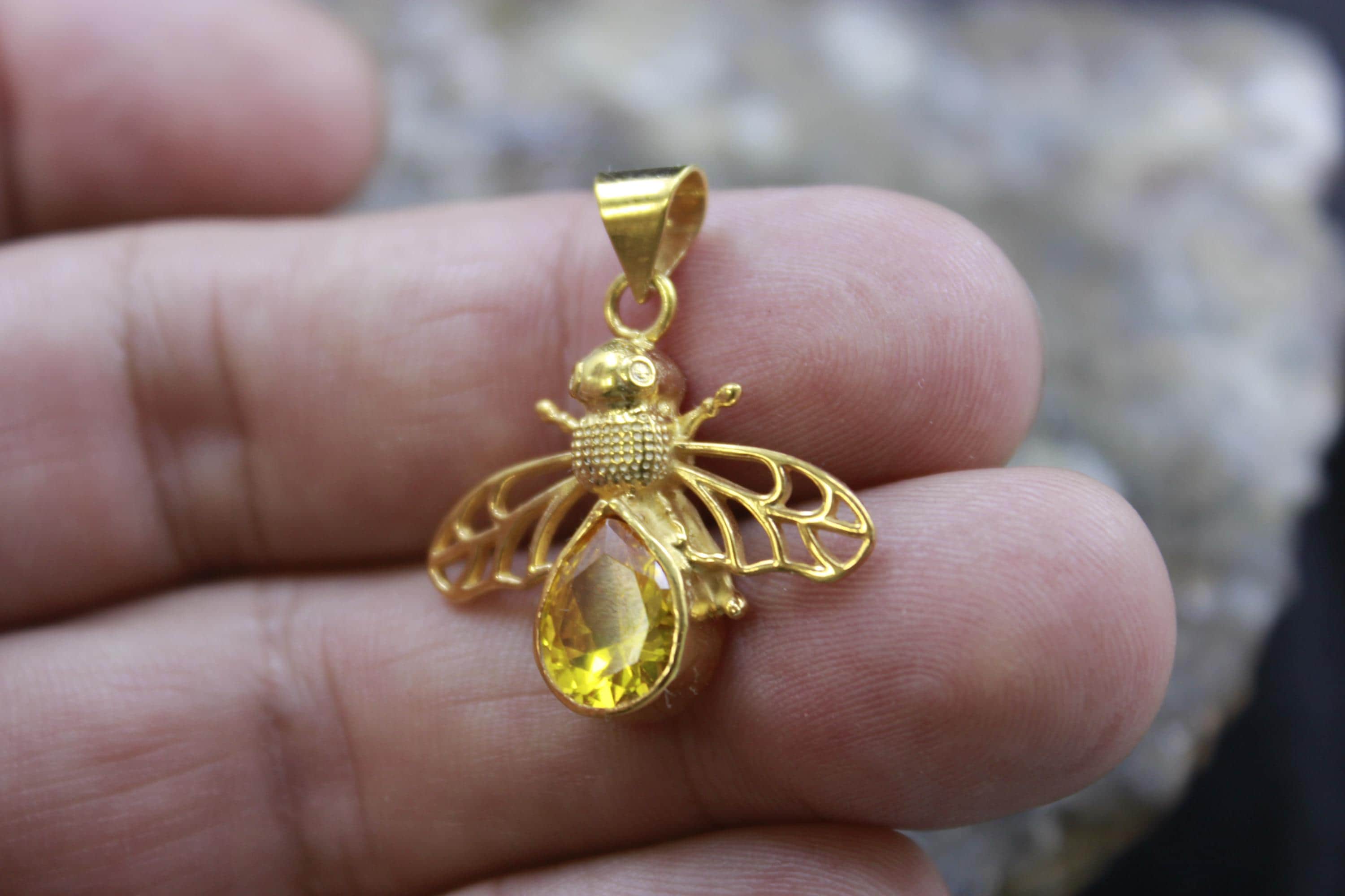 Handmade Honey Bee with Citrine Pendant – 24K Gold Over Sterling Silver
