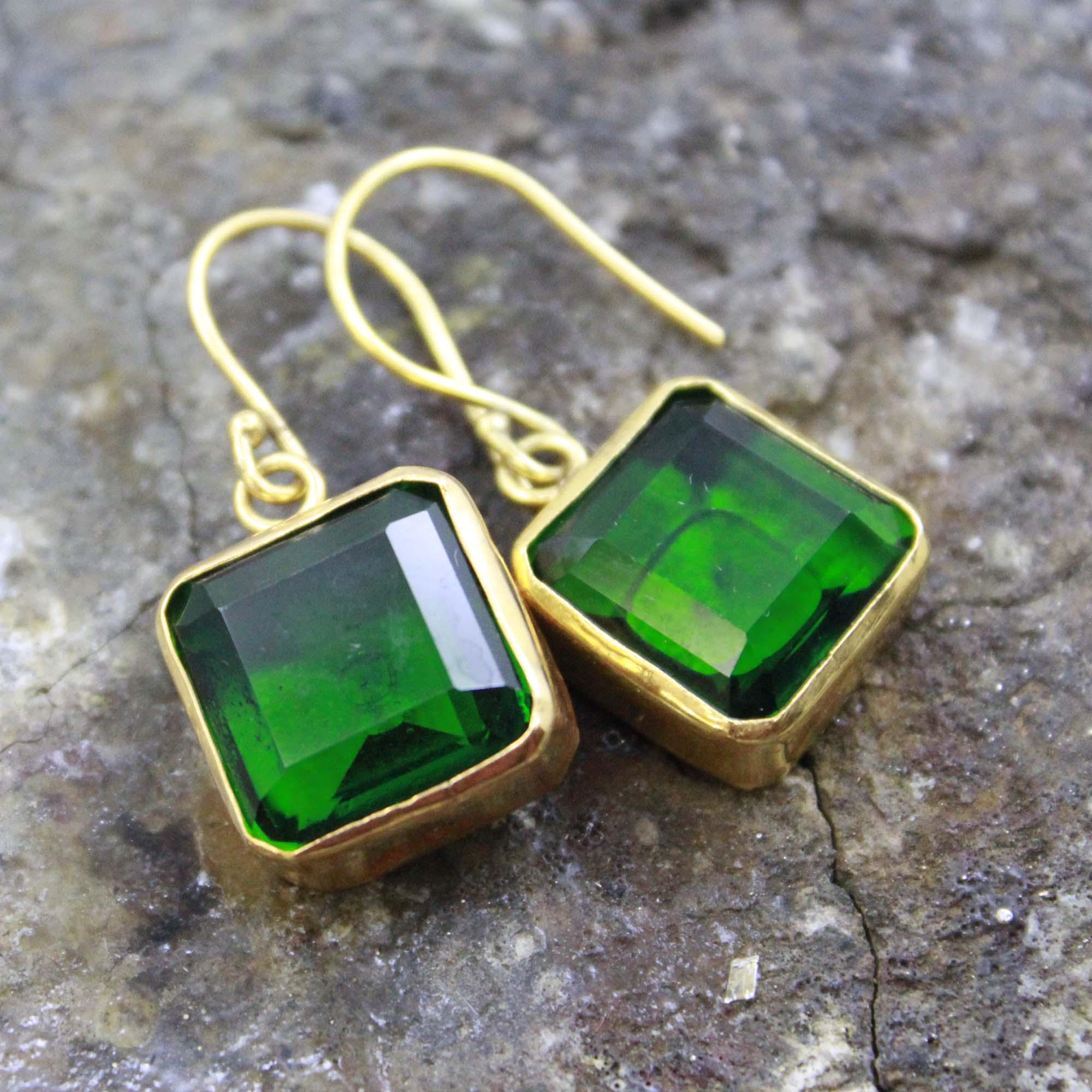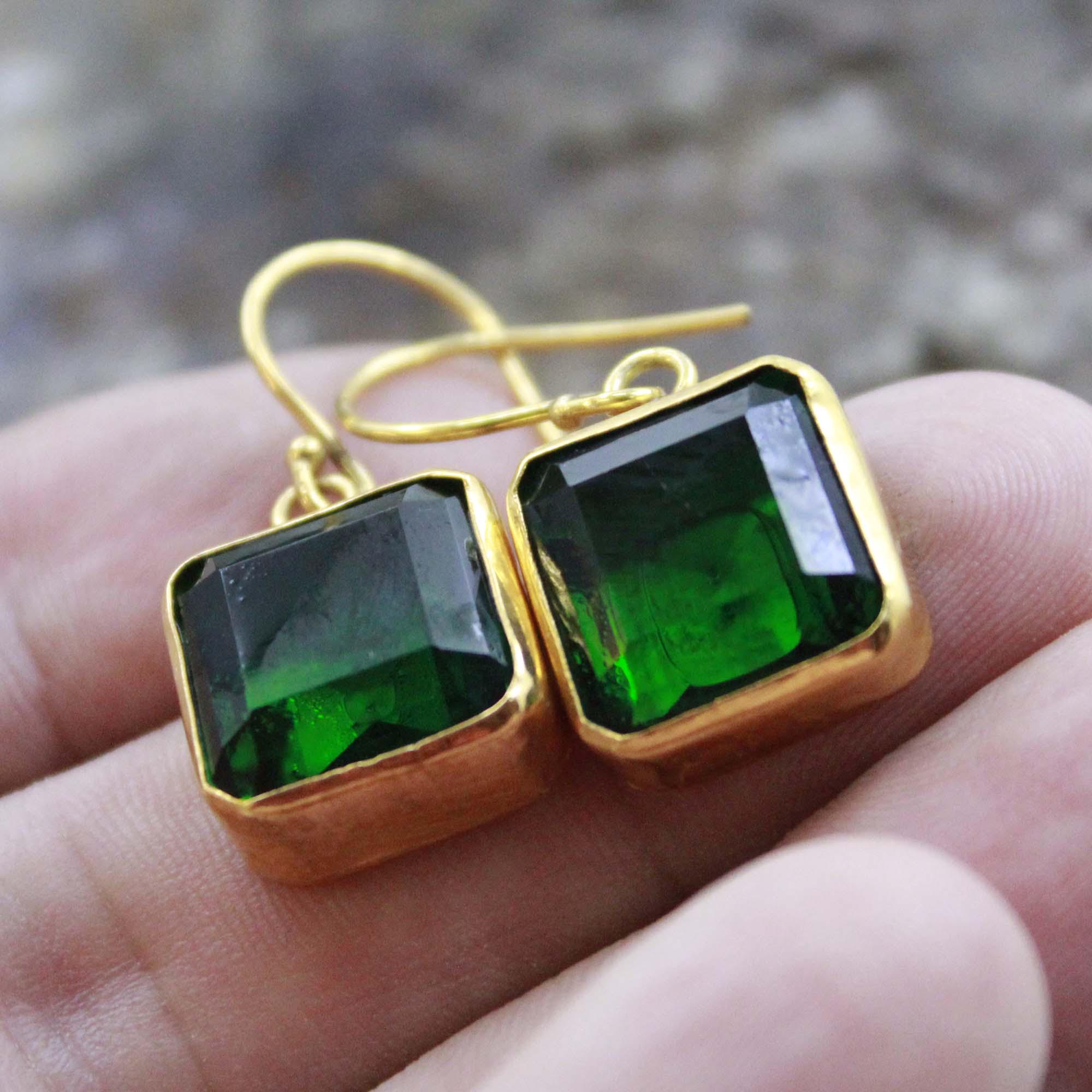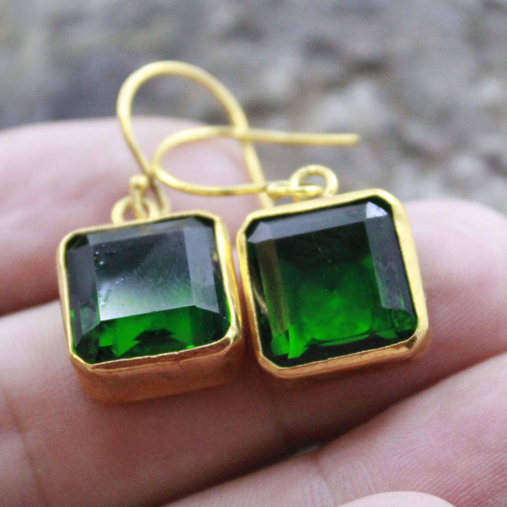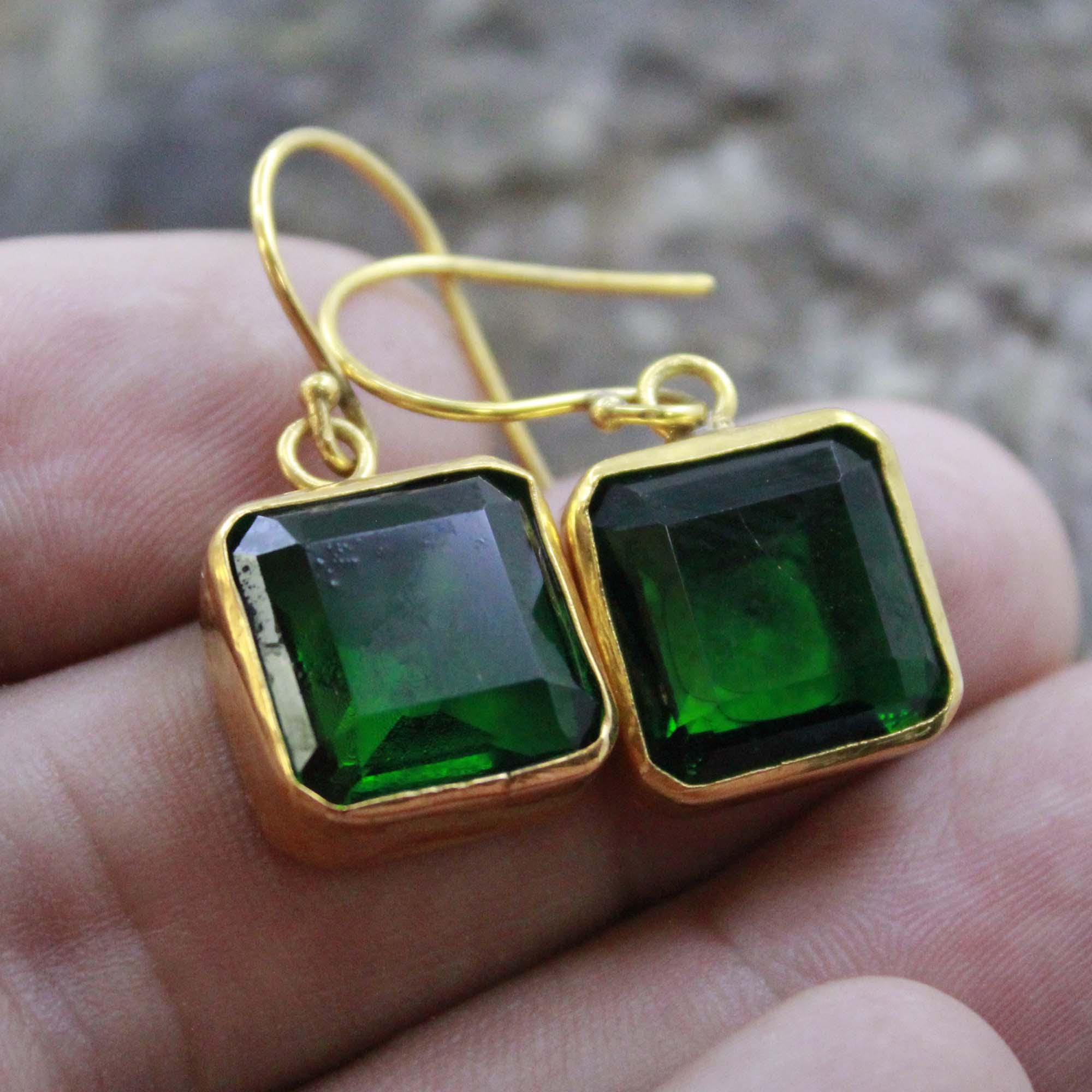 Add a touch of timeless elegance to your look with these handmade Lab Created Zambia Emerald Silver Earrings, crafted with care and attention to detail. Each earring features a vibrant Lab Created Zambian emerald, known for its deep green hue and natural brilliance, beautifully set in 24K gold vermeil over solid 925 sterling silver.