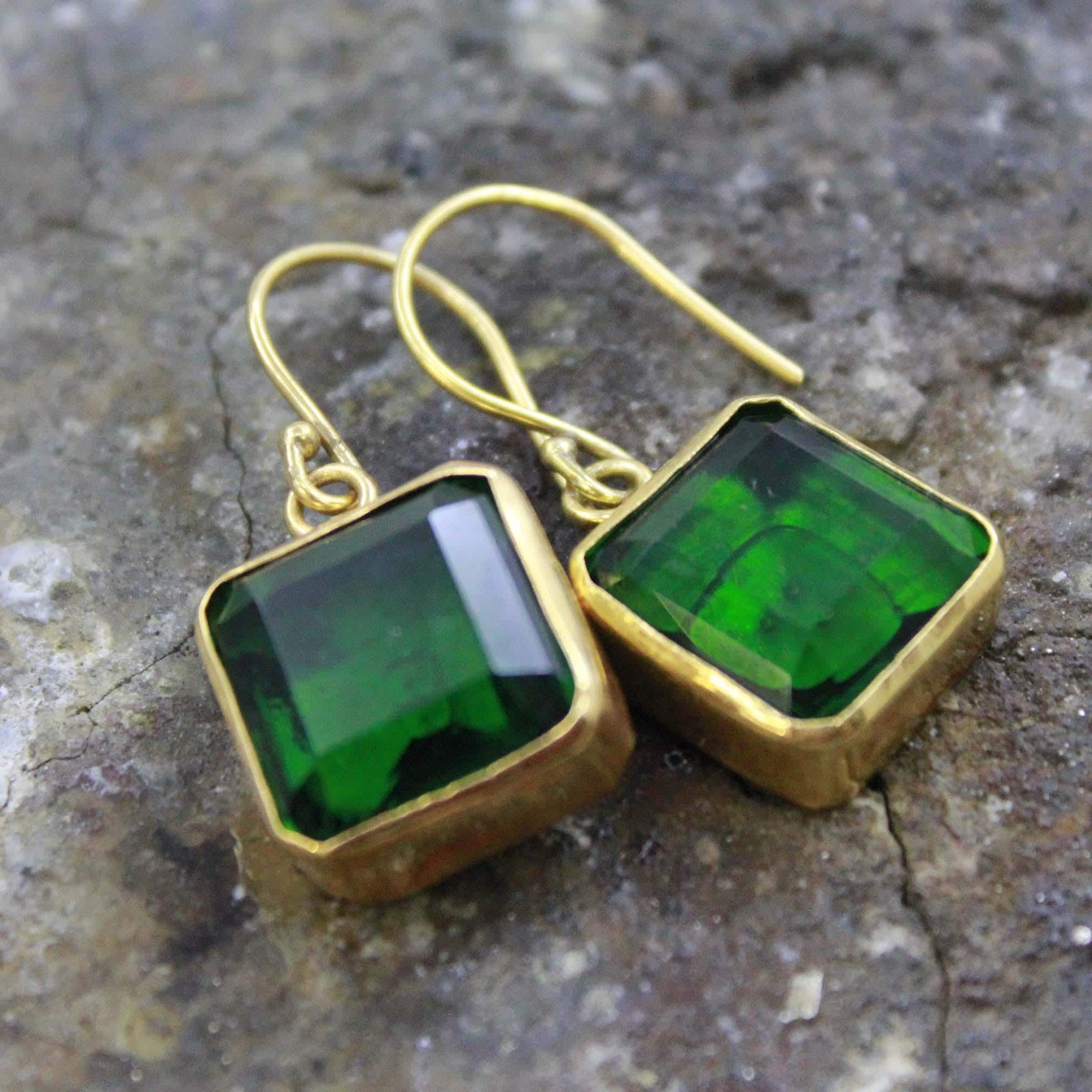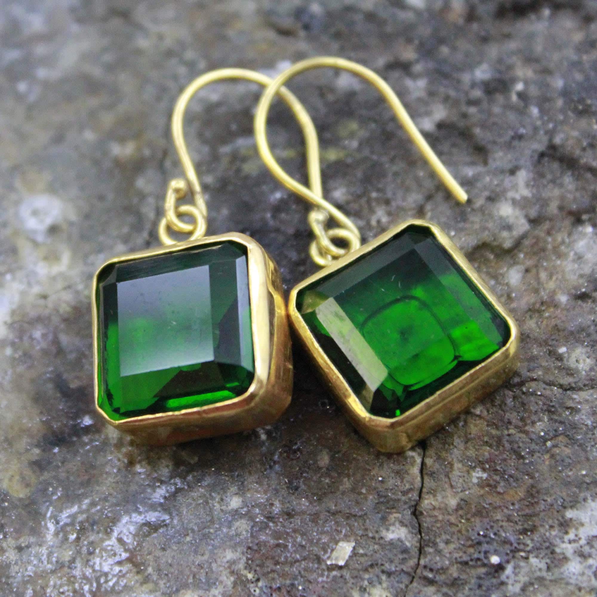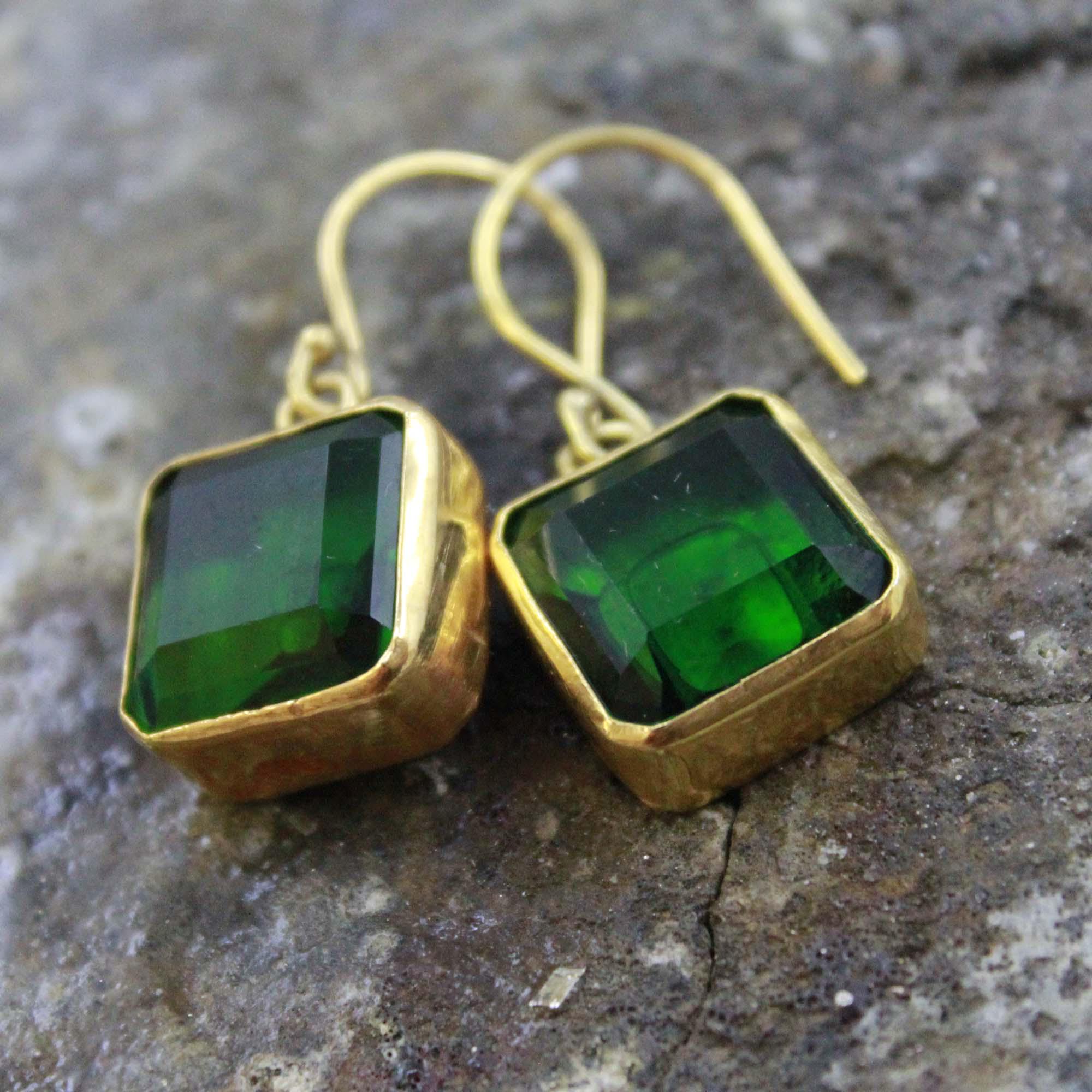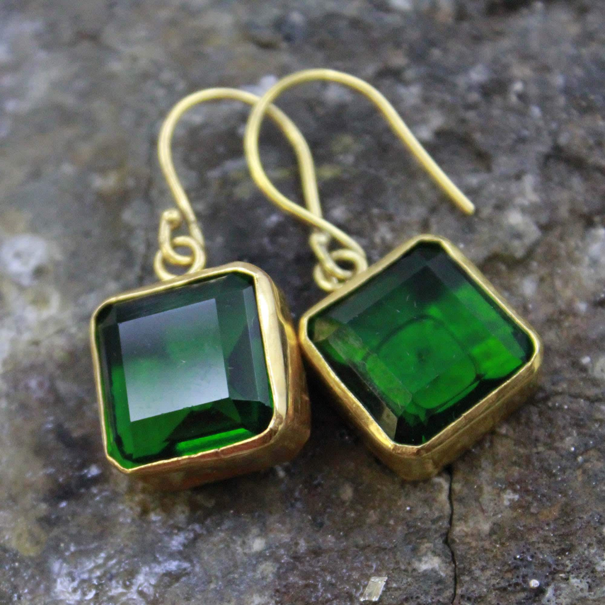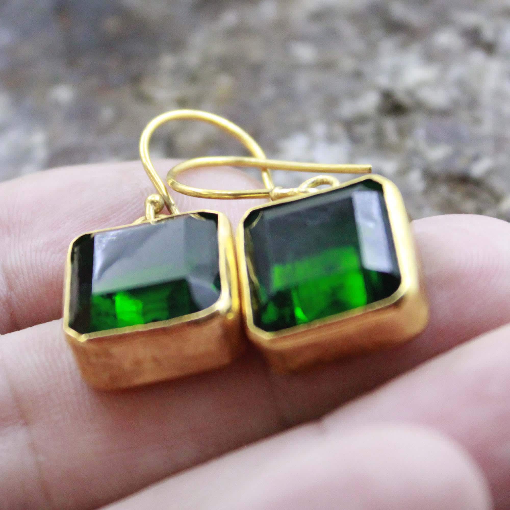 Add a touch of timeless elegance to your look with these handmade Lab Created Zambia Emerald Silver Earrings, crafted with care and attention to detail. Each earring features a vibrant Lab Created Zambian emerald, known for its deep green hue and natural brilliance, beautifully set in 24K gold vermeil over solid 925 sterling silver.