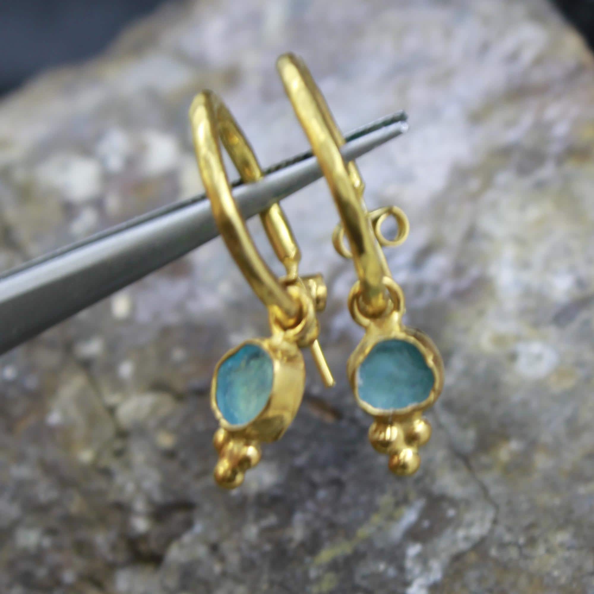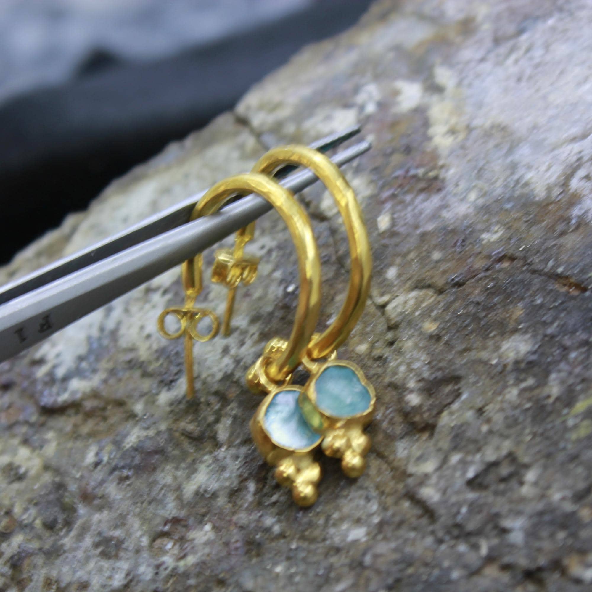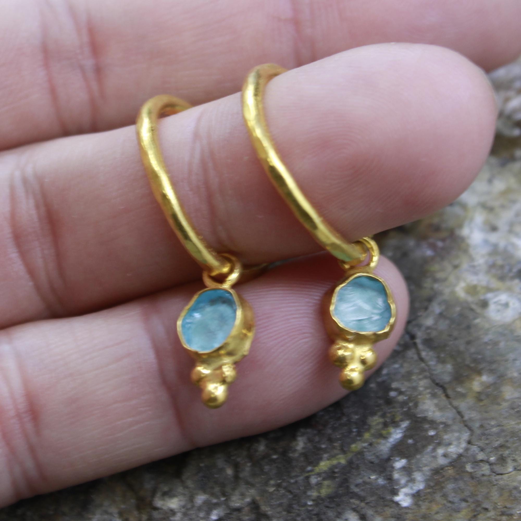 💧 Natural Raw Aquamarine Hoop Earrings – 24K Gold Over Sterling Silver | Handmade Vintage Jewelry 💧