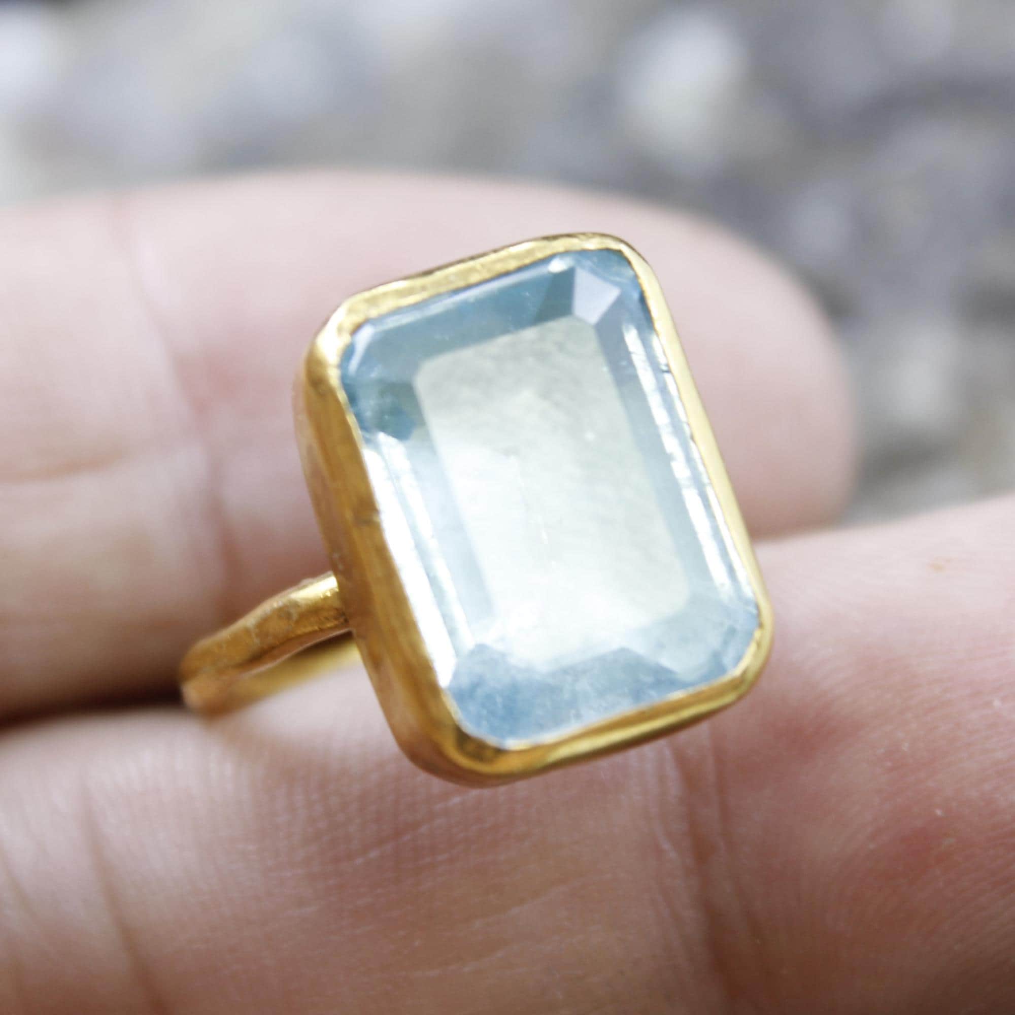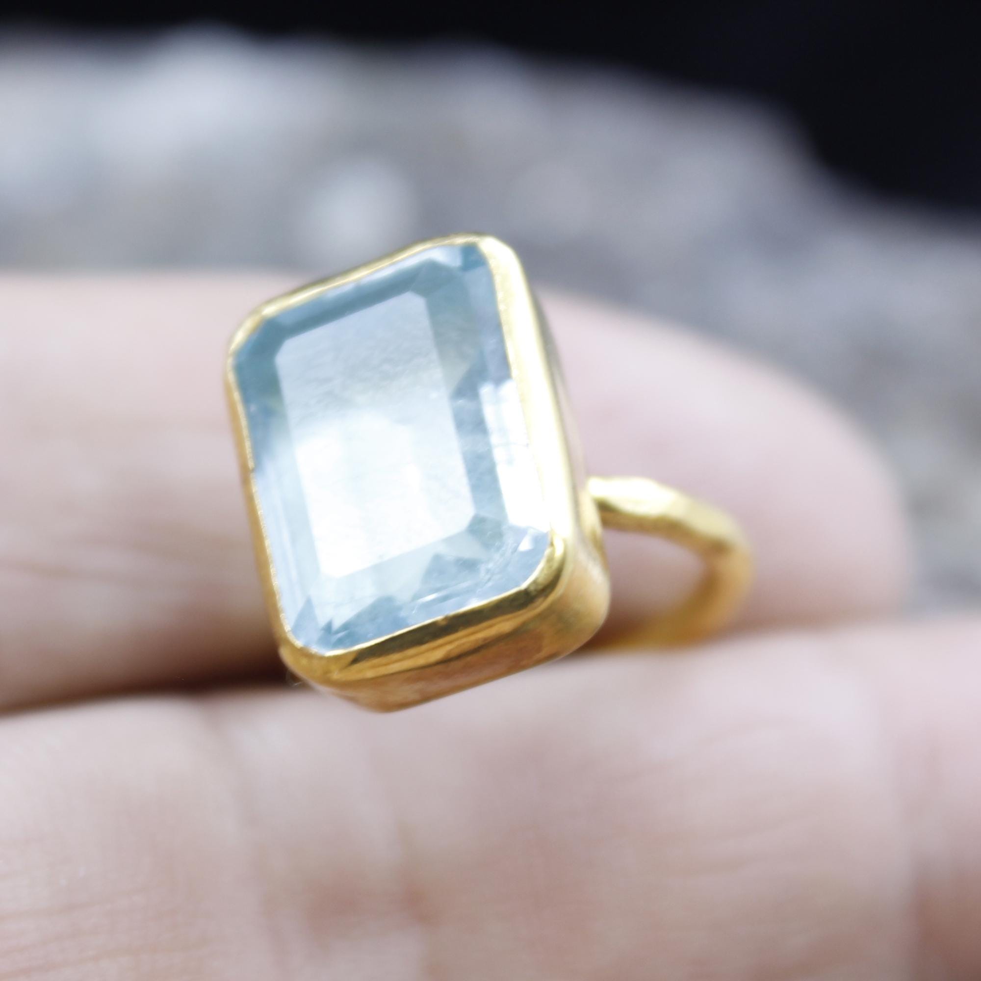 Handmade 24K Gold Vermeil Paraiba Tourmaline Ring – 925 Sterling Silver, Lab Created Gemstone