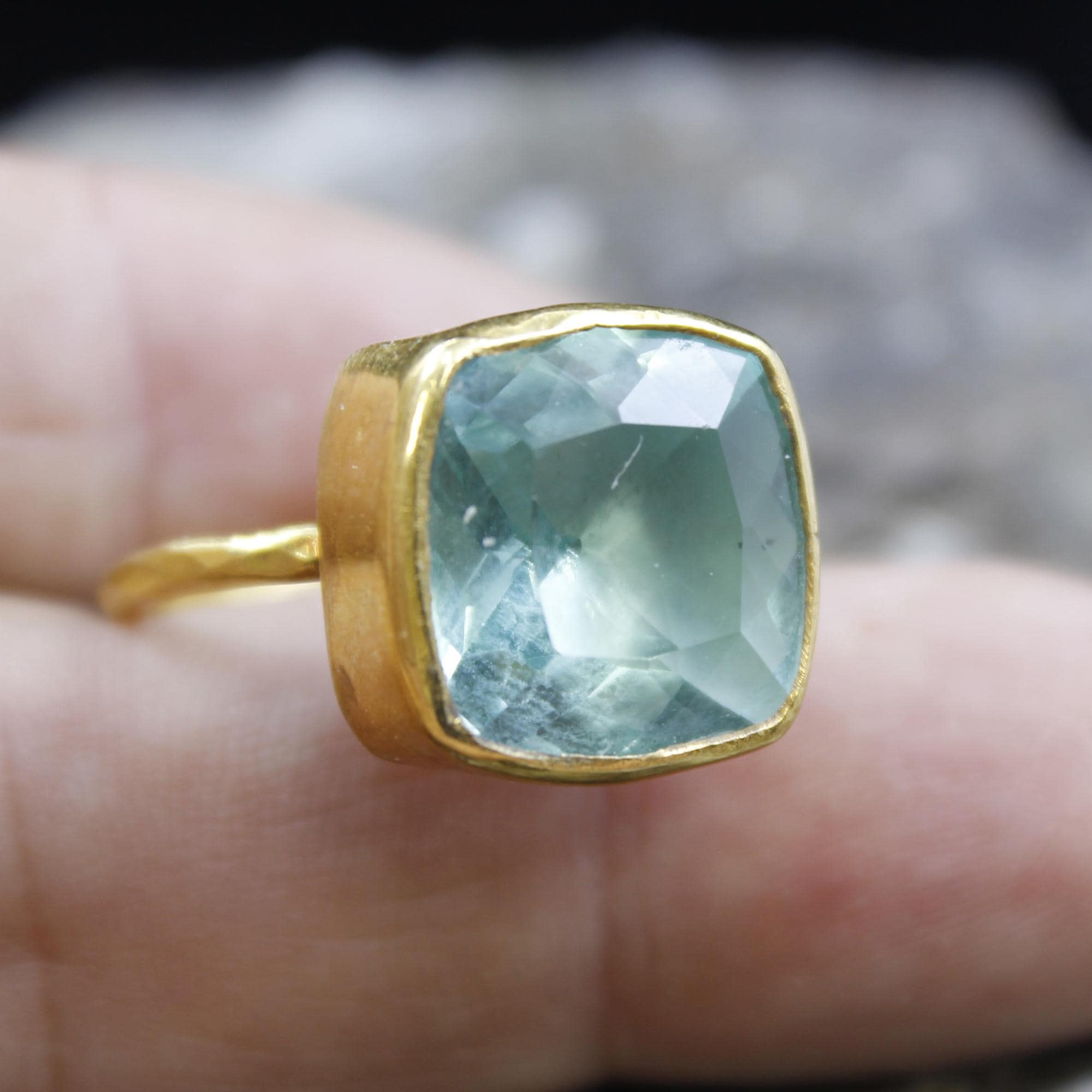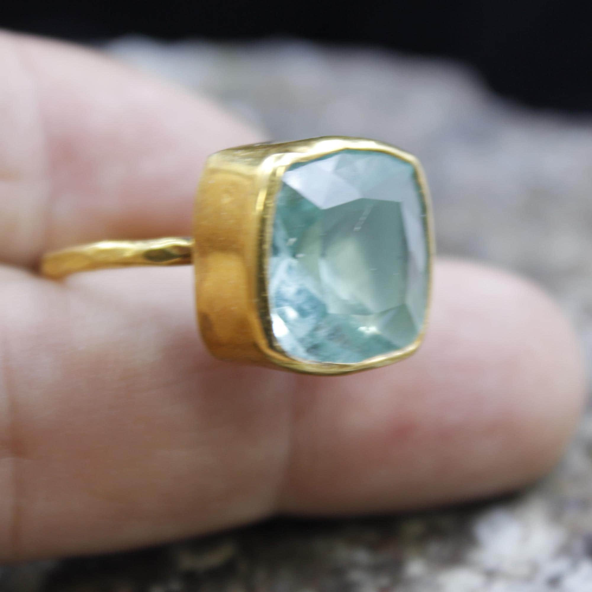 Handmade 24K Gold Vermeil Paraiba Tourmaline Ring – 925 Sterling Silver, Lab Created Gemstone