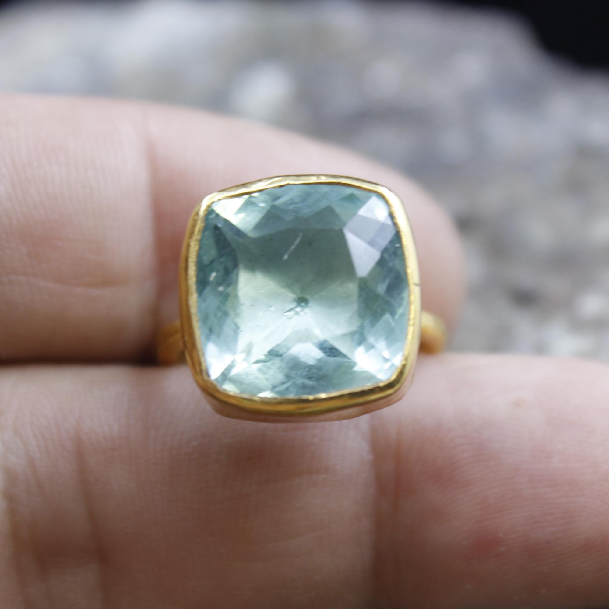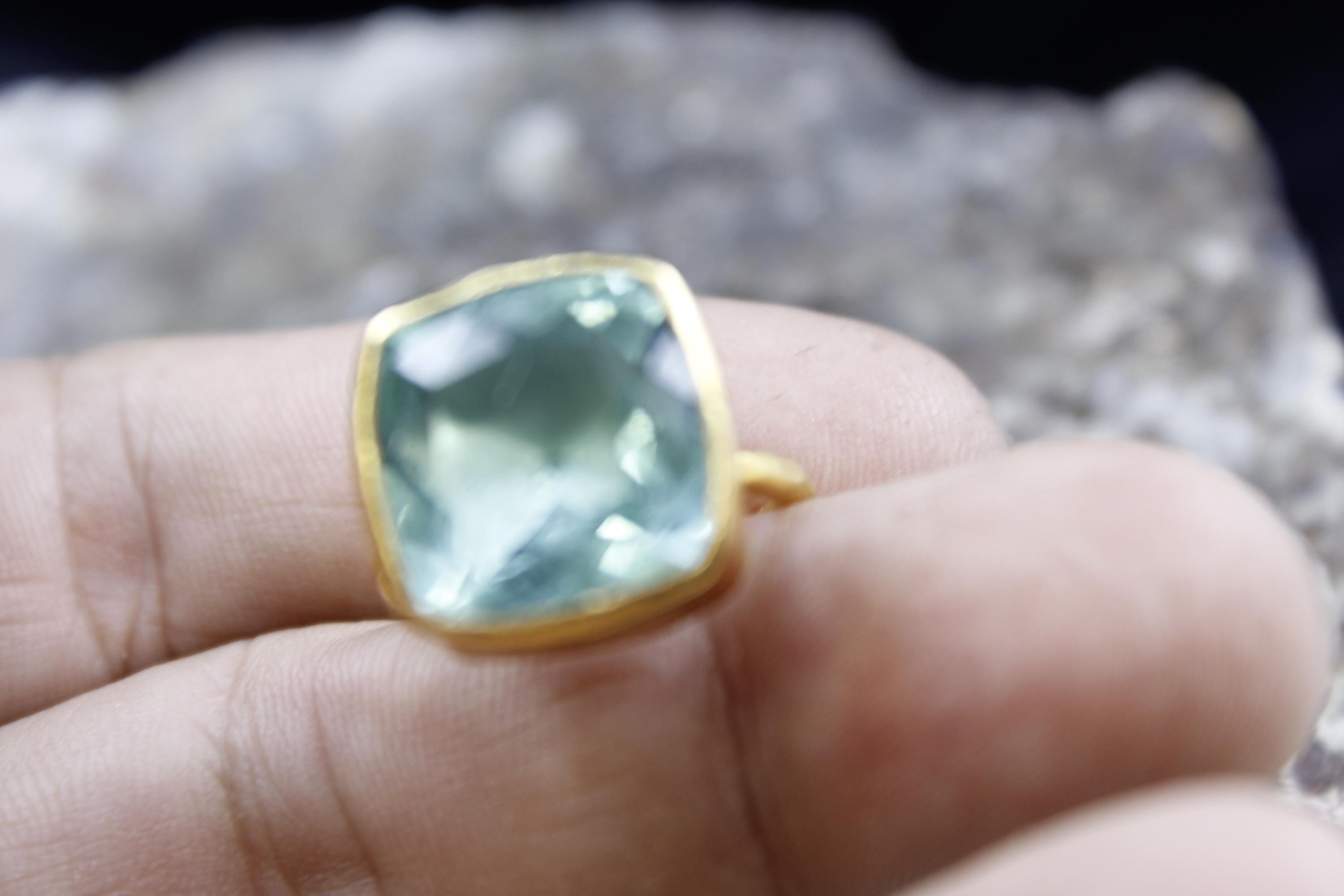 METAL: 925k Solid Silver GEM: Lab Created Paraiba Tourmaline Stone Size: 15 x 15 mm Finish : Yellow Gold Vermeil , Solid Silver Finish, Rose Gold Vermeil