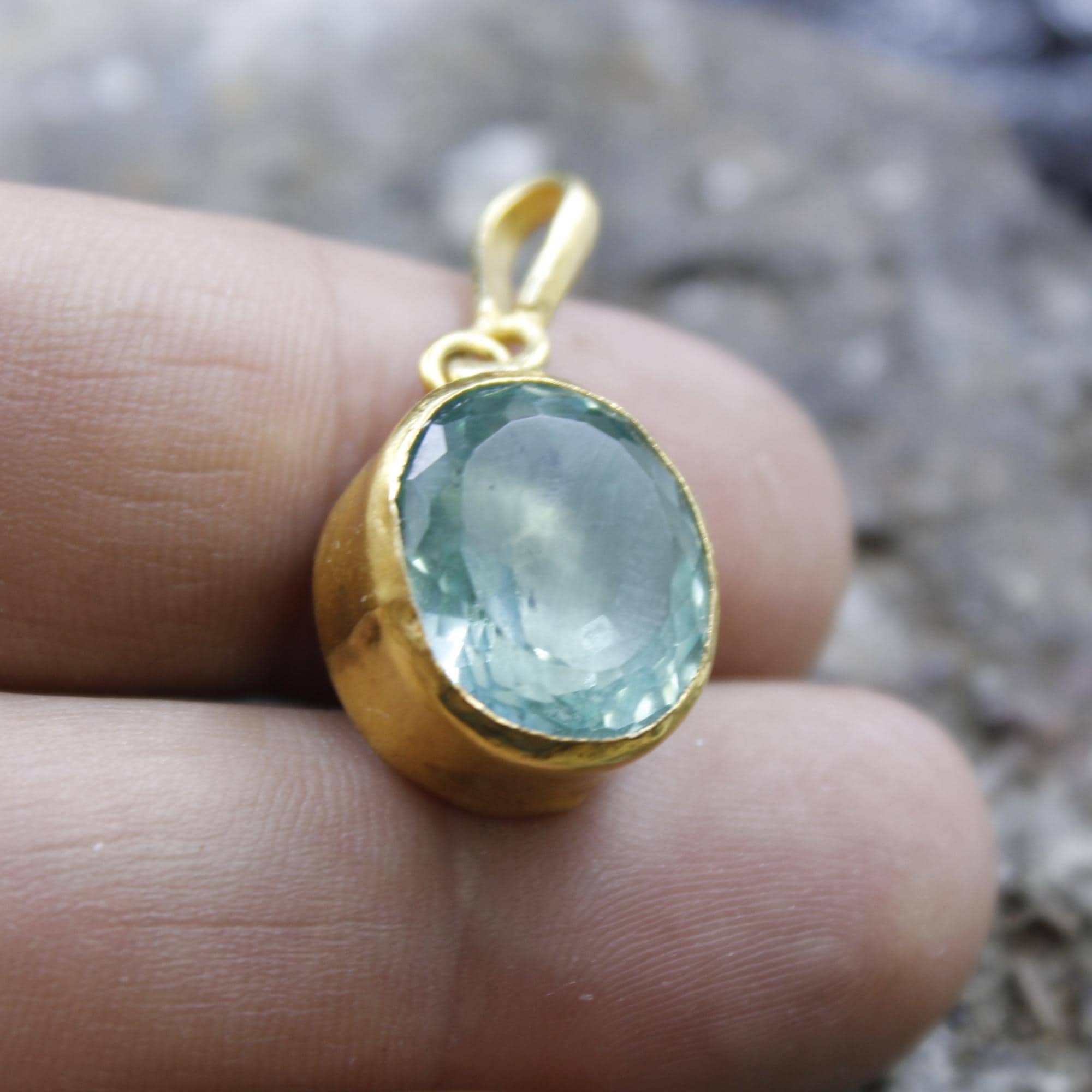 METAL: 925k Solid Silver GEM: Lab Created Paraiba Tourmaline Stone Size: 16 x 14 mm Pendant Size : 30 x 14 Finish : Yellow Gold Vermeil , Solid Silver Finish, Rose Gold Vermeil