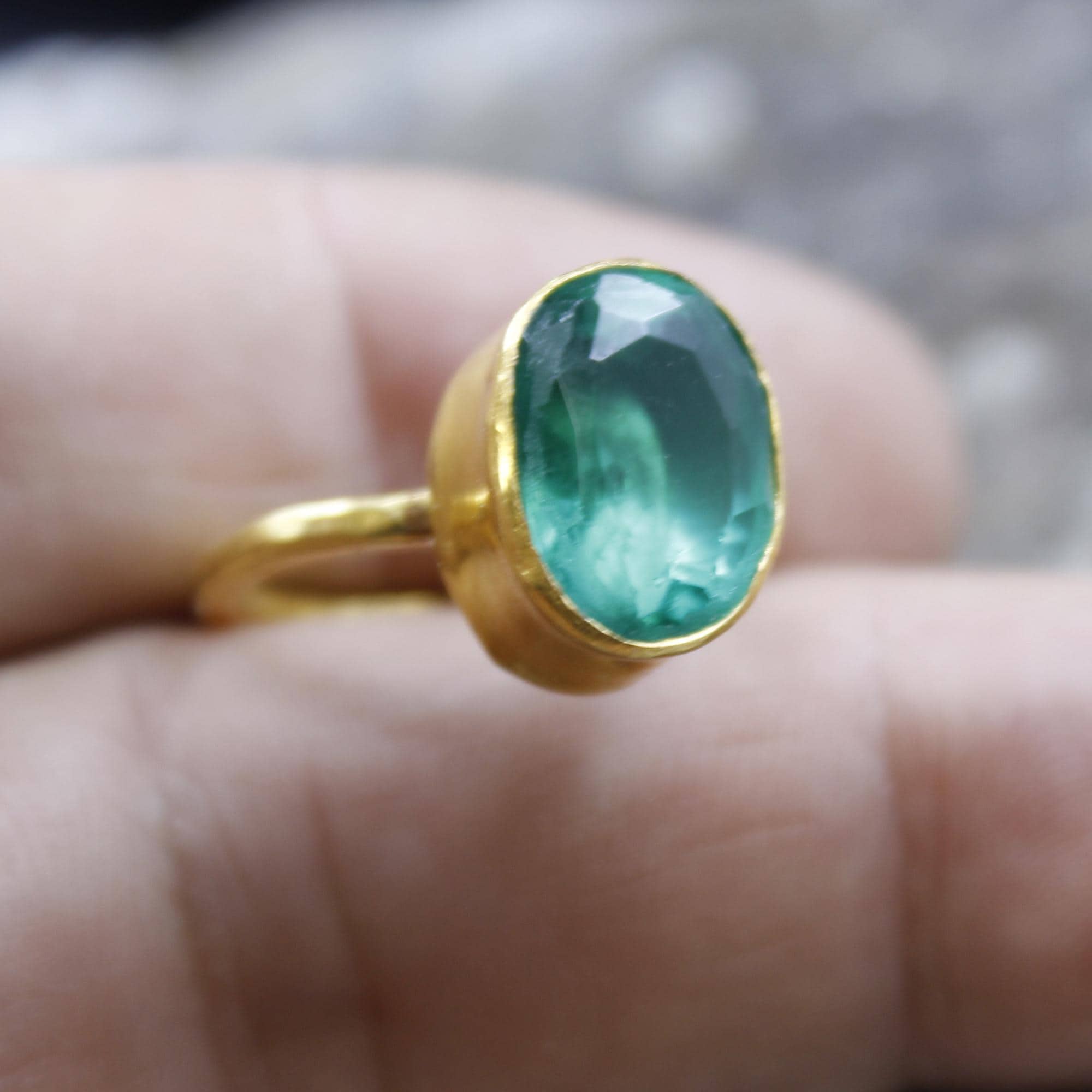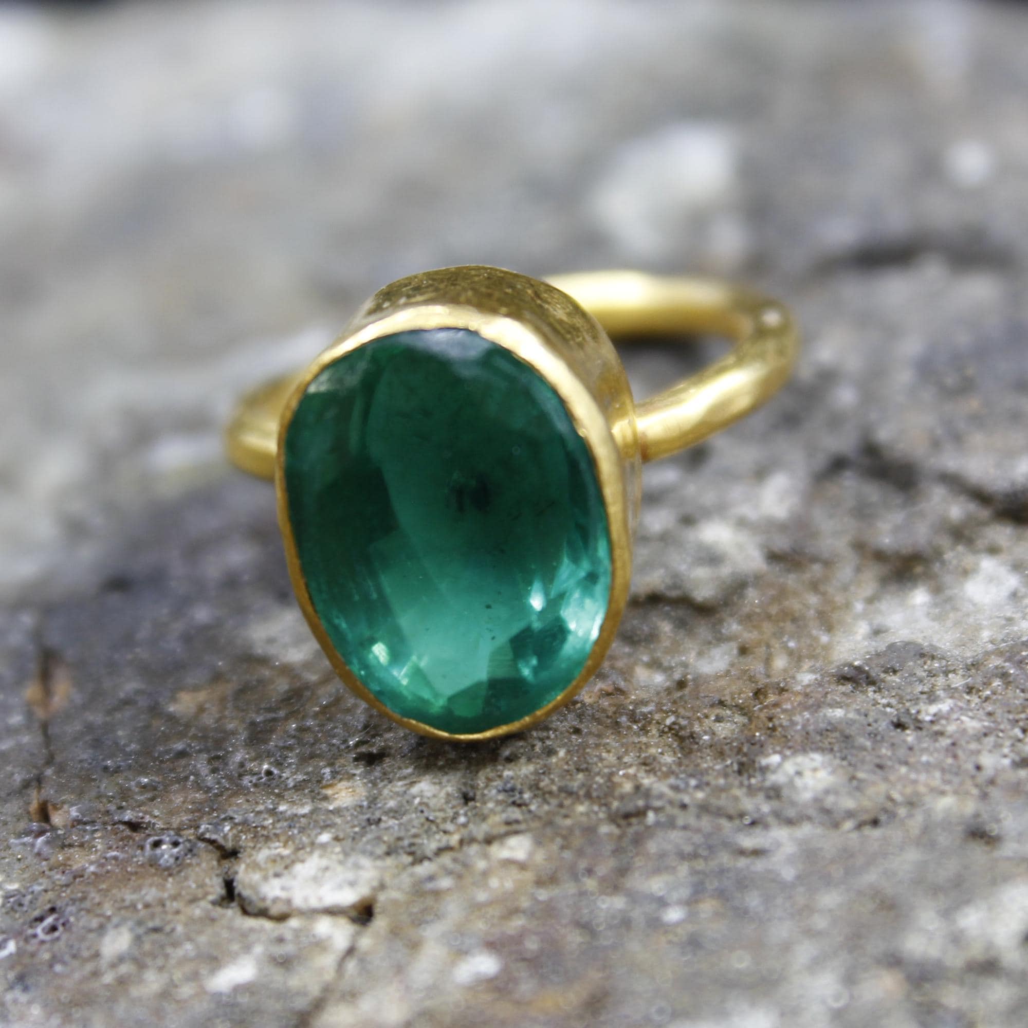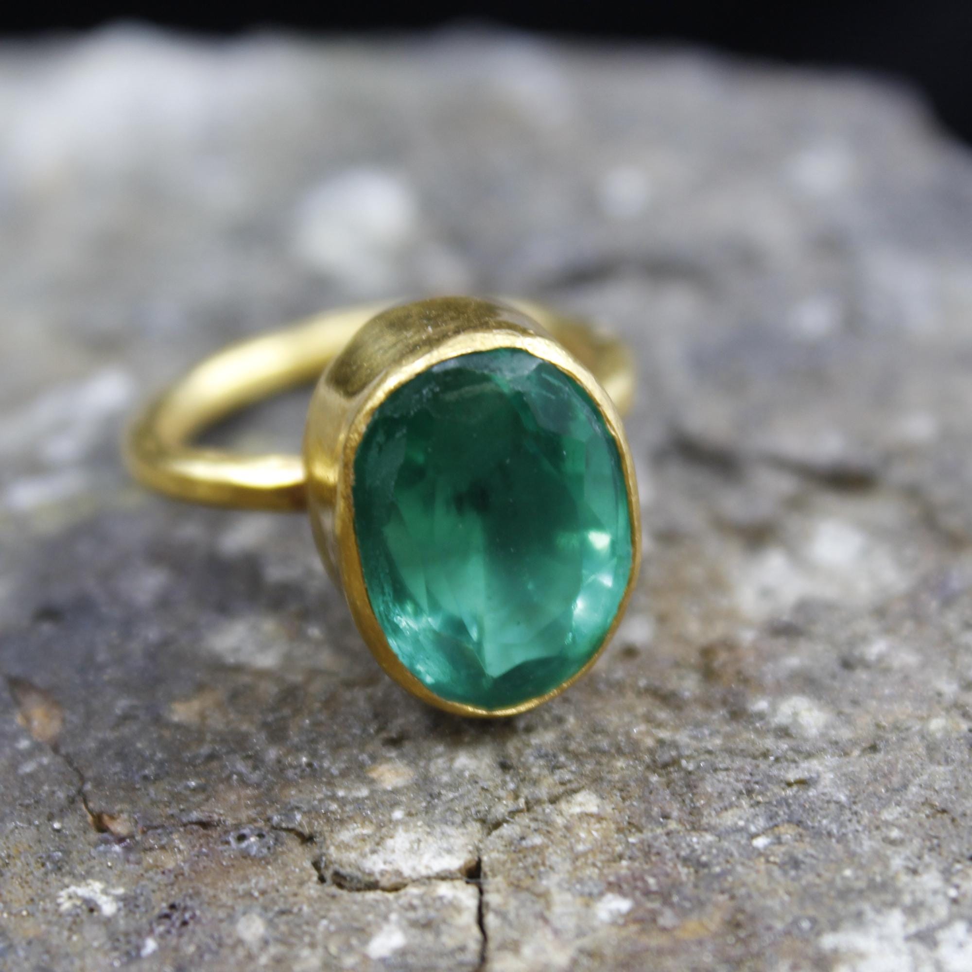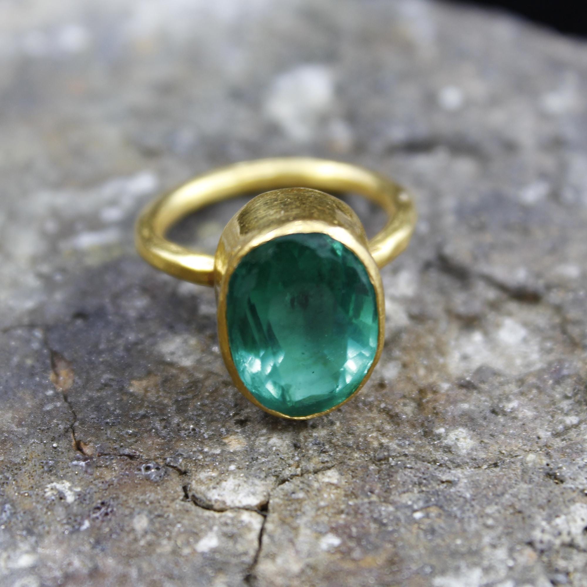 Colombian Emerald Ring – 24K Gold Over 925k Solid Silver, Handmade Jewelry