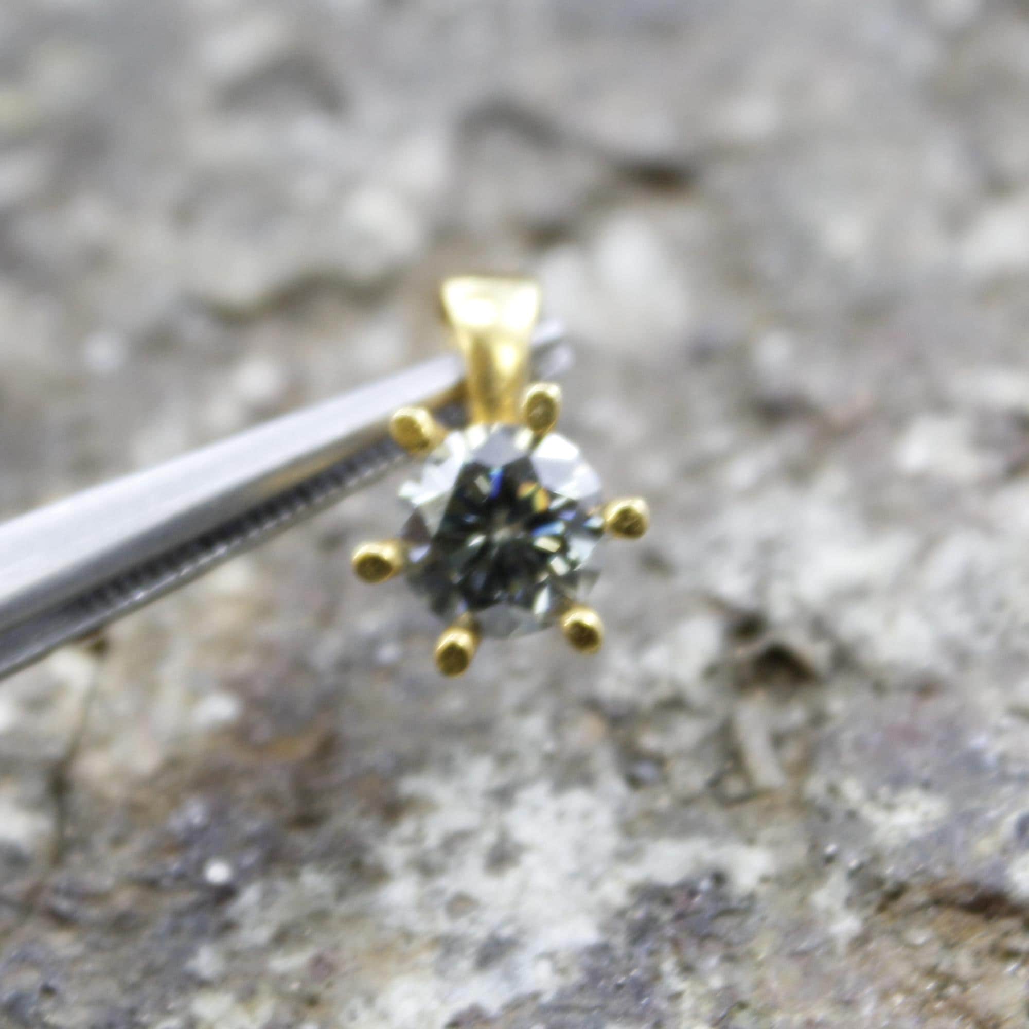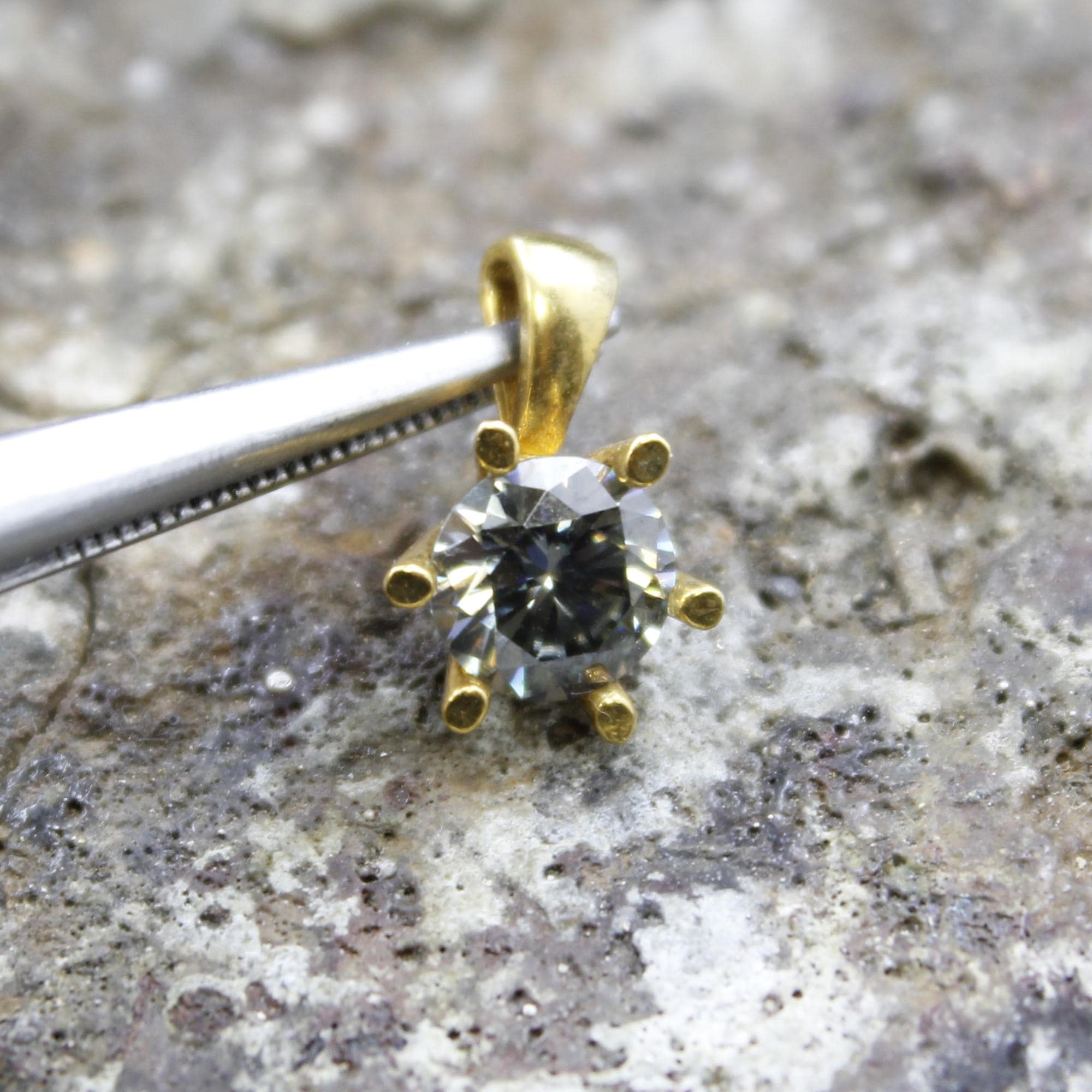 Make a statement of modern elegance with this stunning diamond cut grey moissanite pendant. Handcrafted from solid 925 sterling silver and coated in a luxurious layer of 24K gold vermeil, this pendant combines timeless craftsmanship with a contemporary, radiant finish.