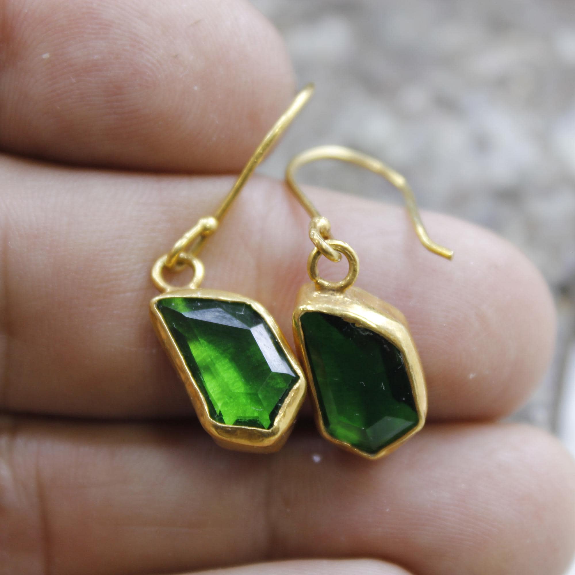 Bring elegance and timeless beauty to your look with these stunning handmade emerald dangle earrings. Featuring lab-created emeralds that shimmer with deep, vivid green hues, these earrings symbolize love, harmony, and renewal.