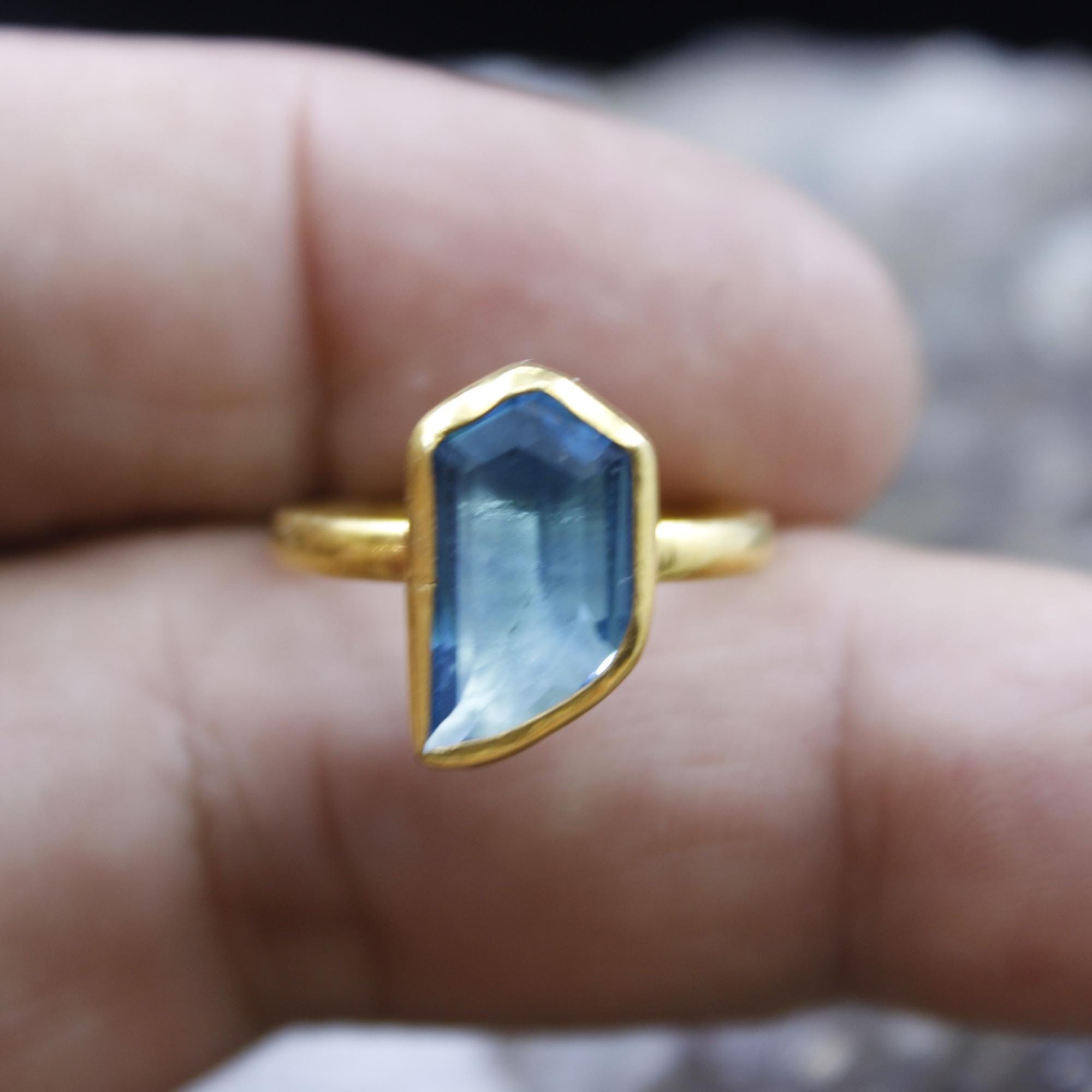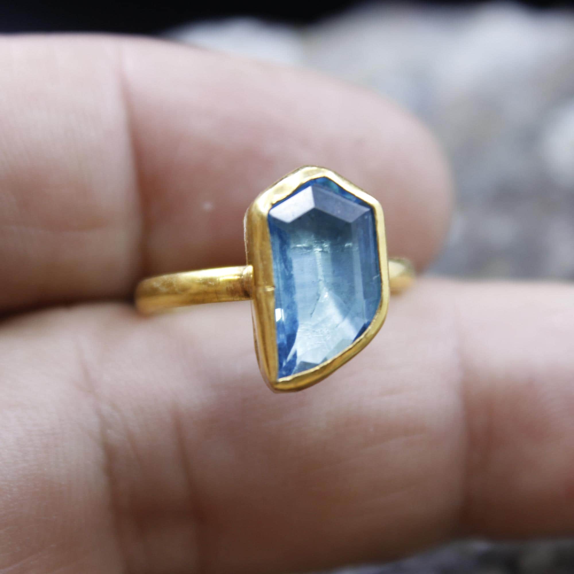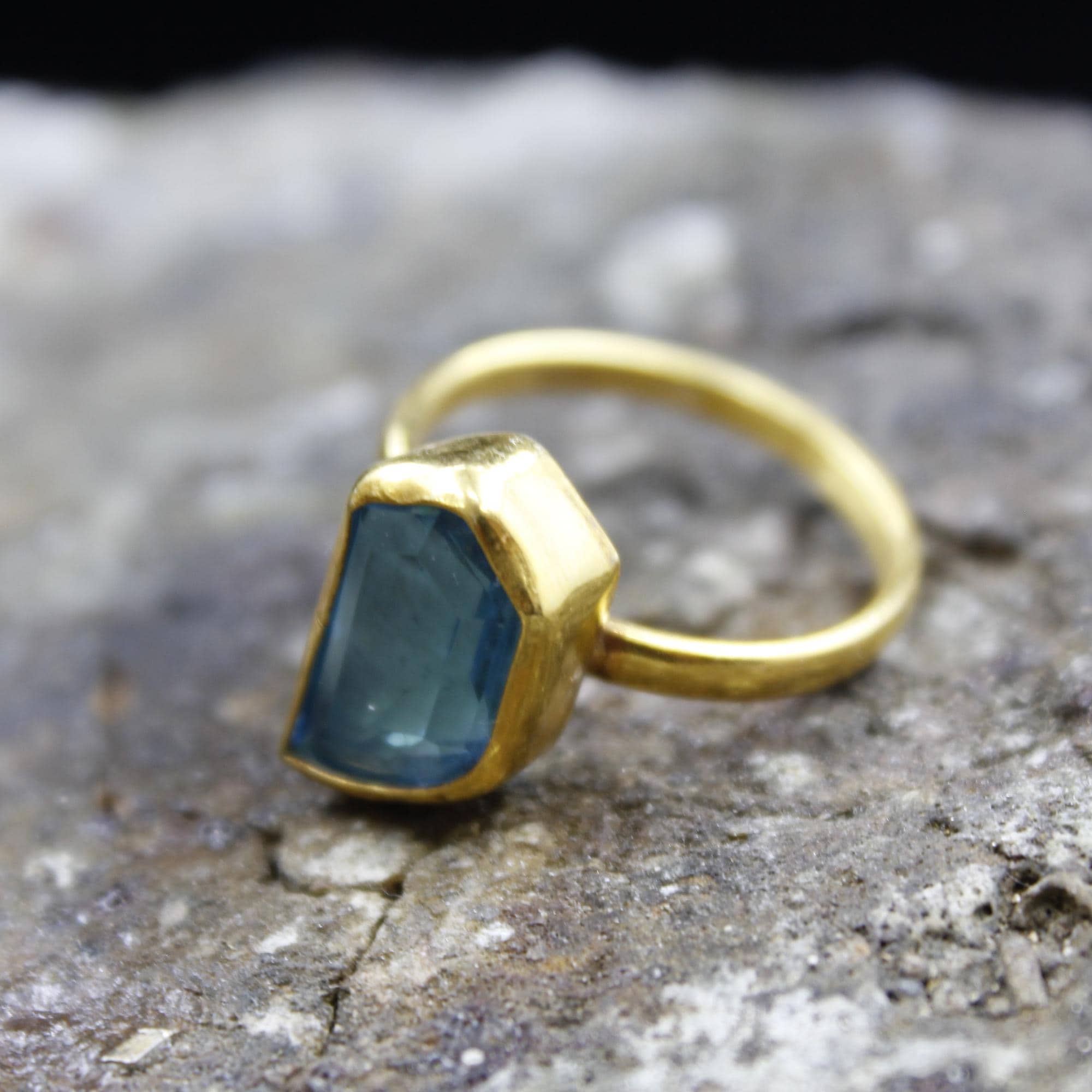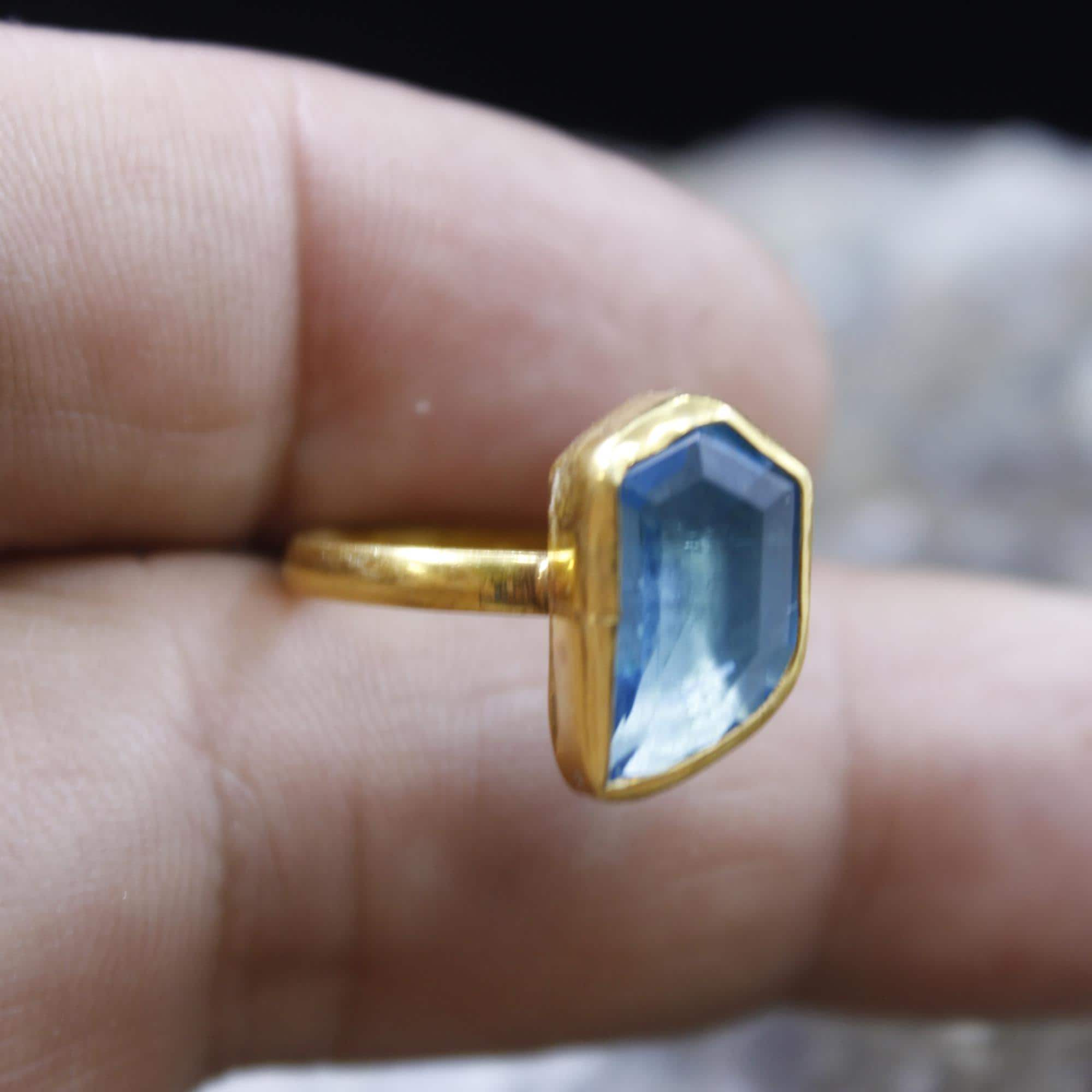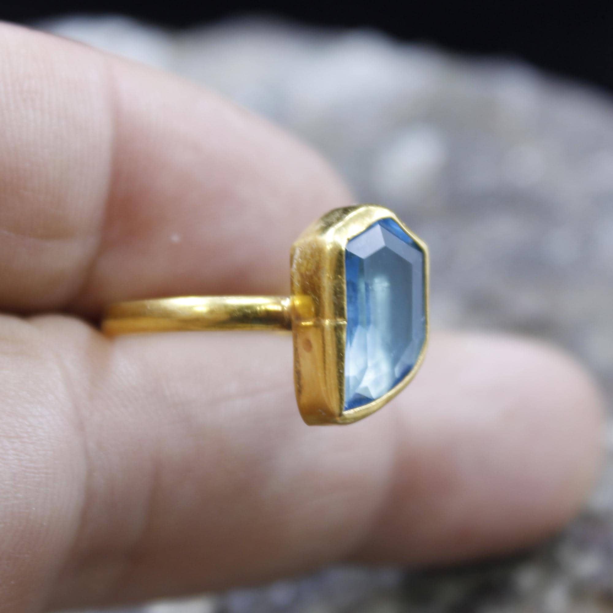 Add a touch of brilliance to your collection with this handmade blue topaz ring, featuring a lab-created blue topaz gemstone set in solid 925 sterling silver and finished with a rich layer of 24K gold vermeil.