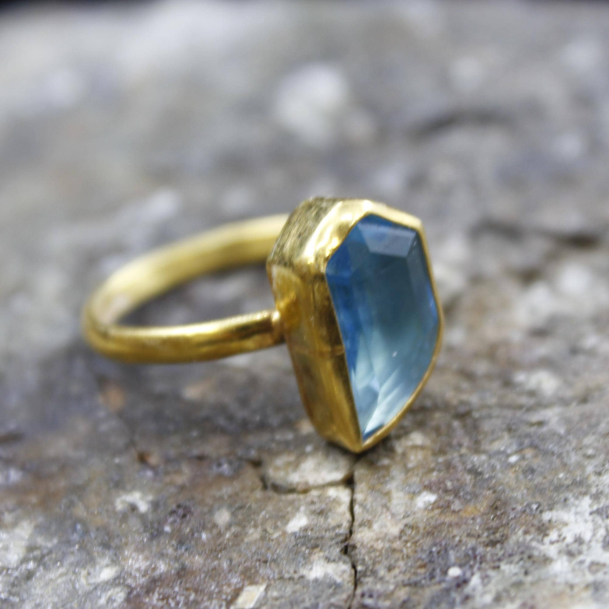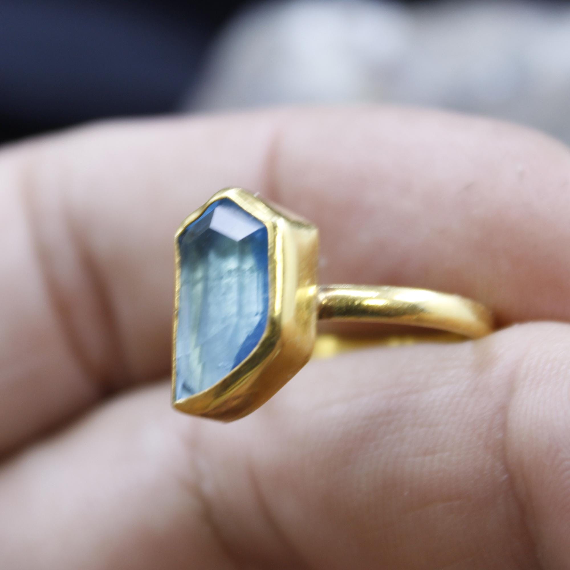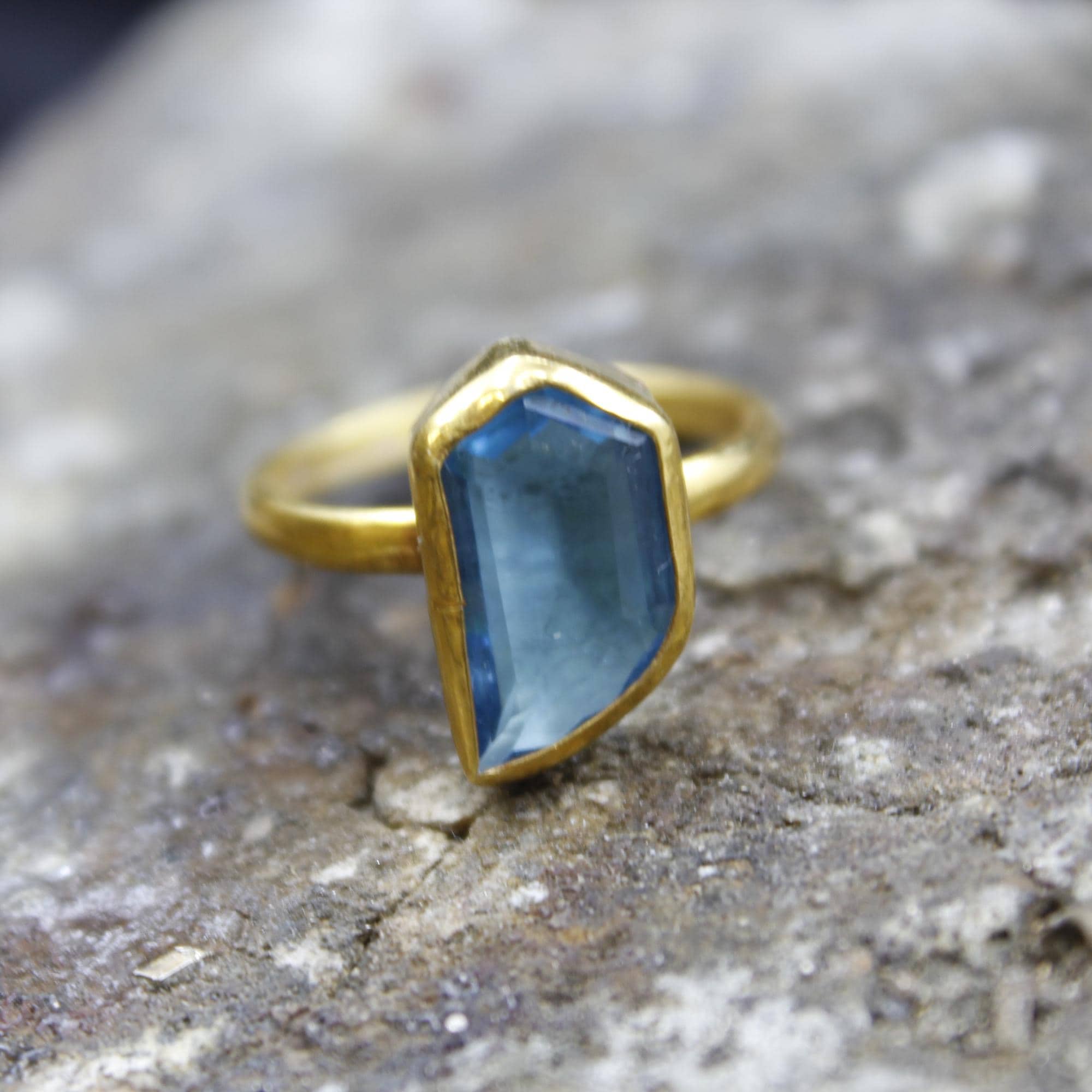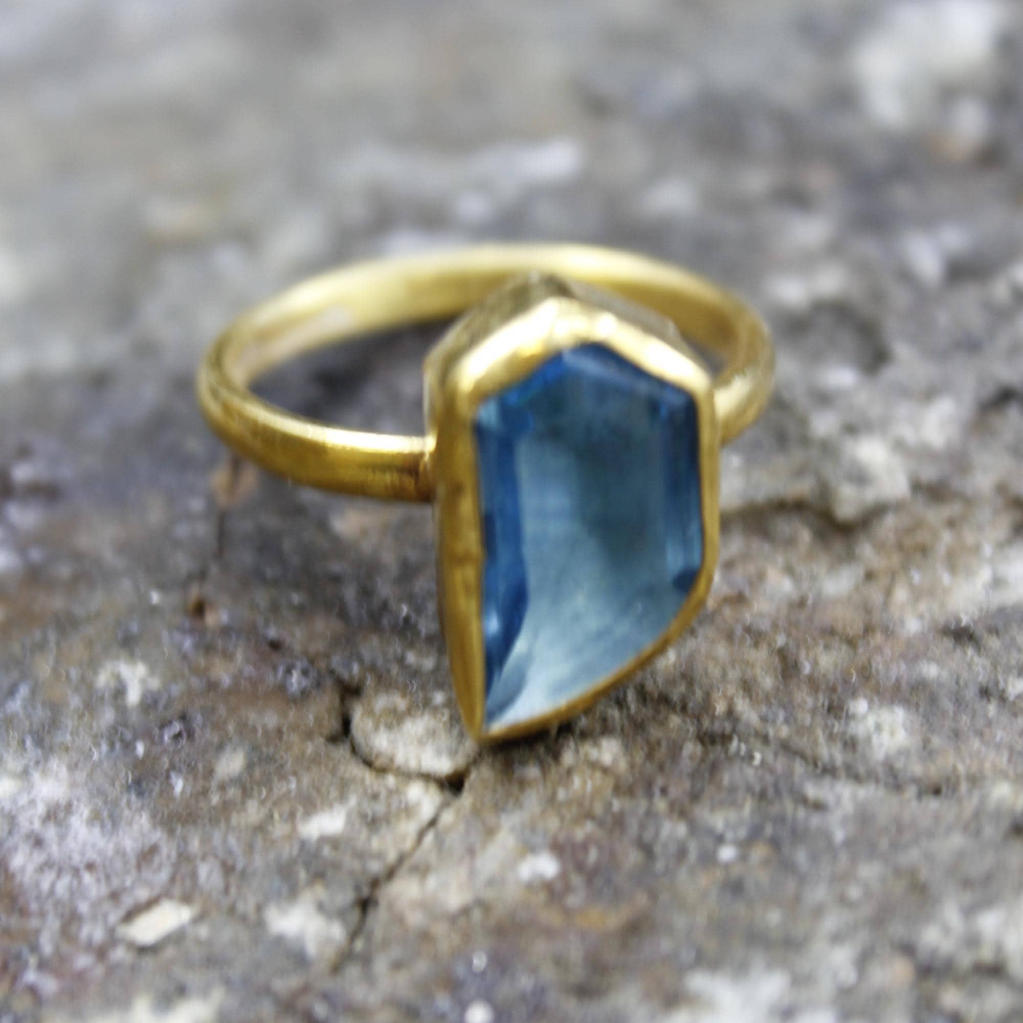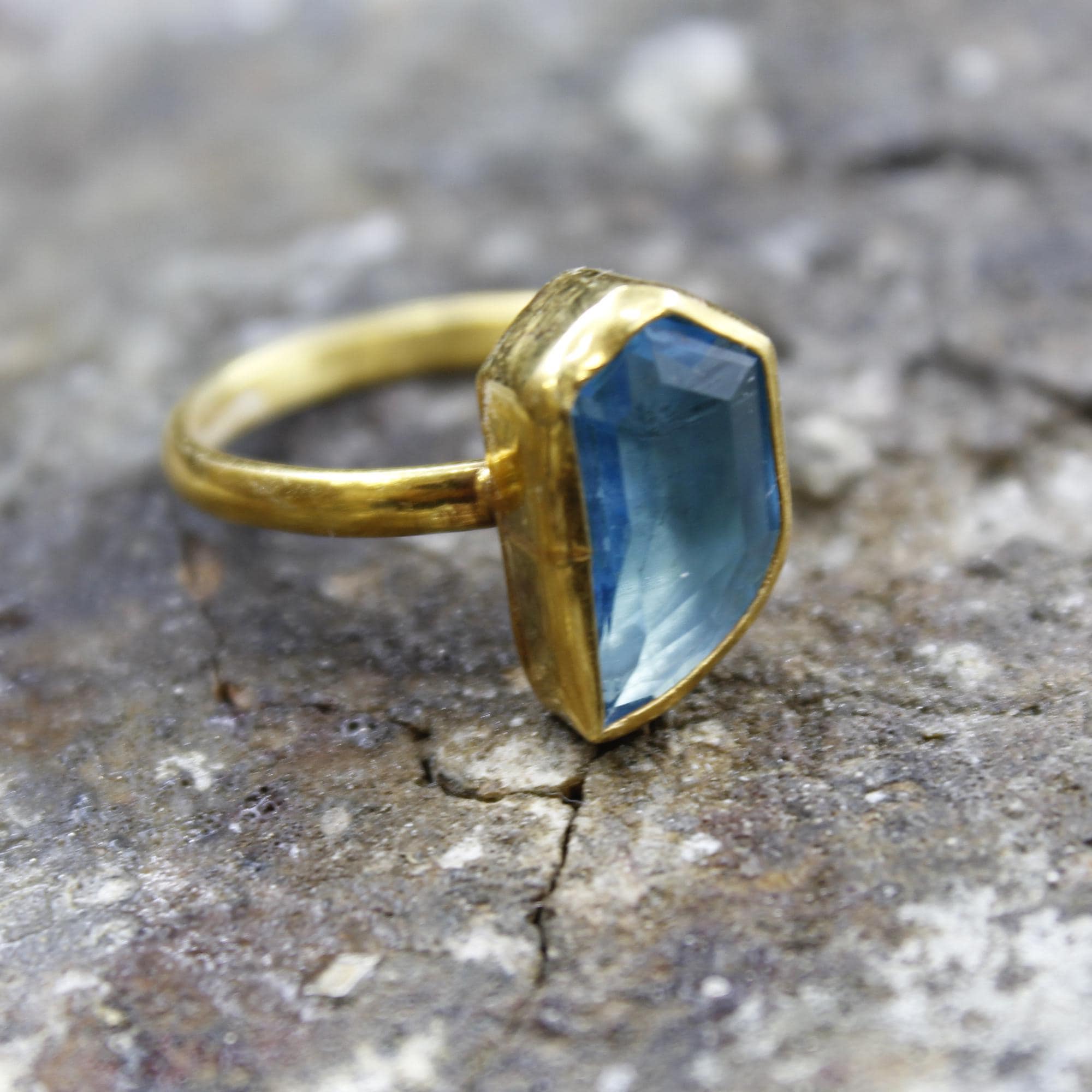 Add a touch of brilliance to your collection with this handmade blue topaz ring, featuring a lab-created blue topaz gemstone set in solid 925 sterling silver and finished with a rich layer of 24K gold vermeil.
