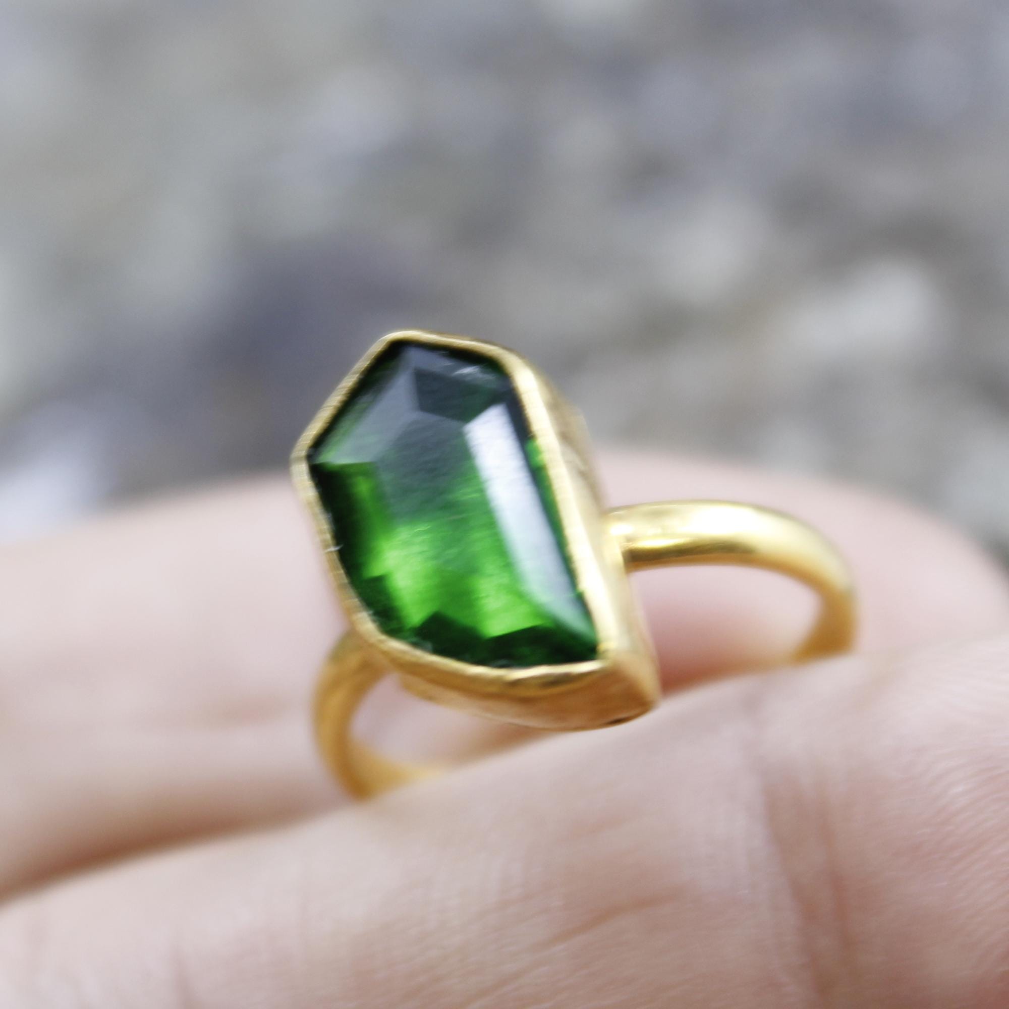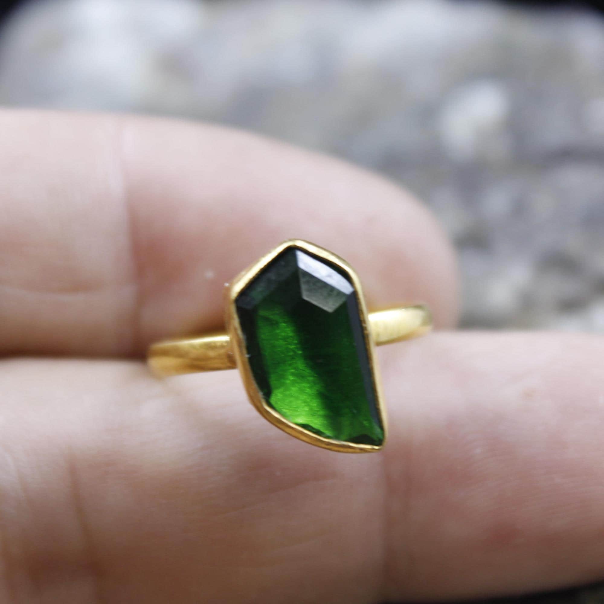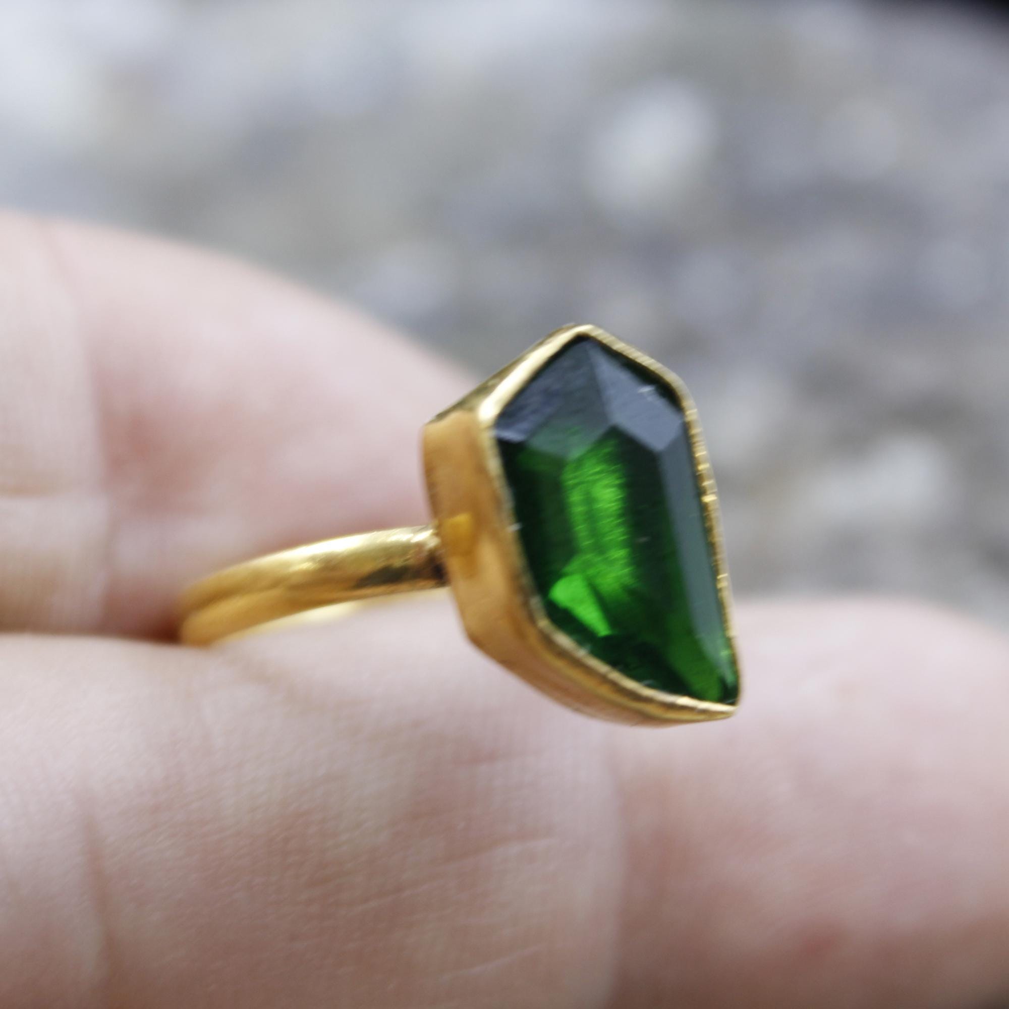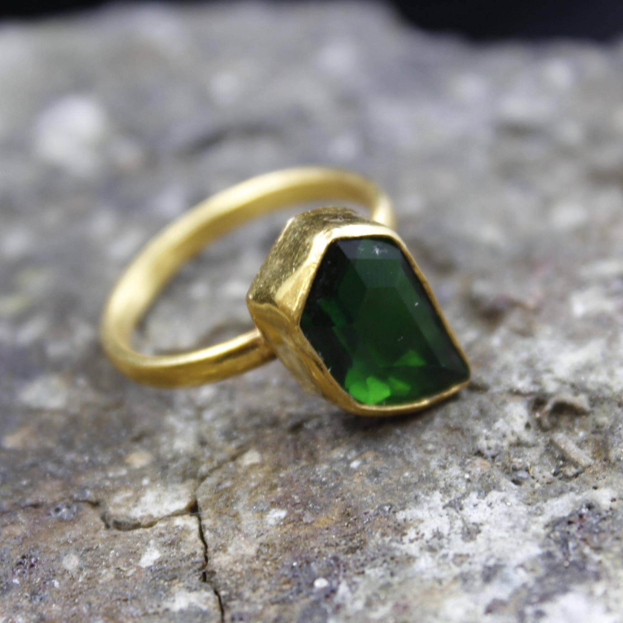 Bring timeless elegance to your style with this handmade emerald ring, featuring a lab-created emerald gemstone set in solid 925 sterling silver with a luxurious 24K gold vermeil finish. The vivid green hue of the emerald symbolizes love, harmony, and renewal — making it both meaningful and beautiful.