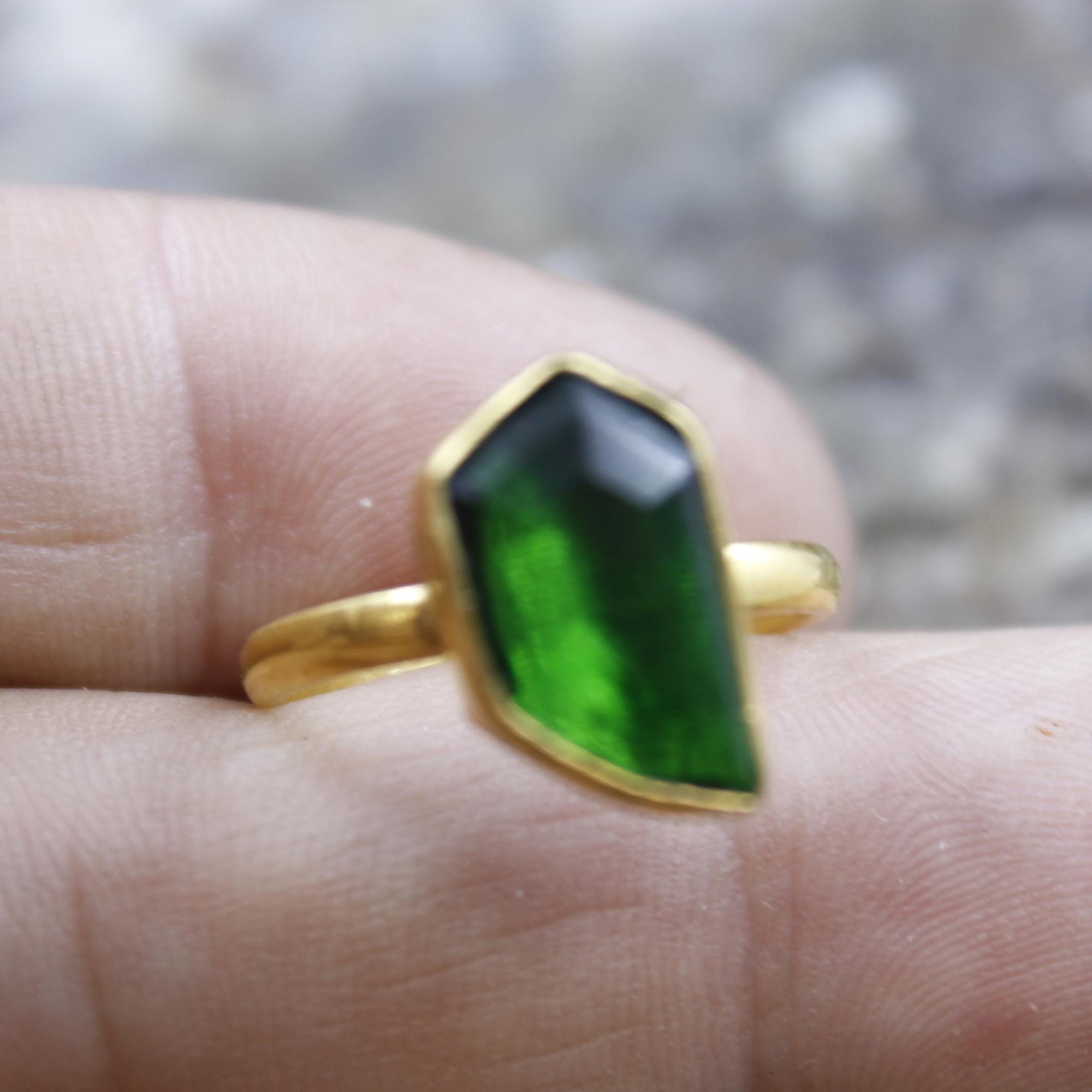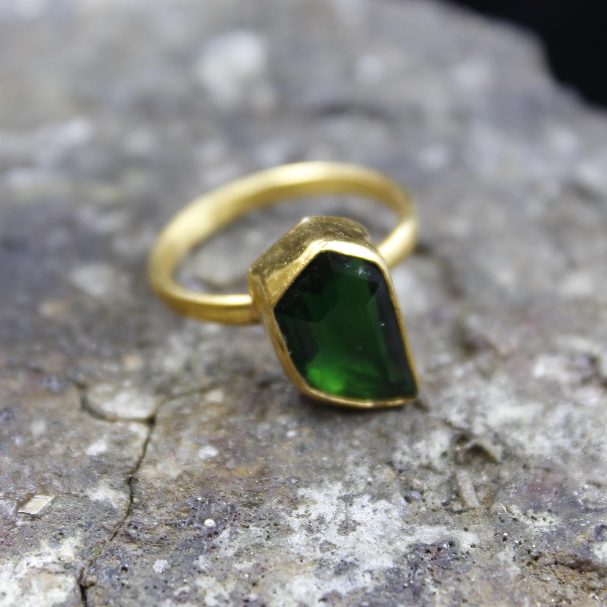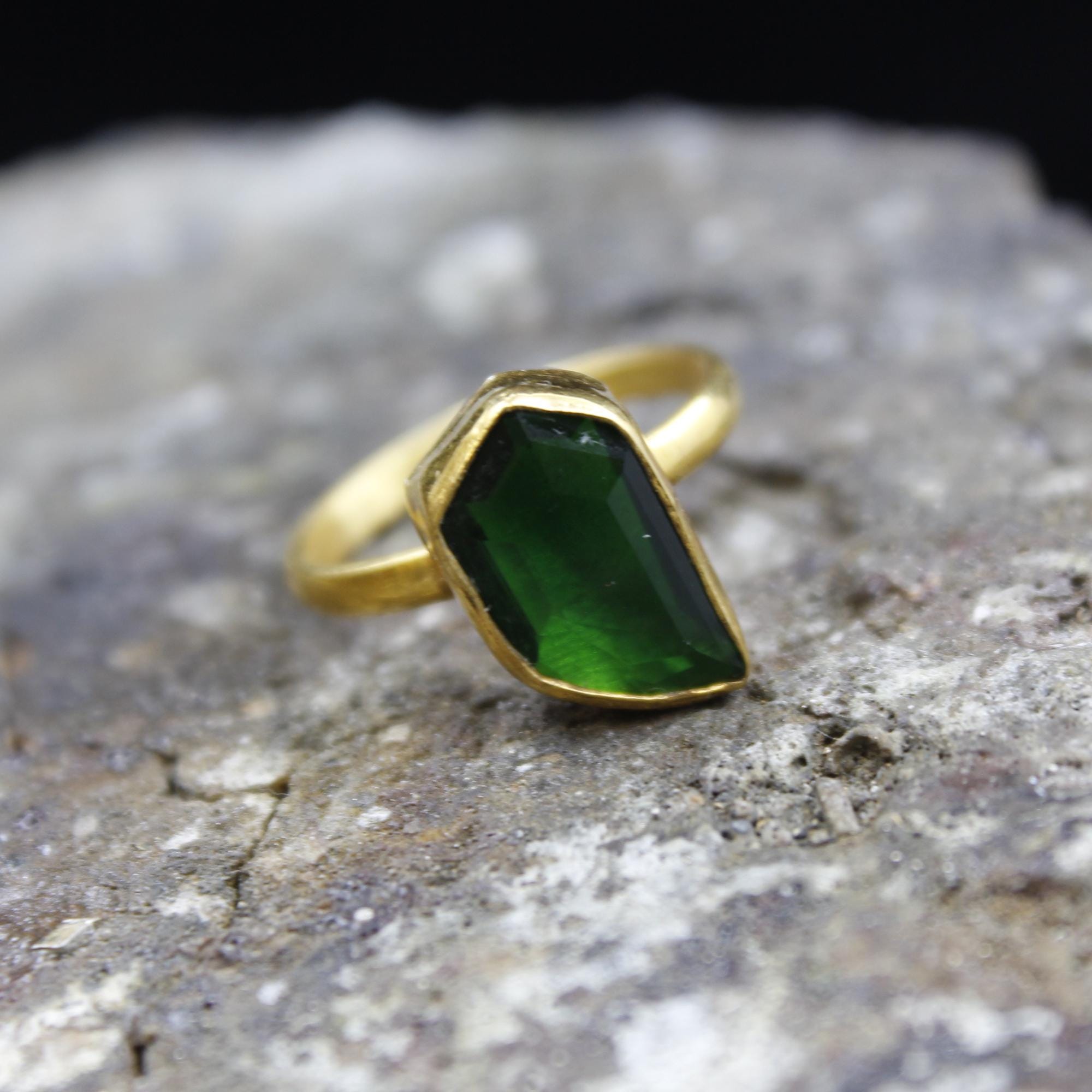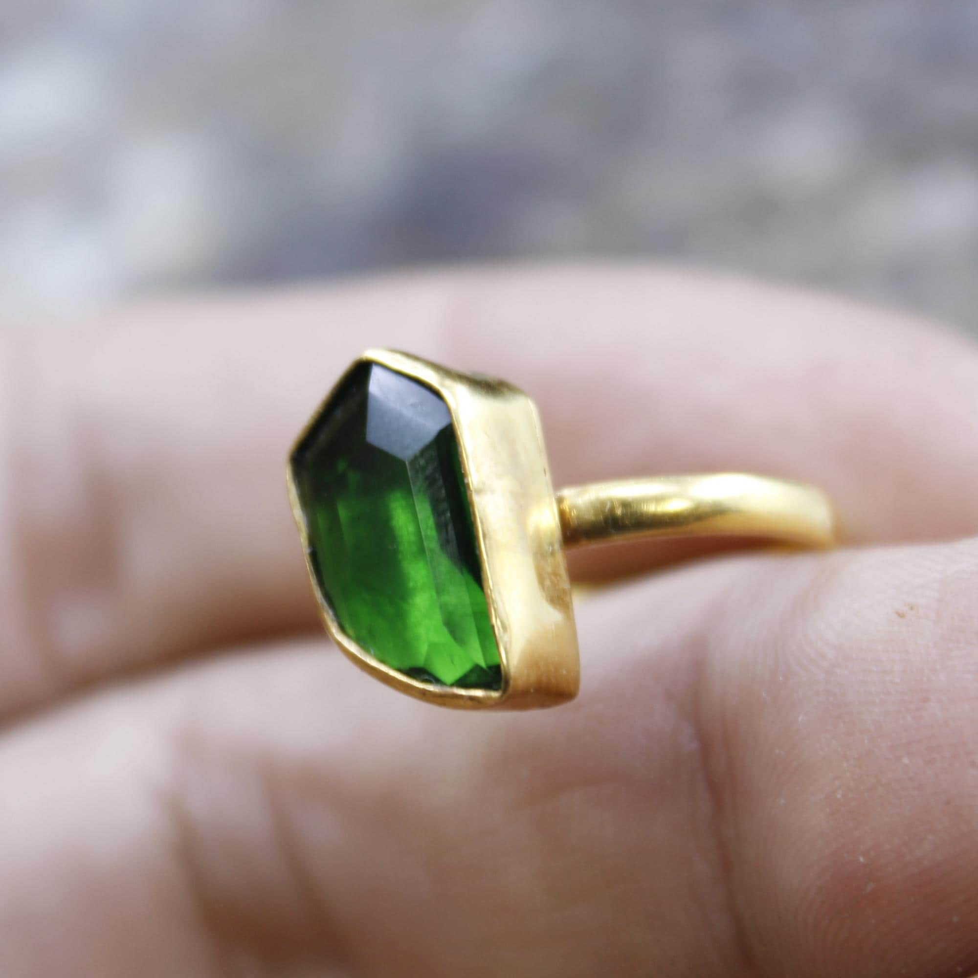 Bring timeless elegance to your style with this handmade emerald ring, featuring a lab-created emerald gemstone set in solid 925 sterling silver with a luxurious 24K gold vermeil finish. The vivid green hue of the emerald symbolizes love, harmony, and renewal — making it both meaningful and beautiful.