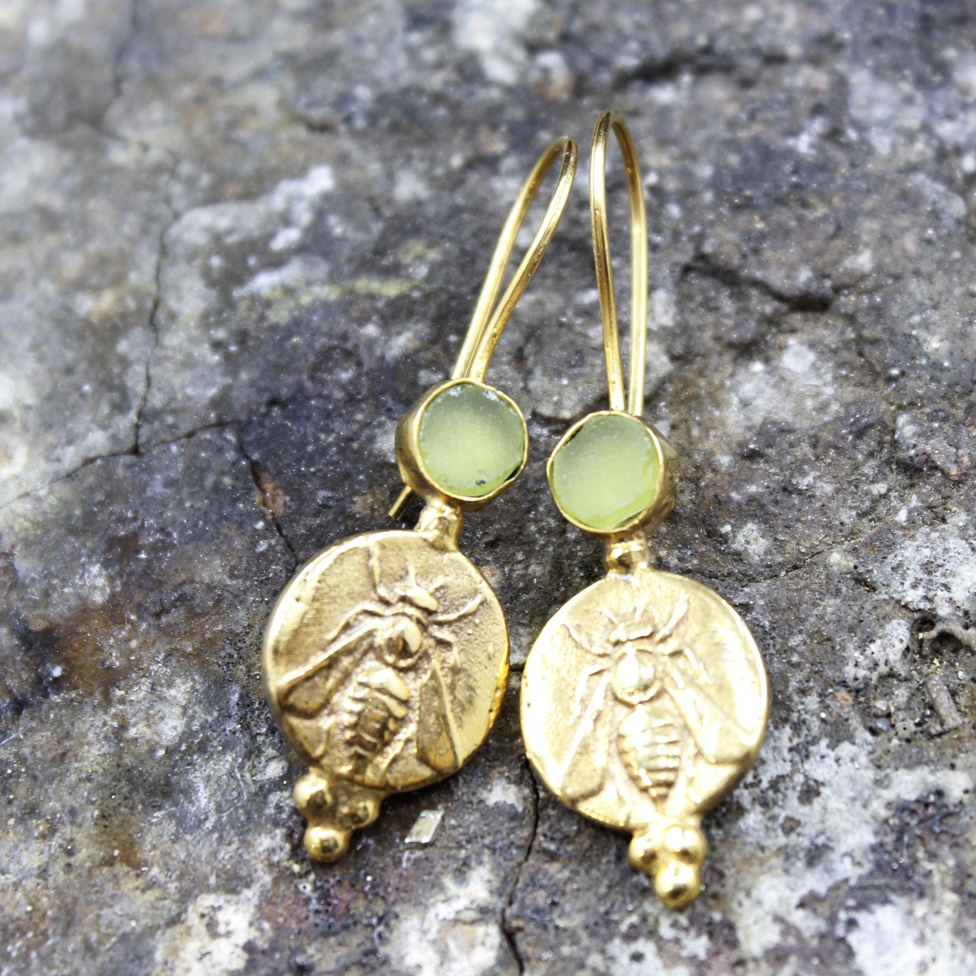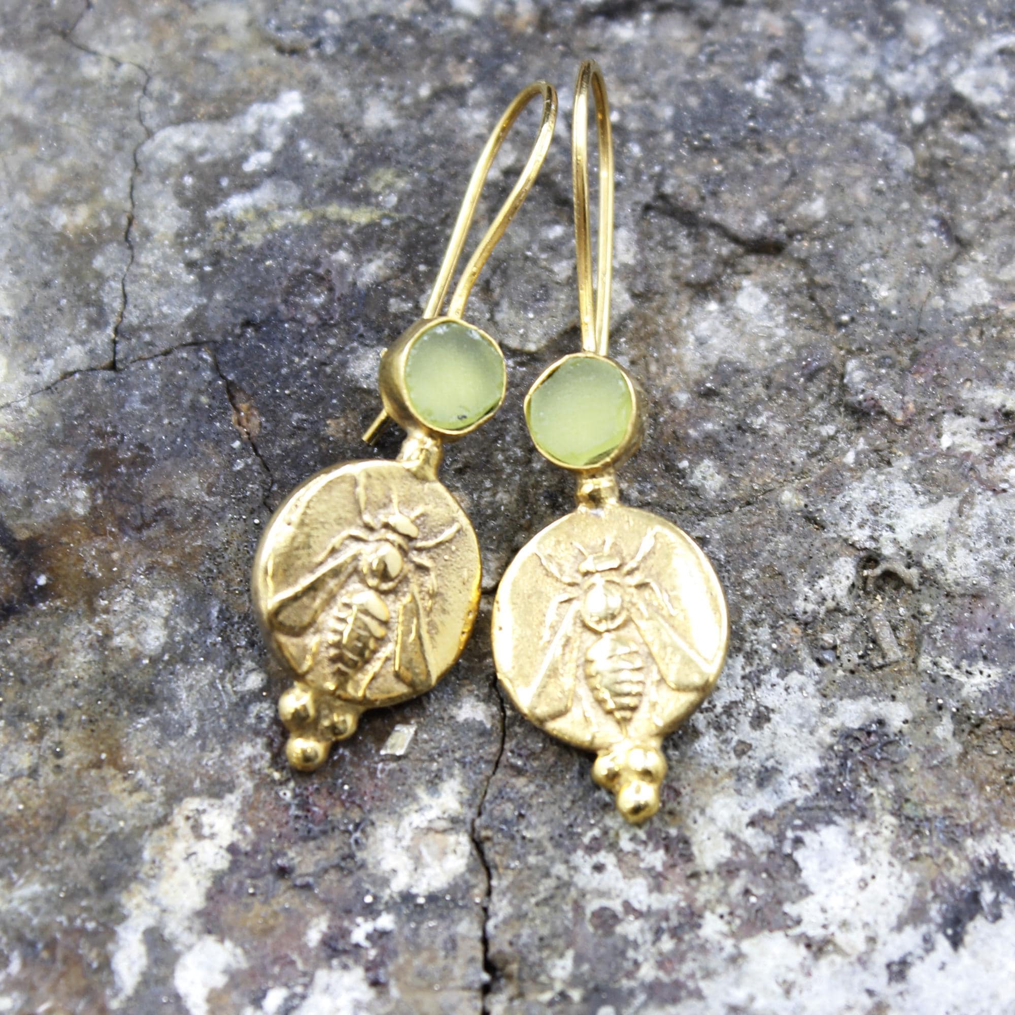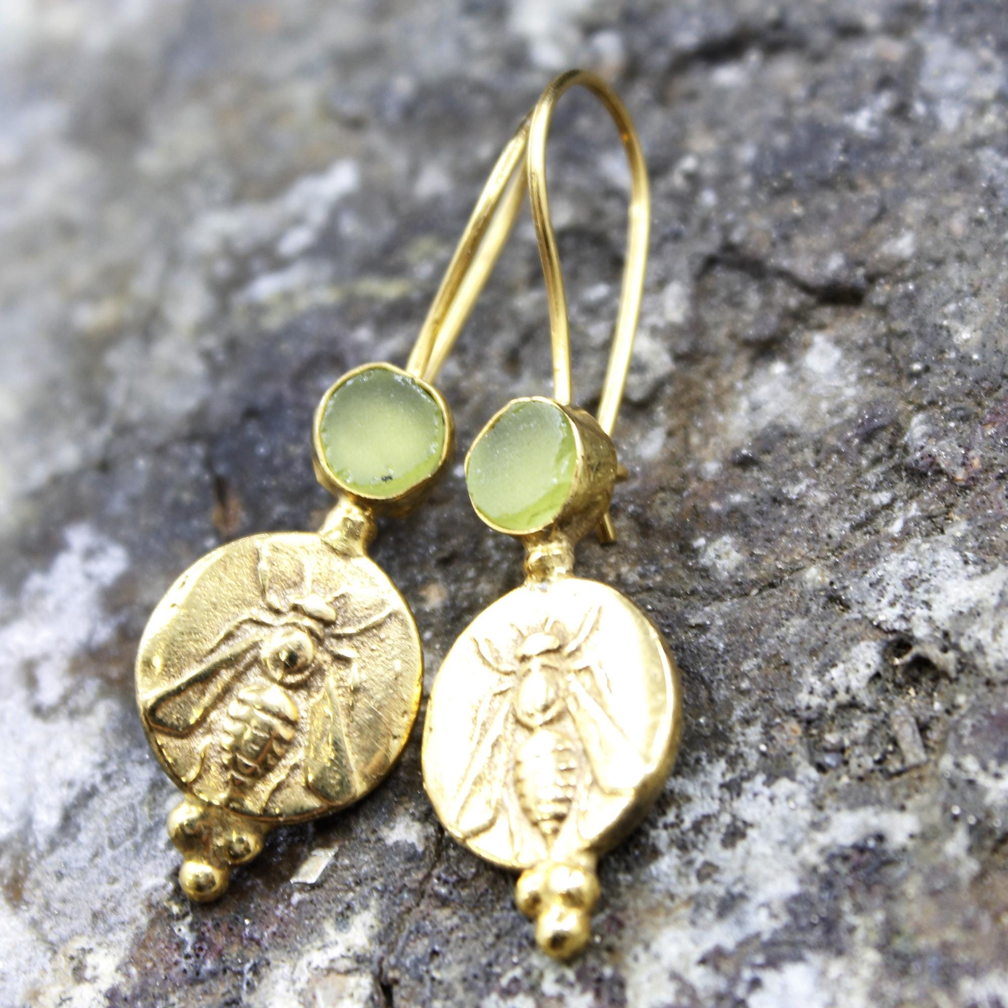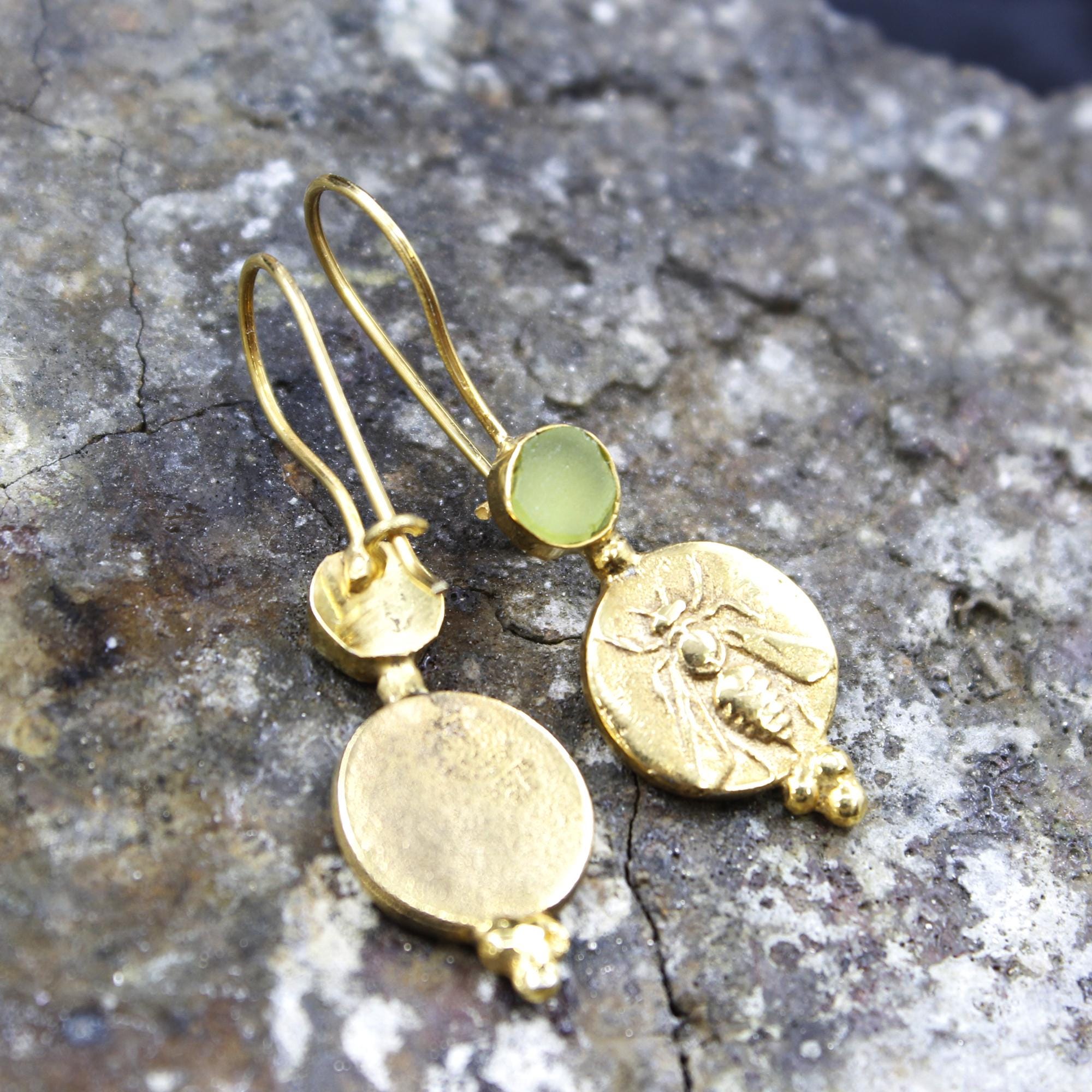 Embrace nature’s charm with these exquisite Bronze Honey Bee Intaglio Earrings, featuring delicately carved bee motifs paired with natural raw Apatite gemstones. Each piece is handcrafted with care in 24K gold vermeil over solid 925k sterling silver — blending elegance, symbolism, and artisan craftsmanship.