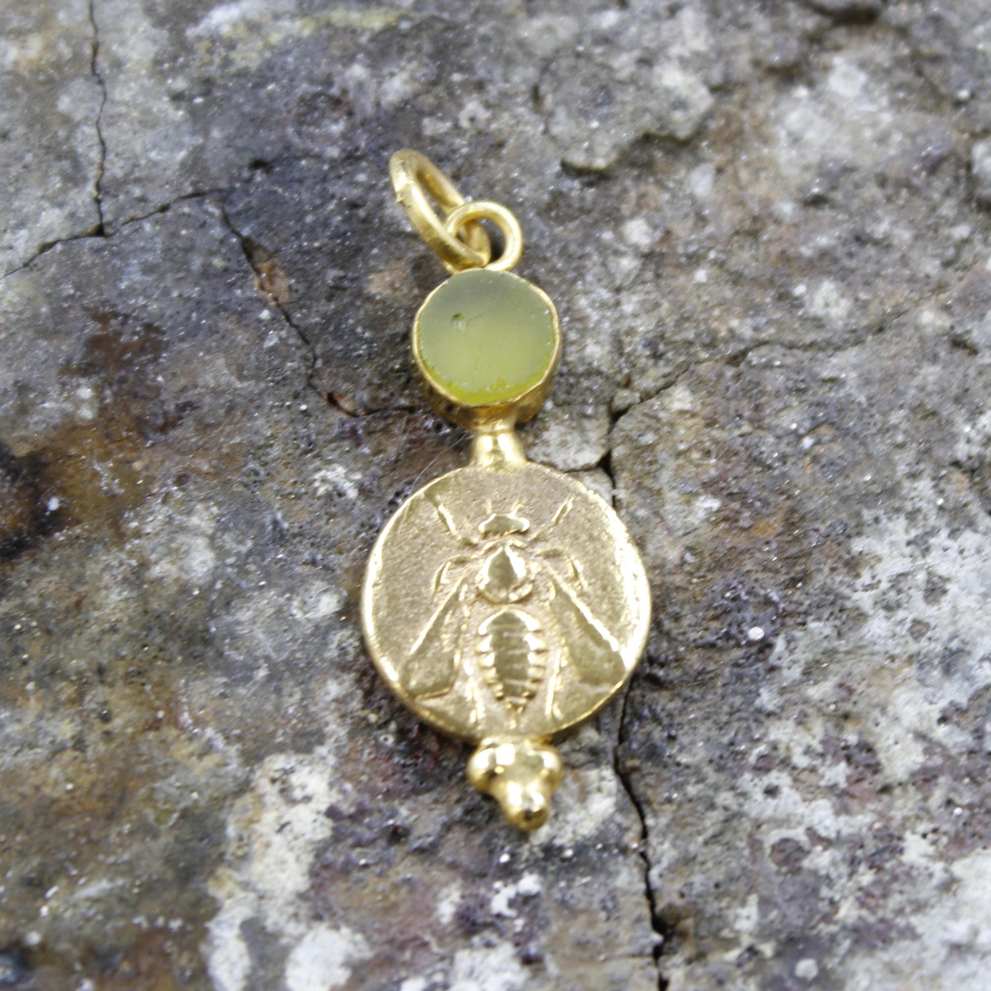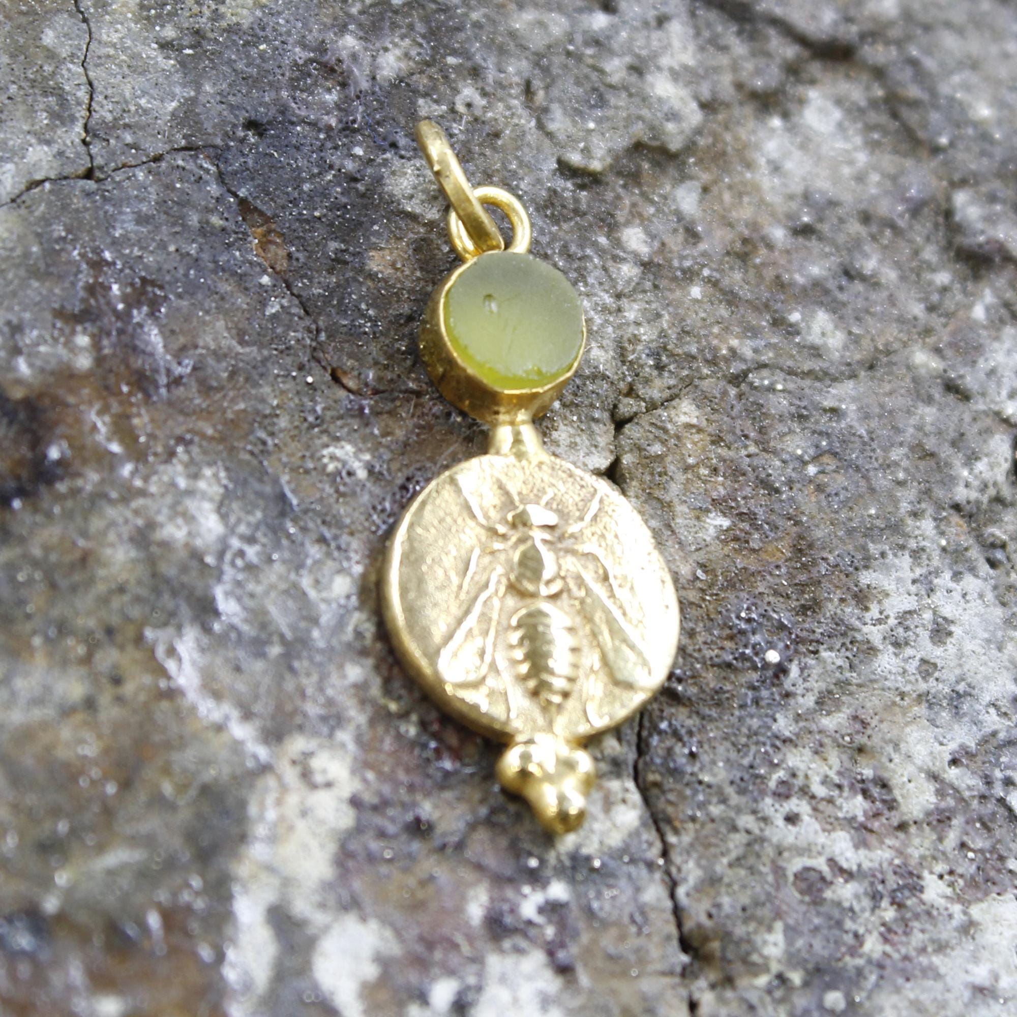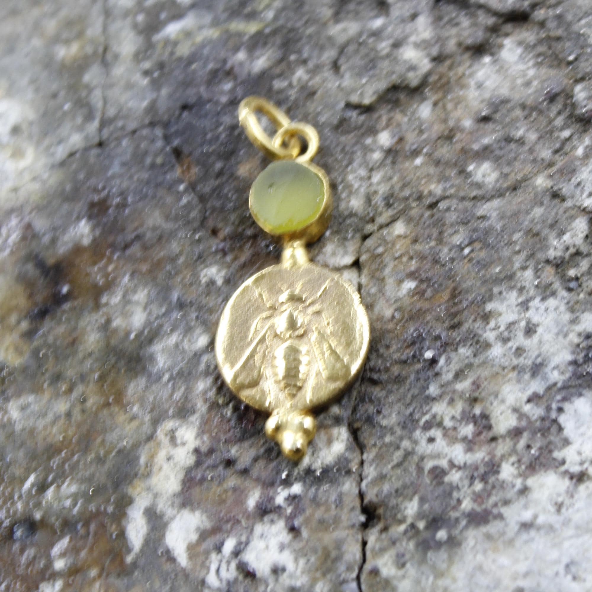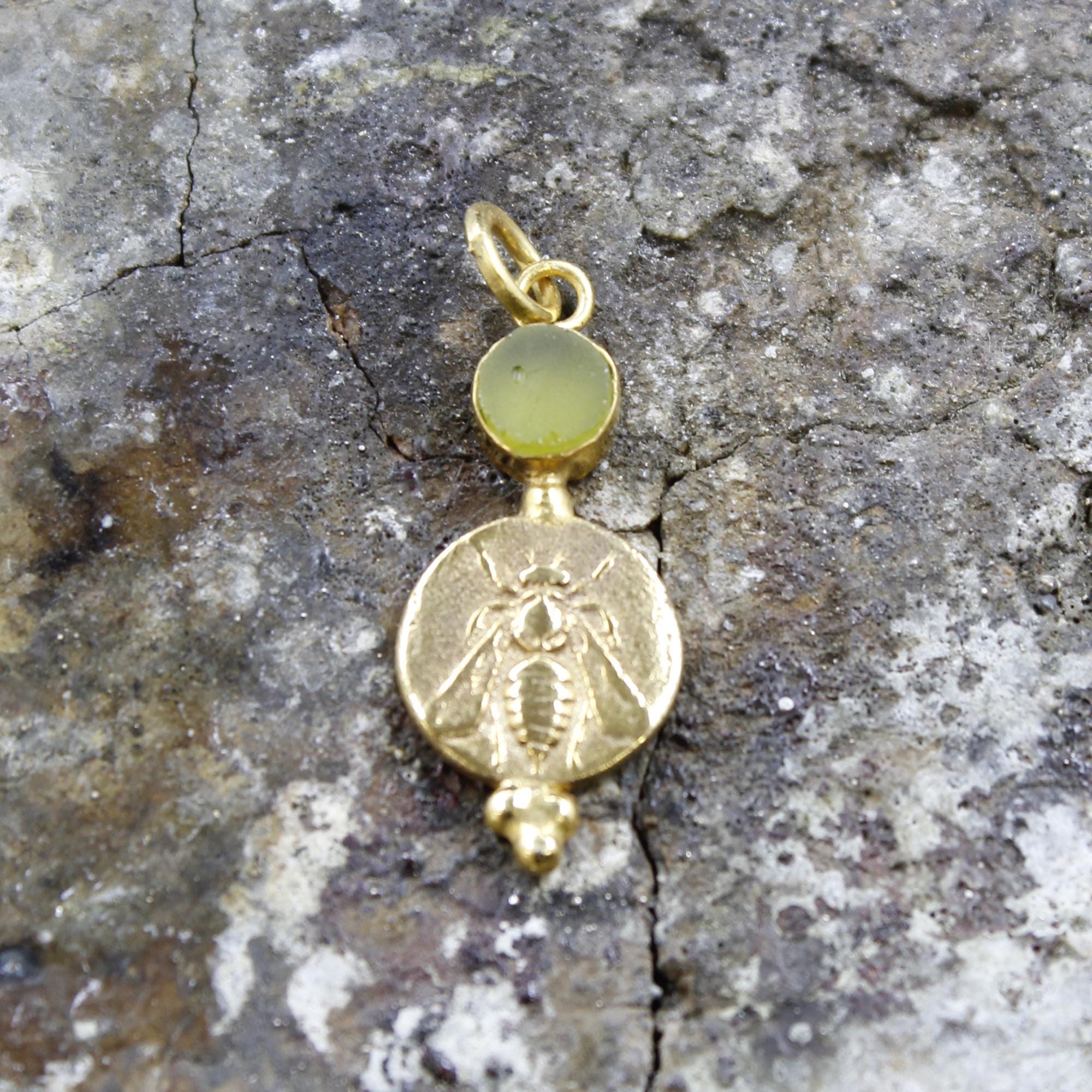Gold Vermeil Honey Bee Intaglio Pendant with Natural Raw Apatite: Bronze Coin, Sterling Silver