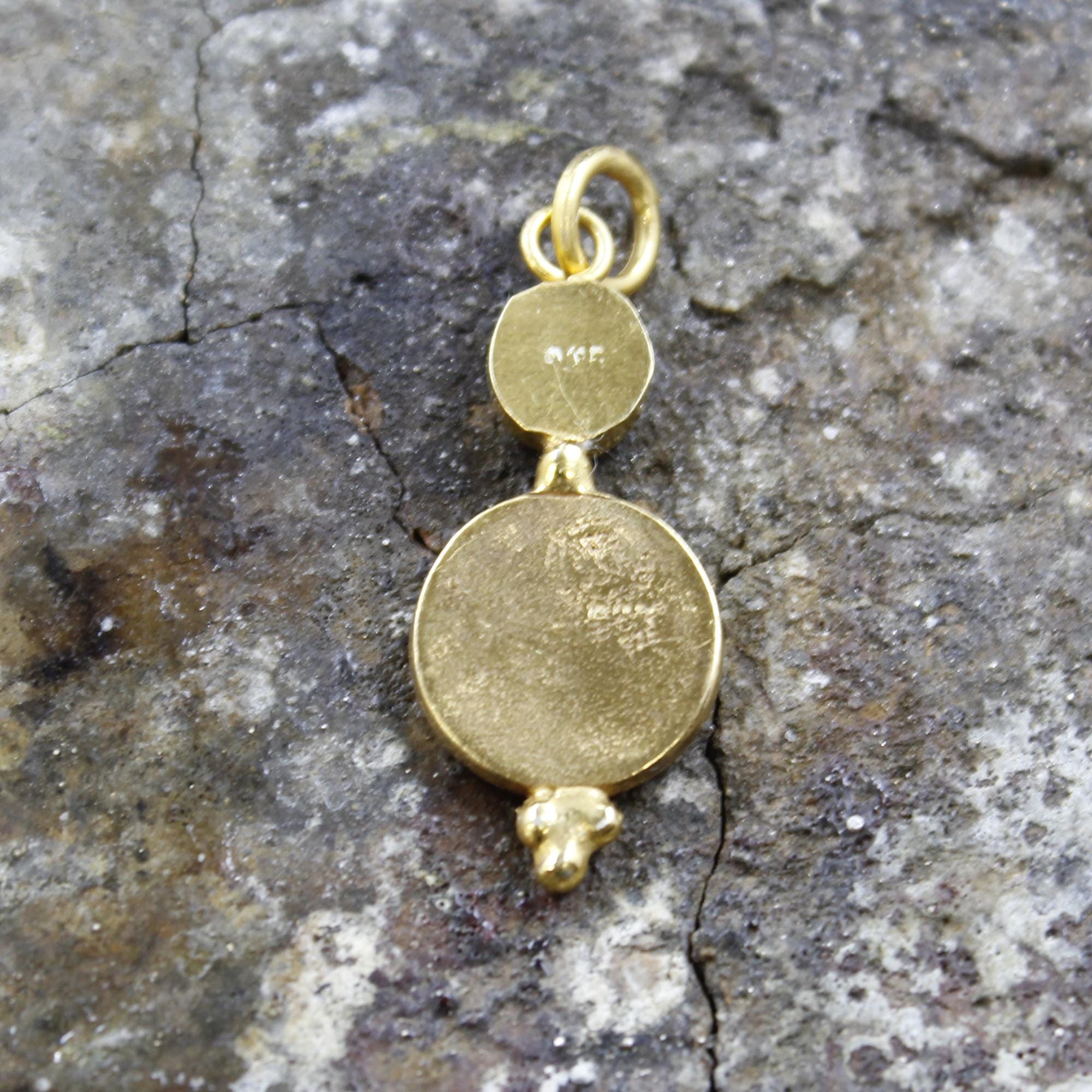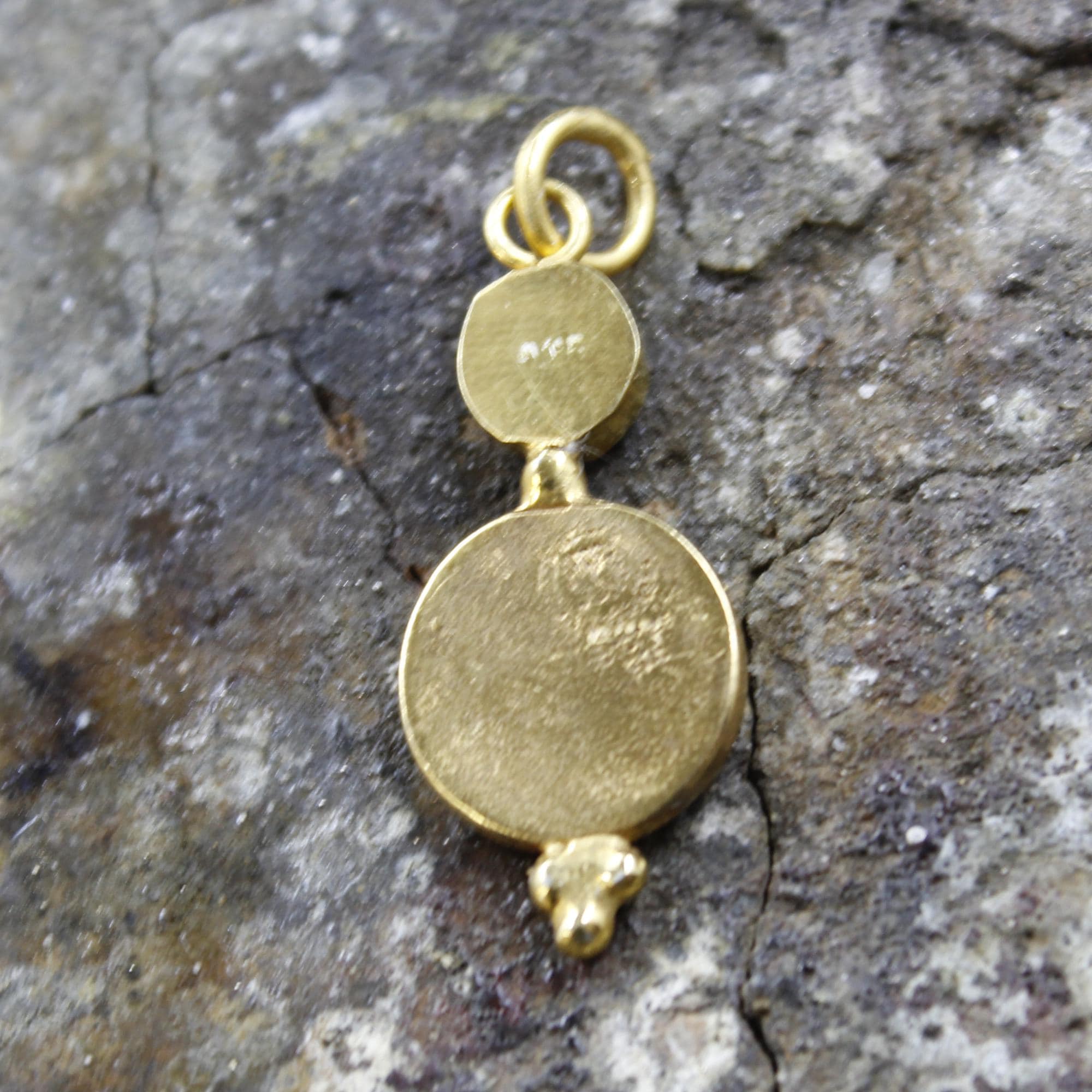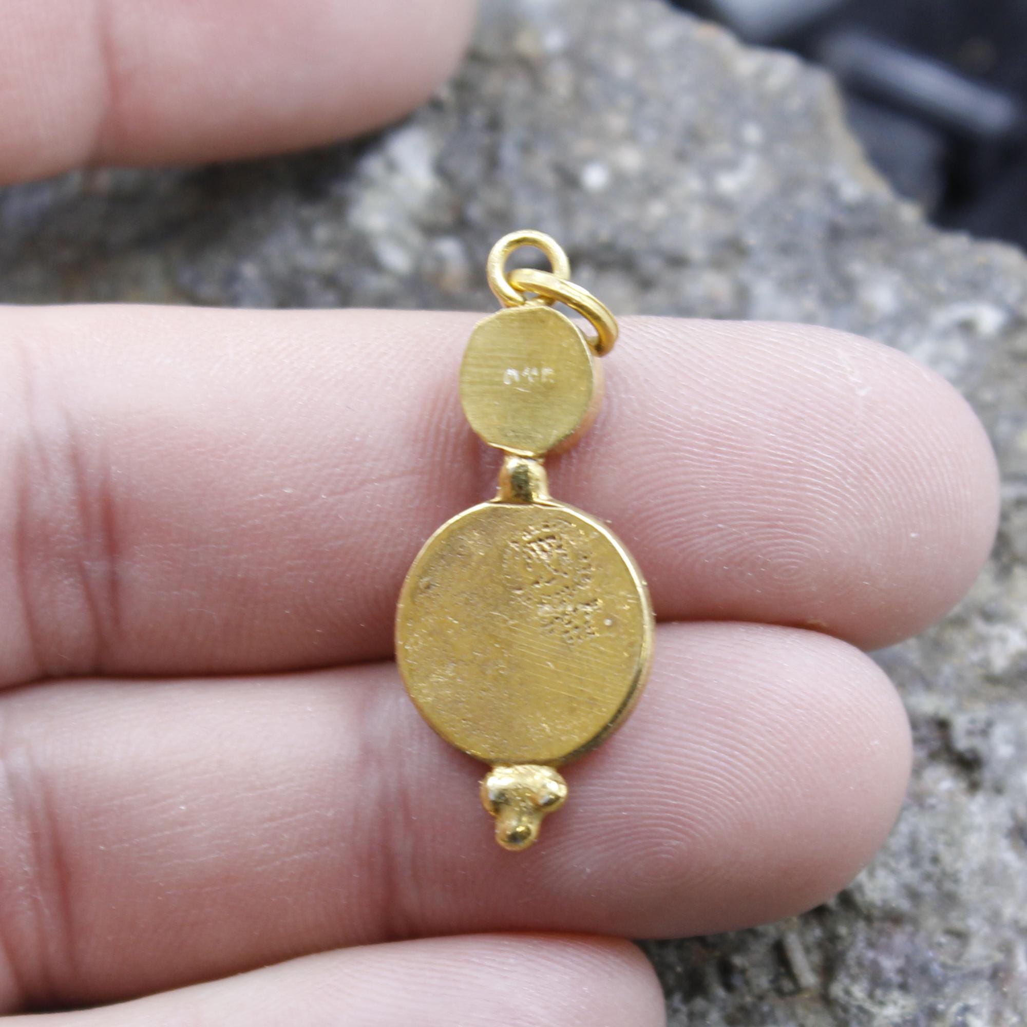 This stunning Honey Bee Intaglio Pendant features a beautifully detailed bronze coin engraved with a classic bee motif, paired with a natural raw Apatite gemstone. The piece is carefully handcrafted in 24K gold vermeil over solid 925k sterling silver, combining elegance, symbolism, and timeless craftsmanship.