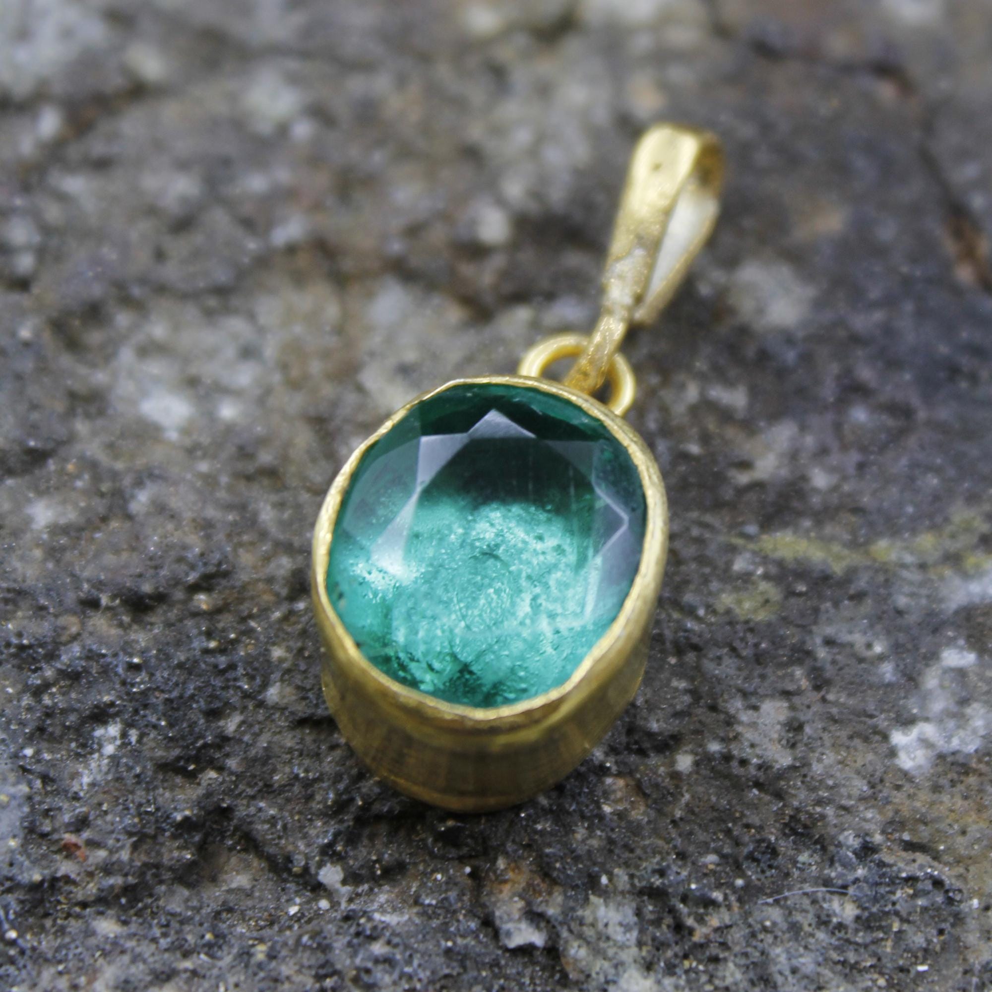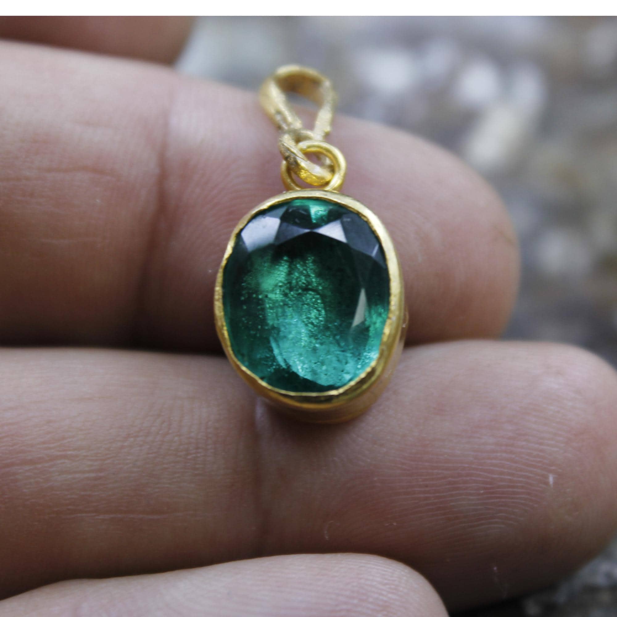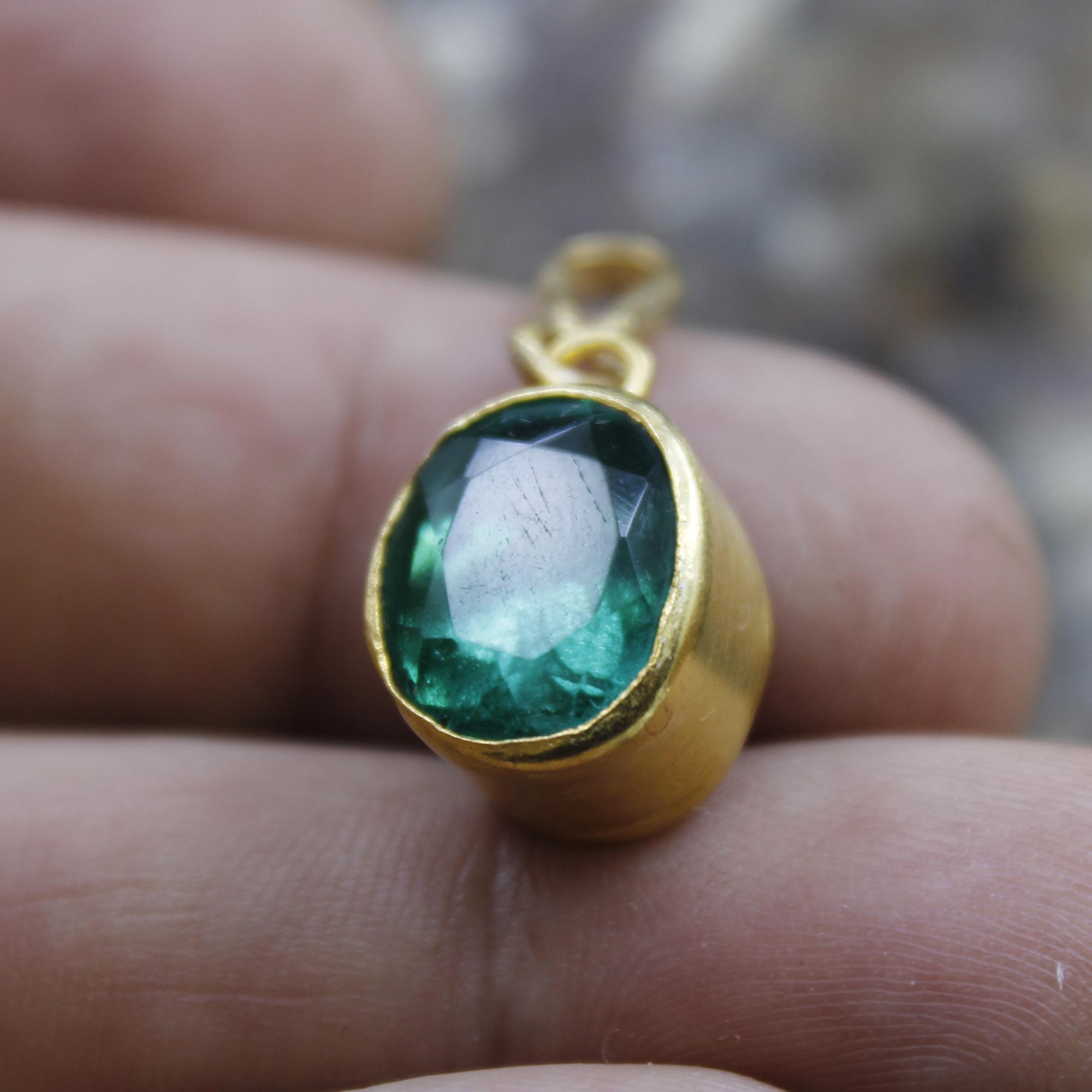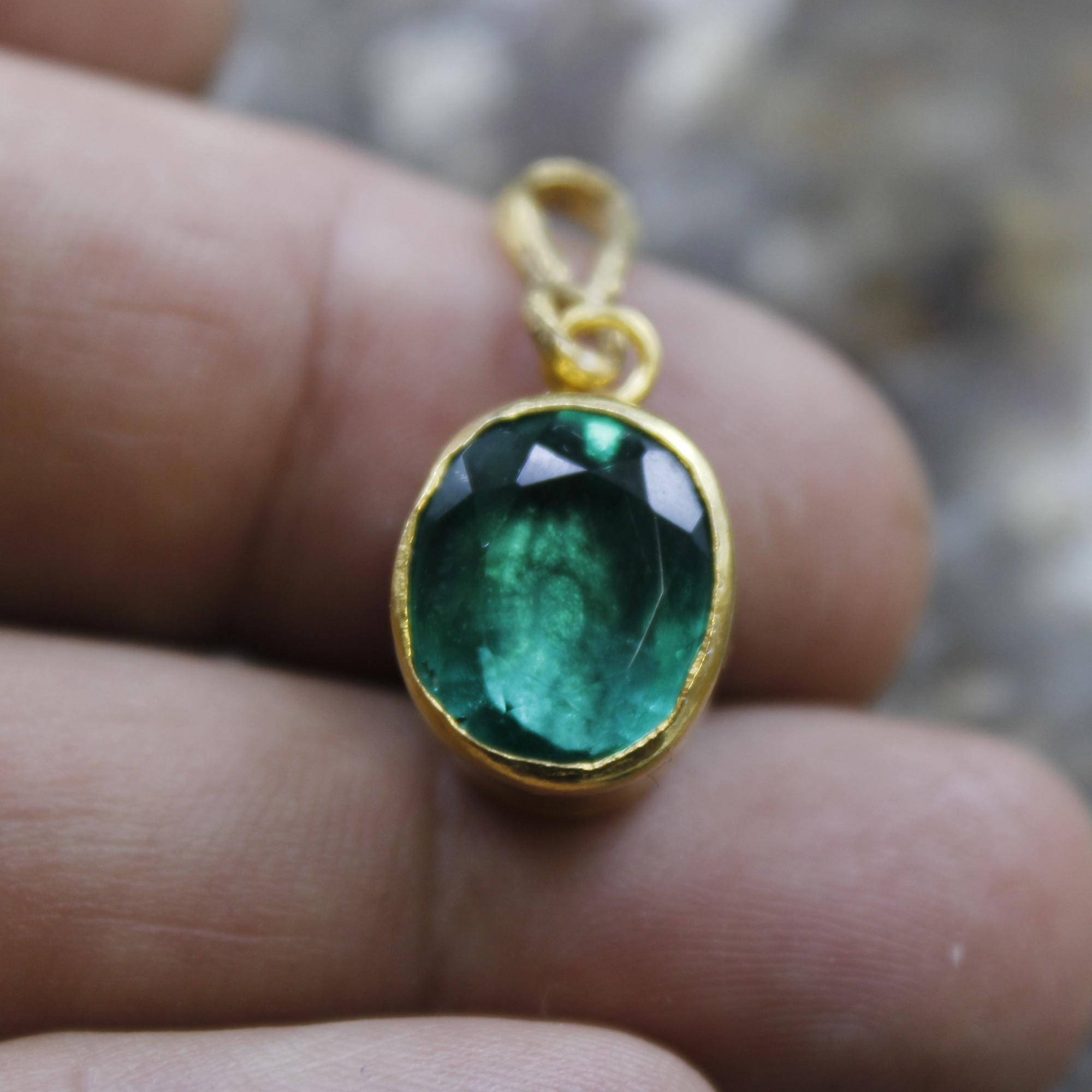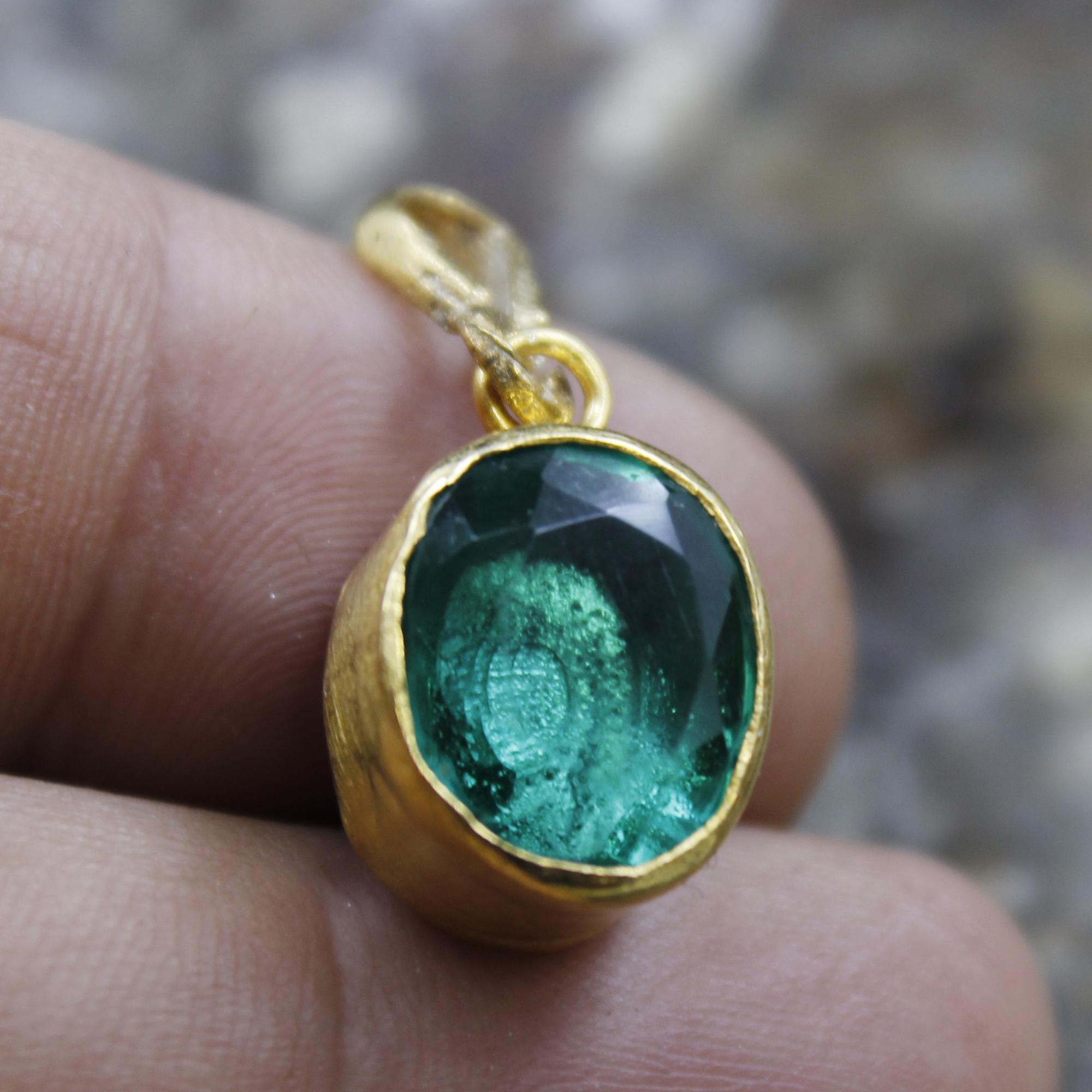 Elevate your jewelry collection with this stunning Lab Created green emerald pendant, crafted with exquisite attention to detail. Featuring a Lab emerald gemstone set in 24K gold over 925K solid sterling silver, this pendant radiates timeless elegance and luxury.