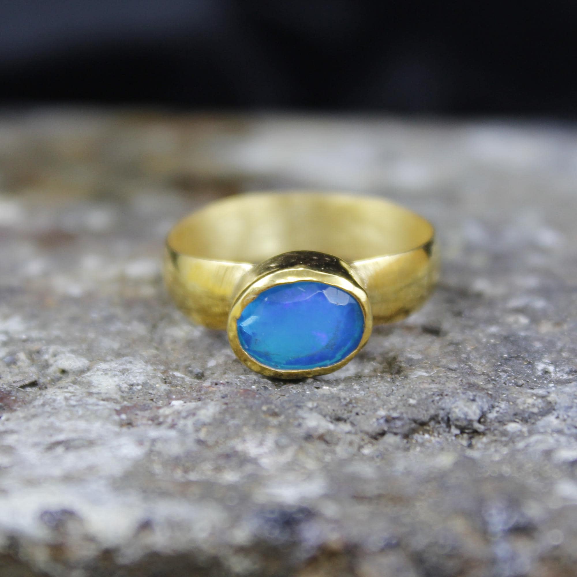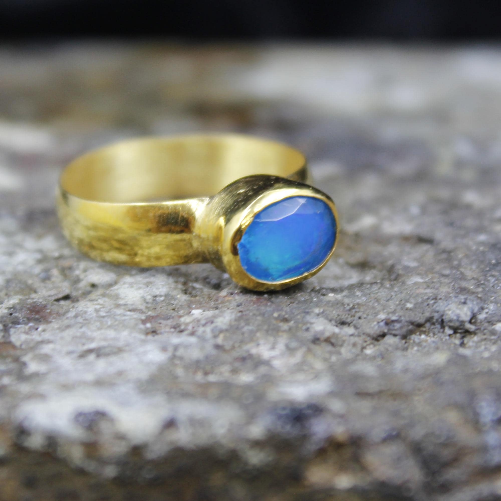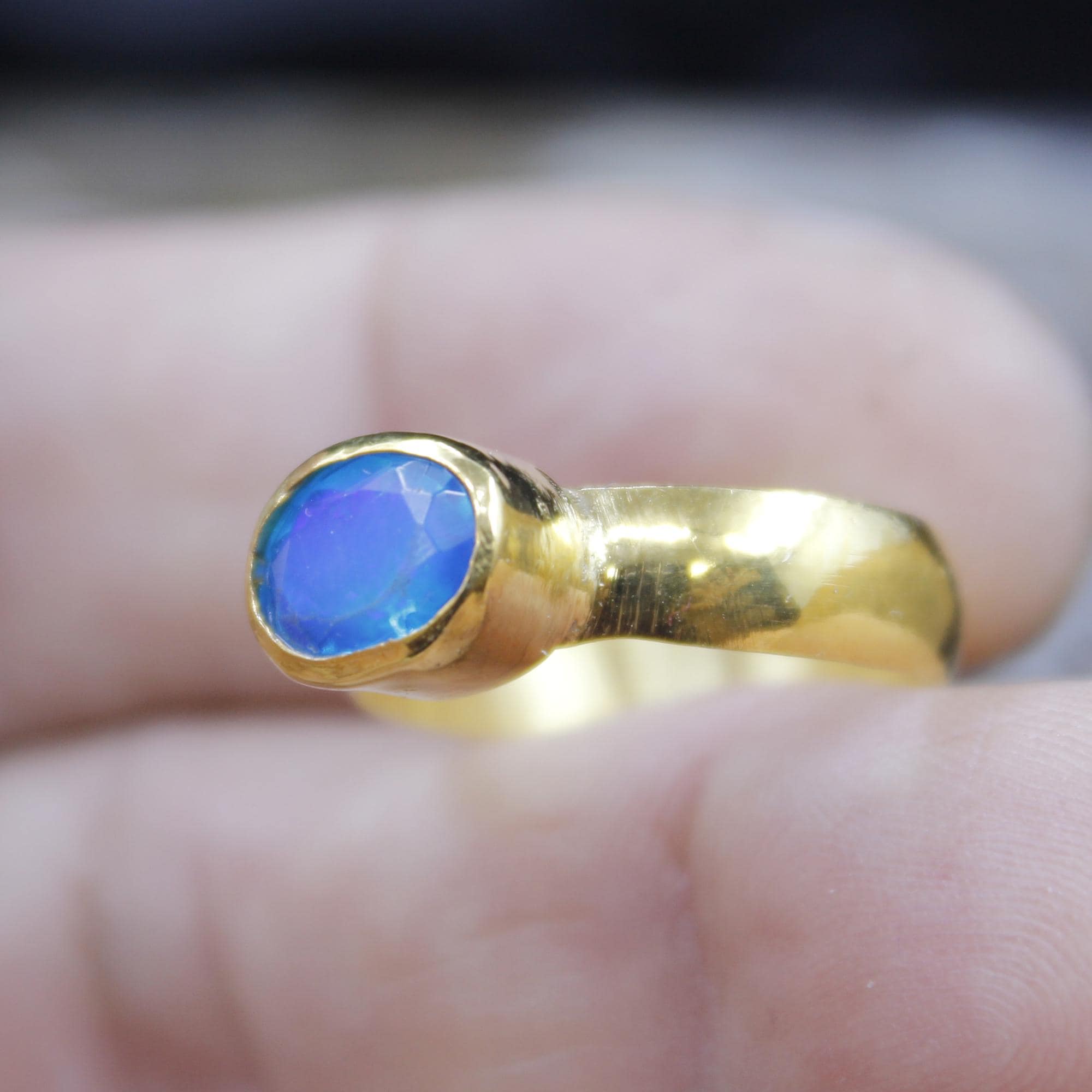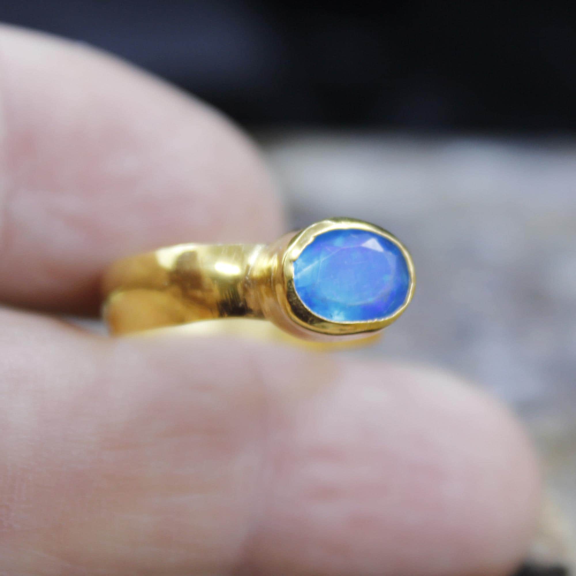 Handmade Natural Blue Opal Ring — 24K Gold Over Sterling Silver