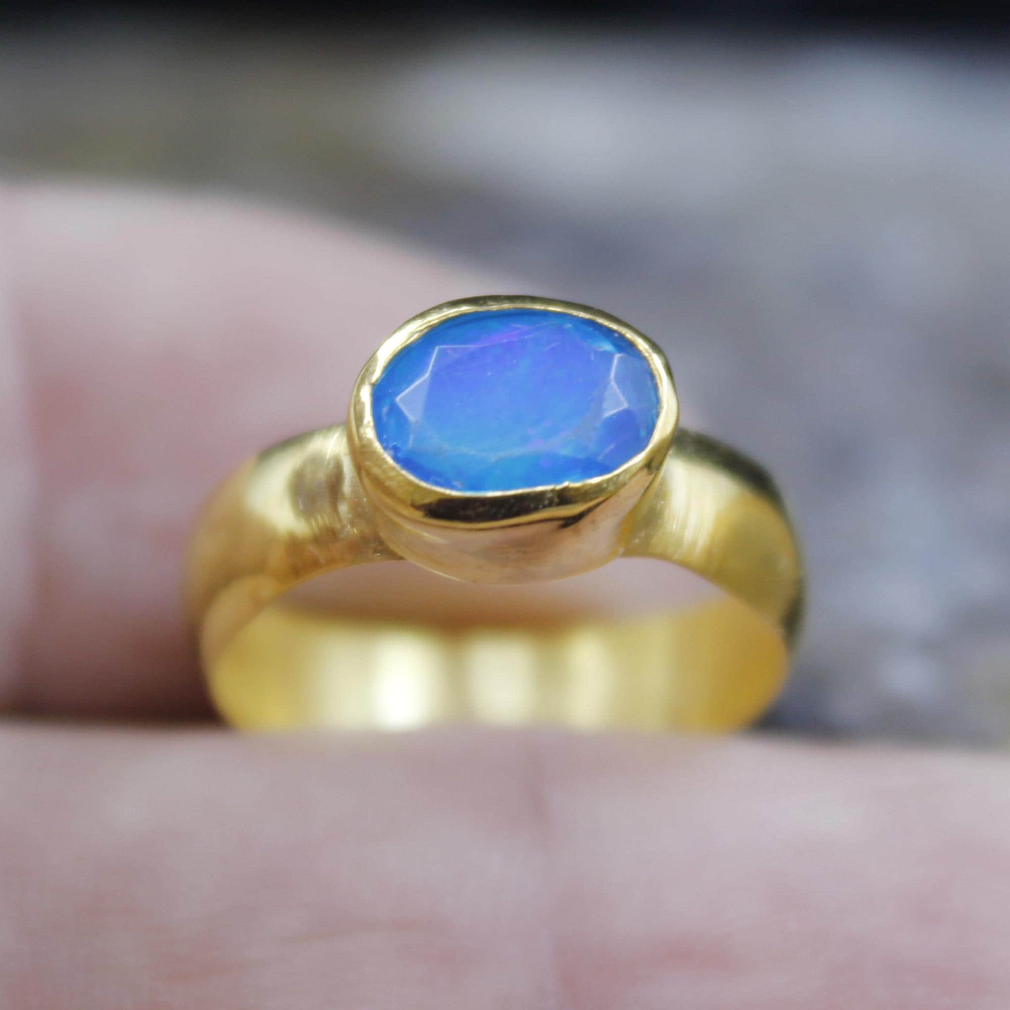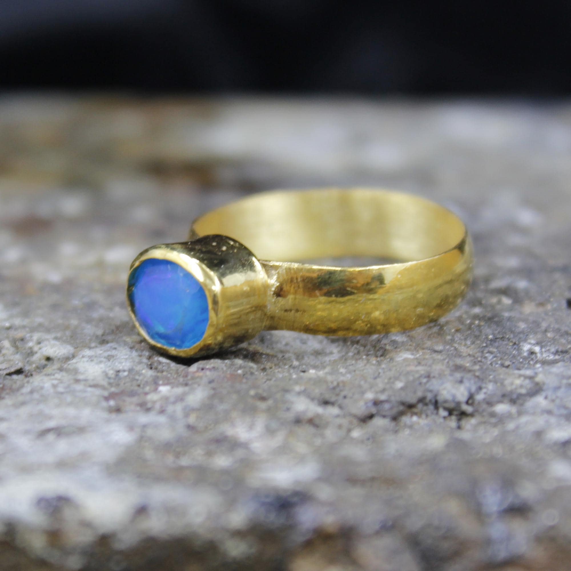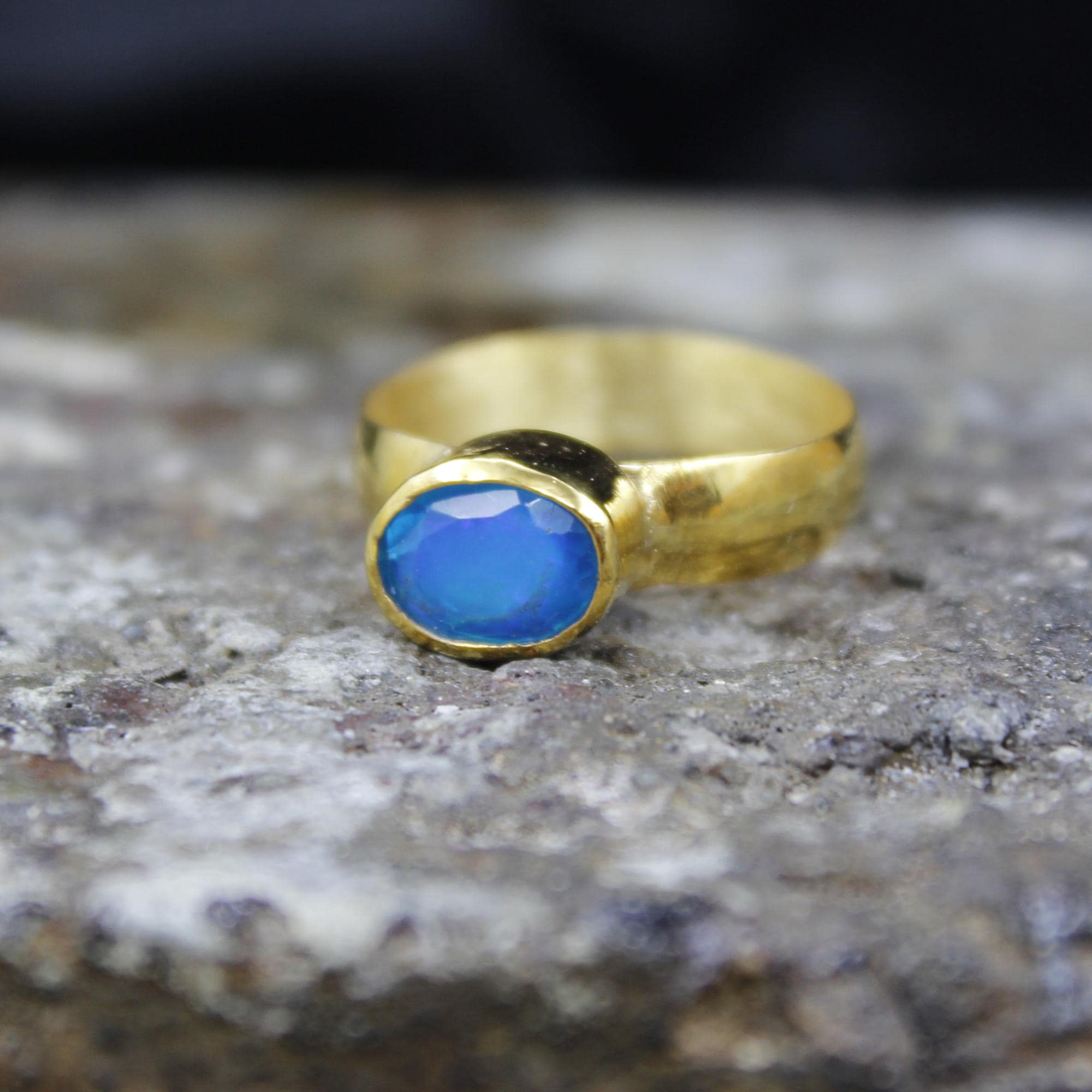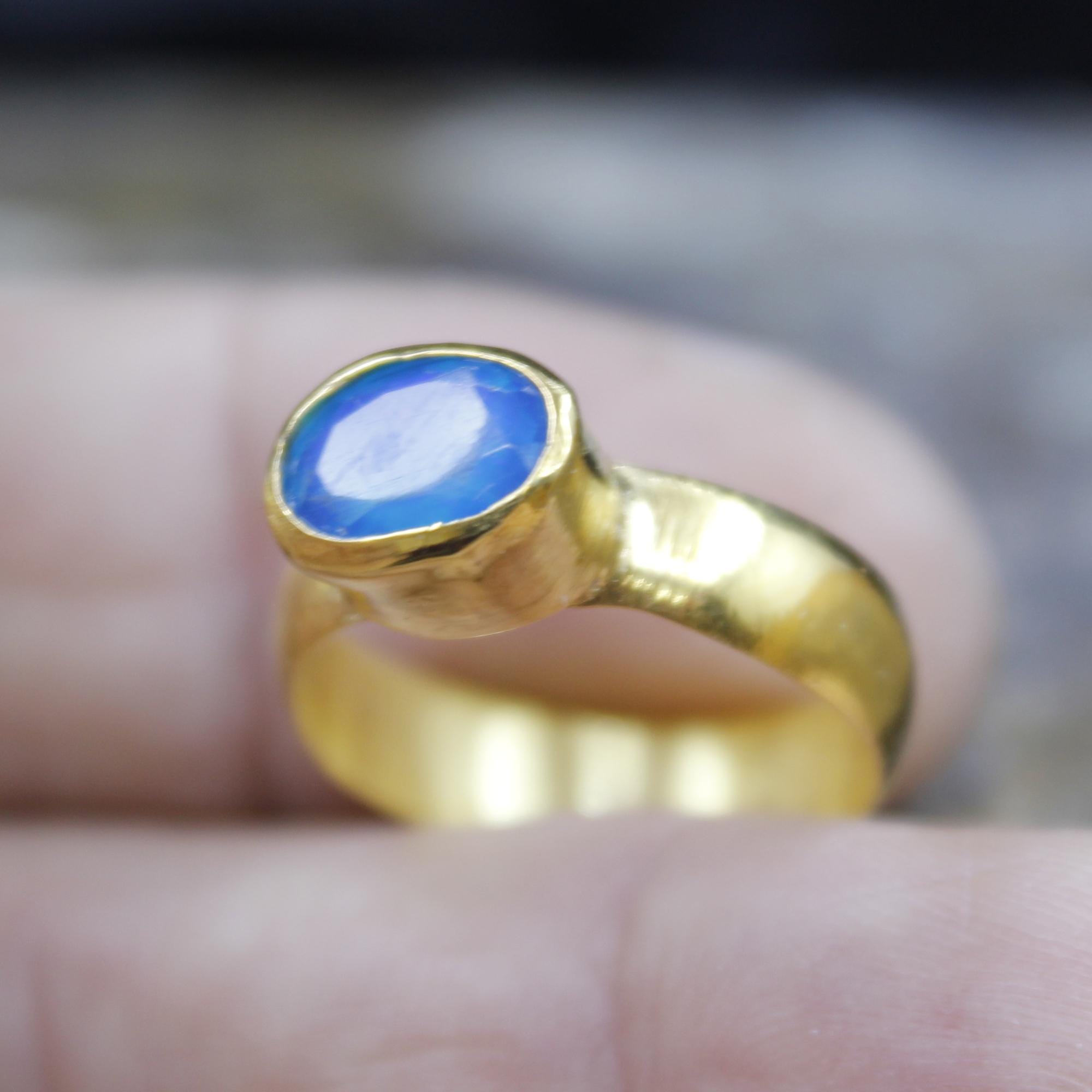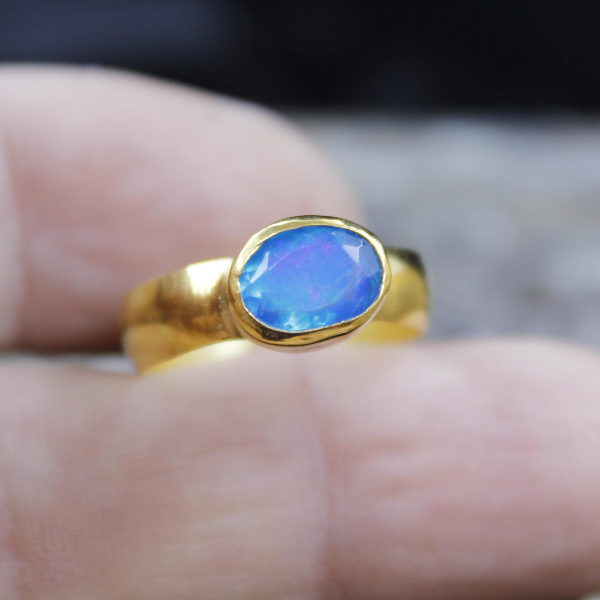 Handmade Natural Blue Opal Ring — 24K Gold Over Sterling Silver