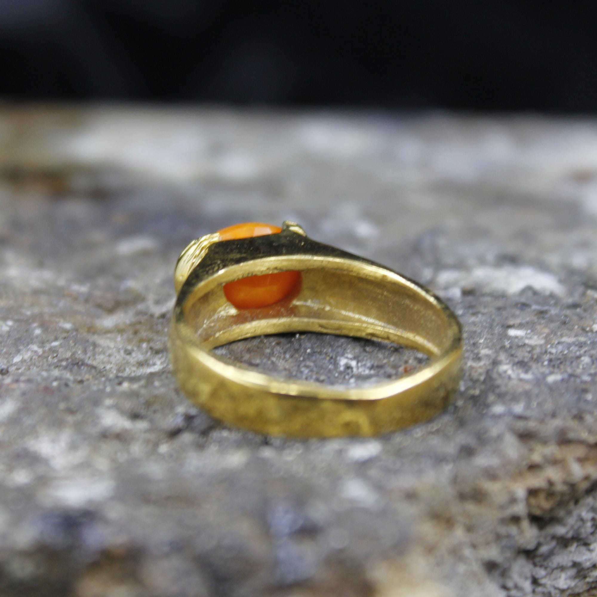 Handmade Natural Orange Fire Opal Hand-Designed Ring — 24K Gold Over Sterling Silver