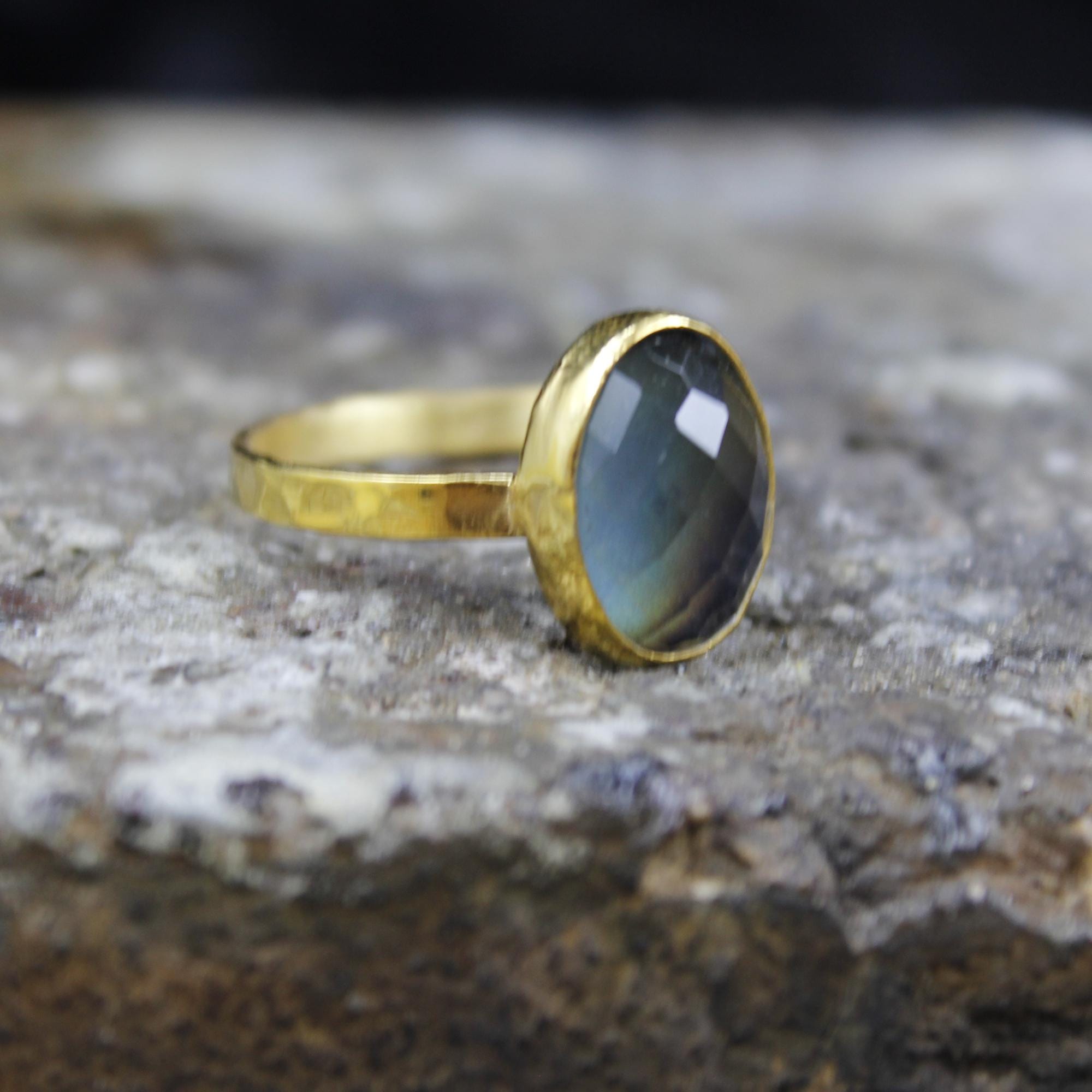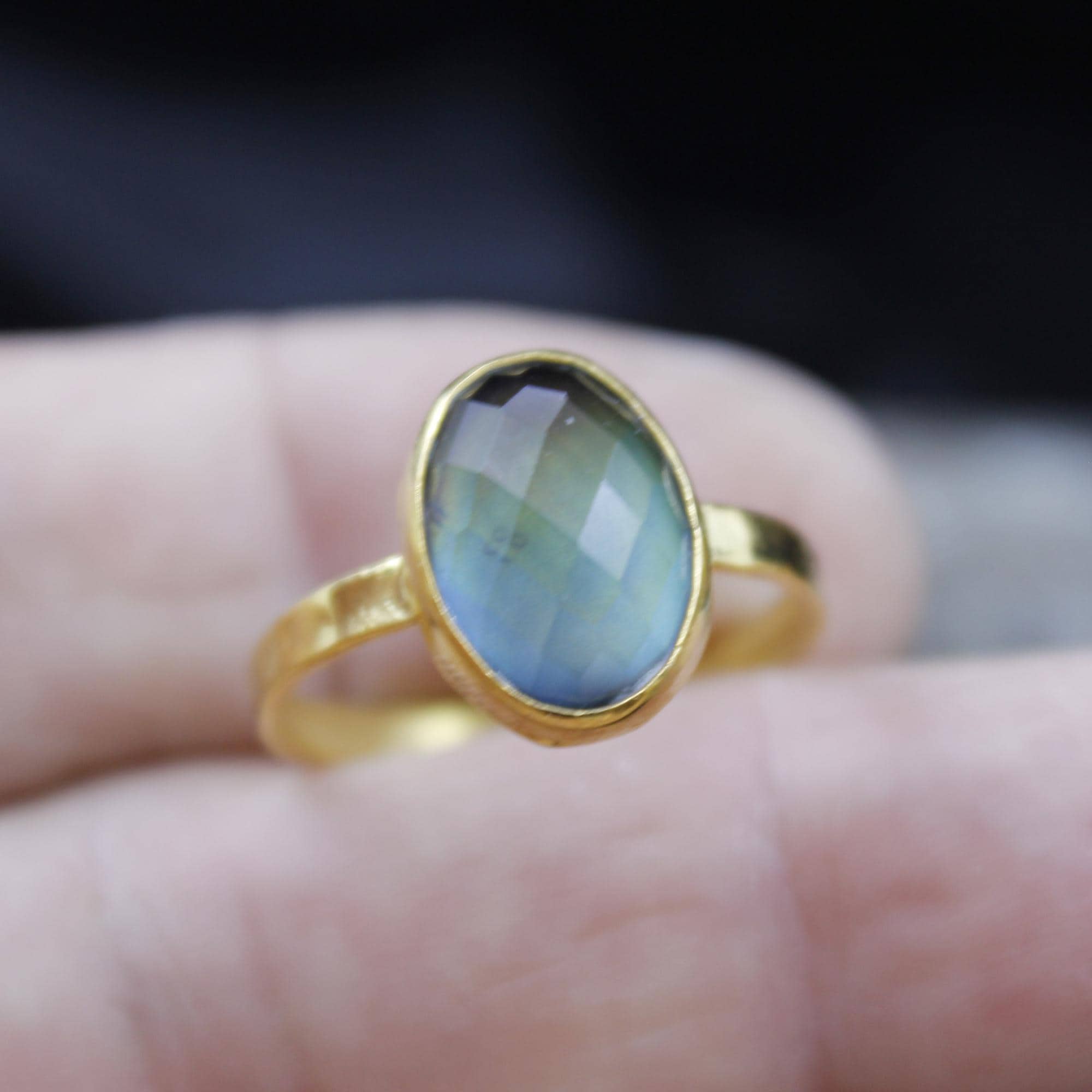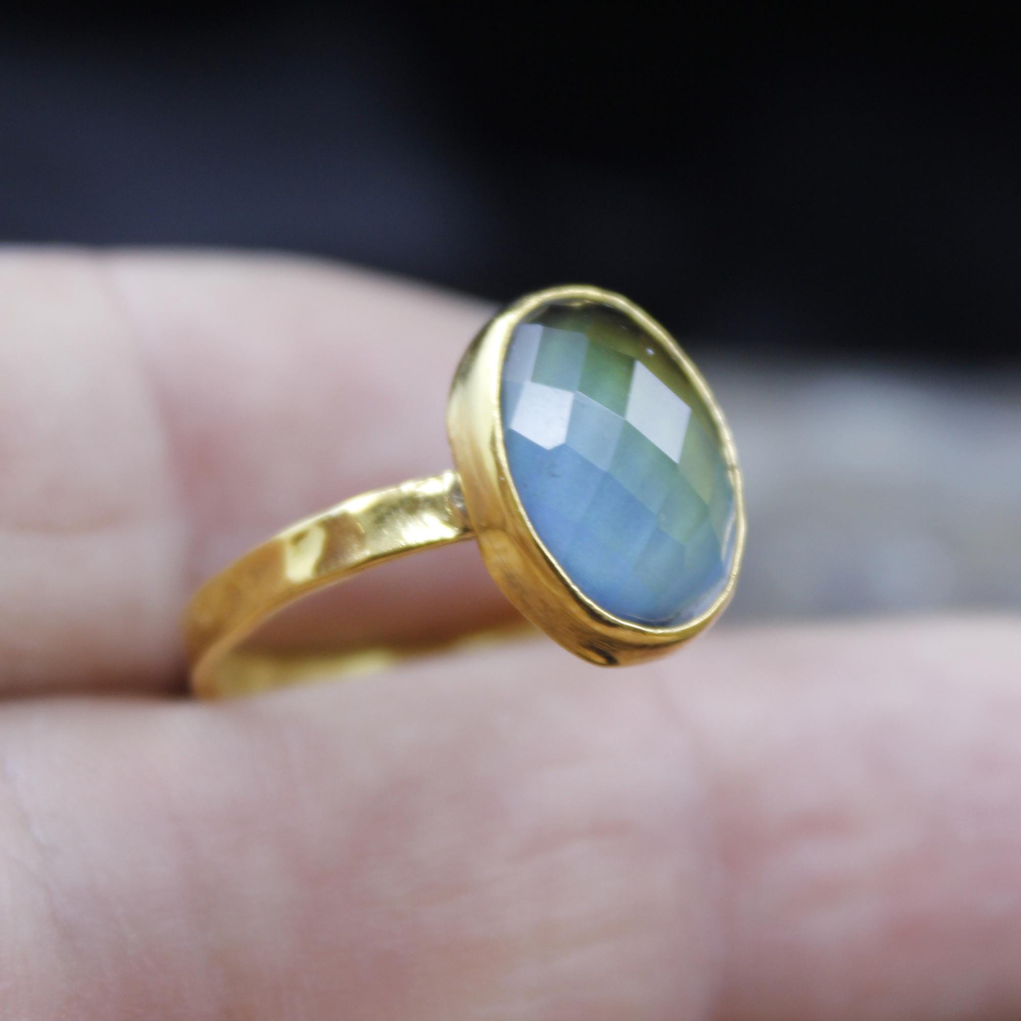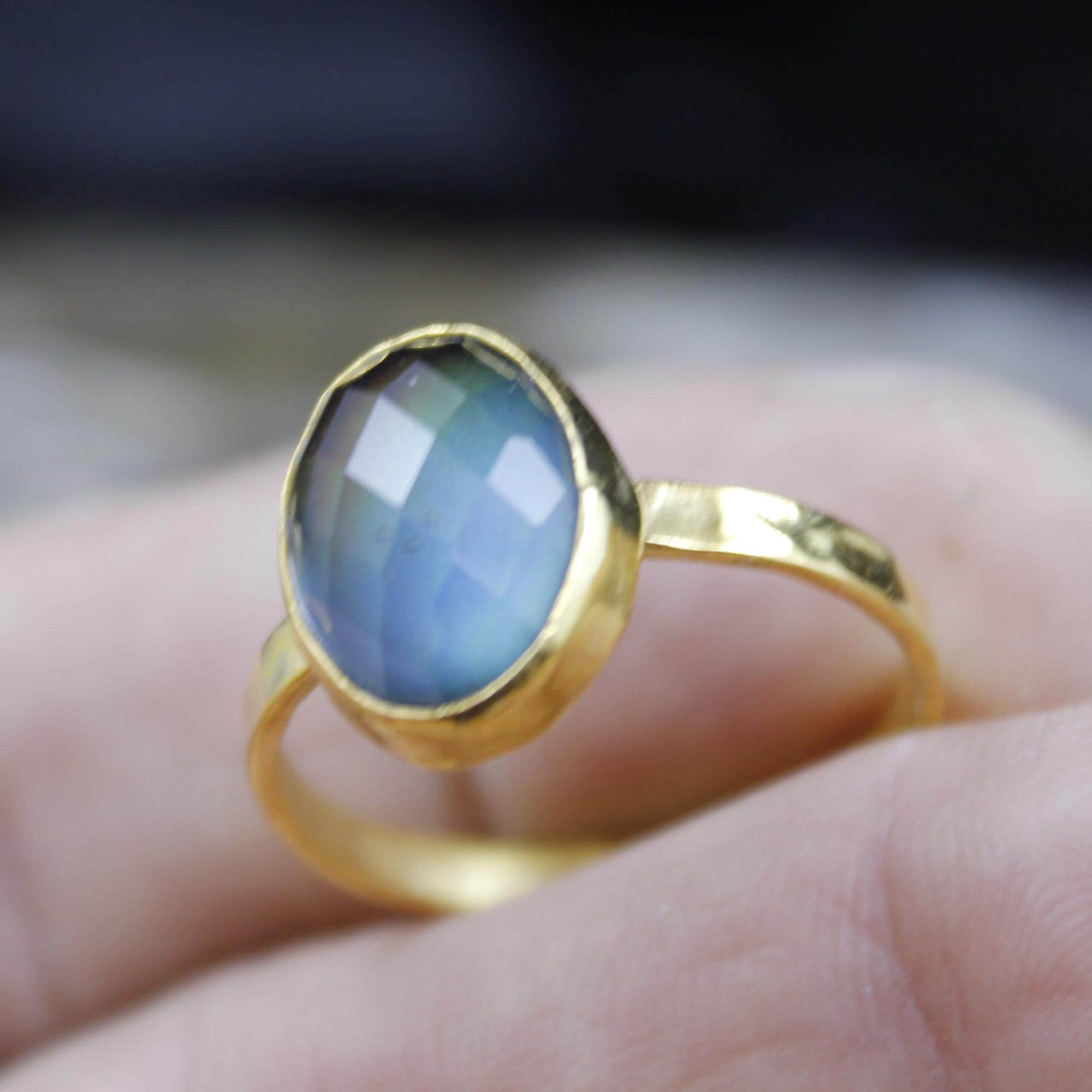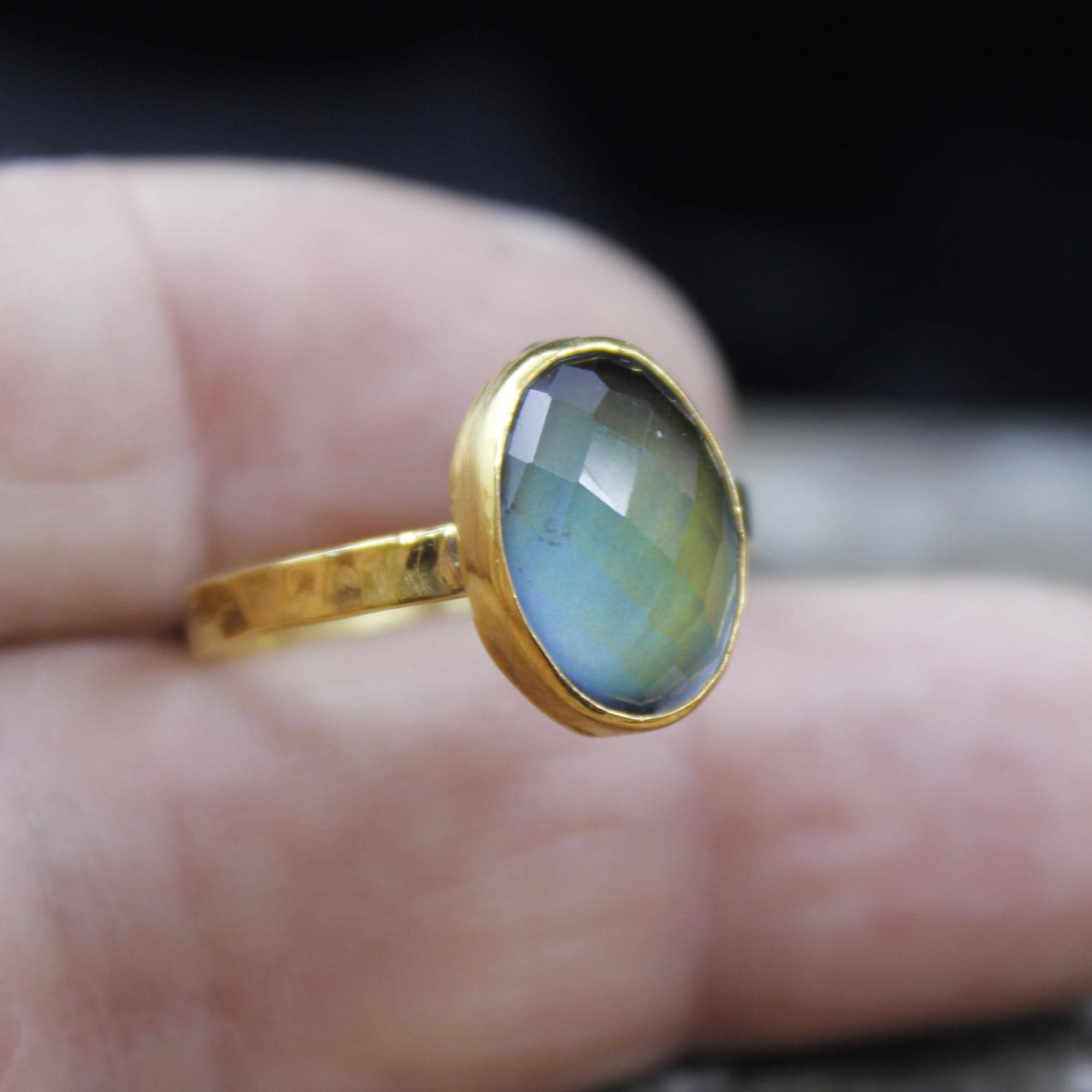Handmade Natural Feeling Mood Gemstone Ring — 24K Gold Over Sterling Silver