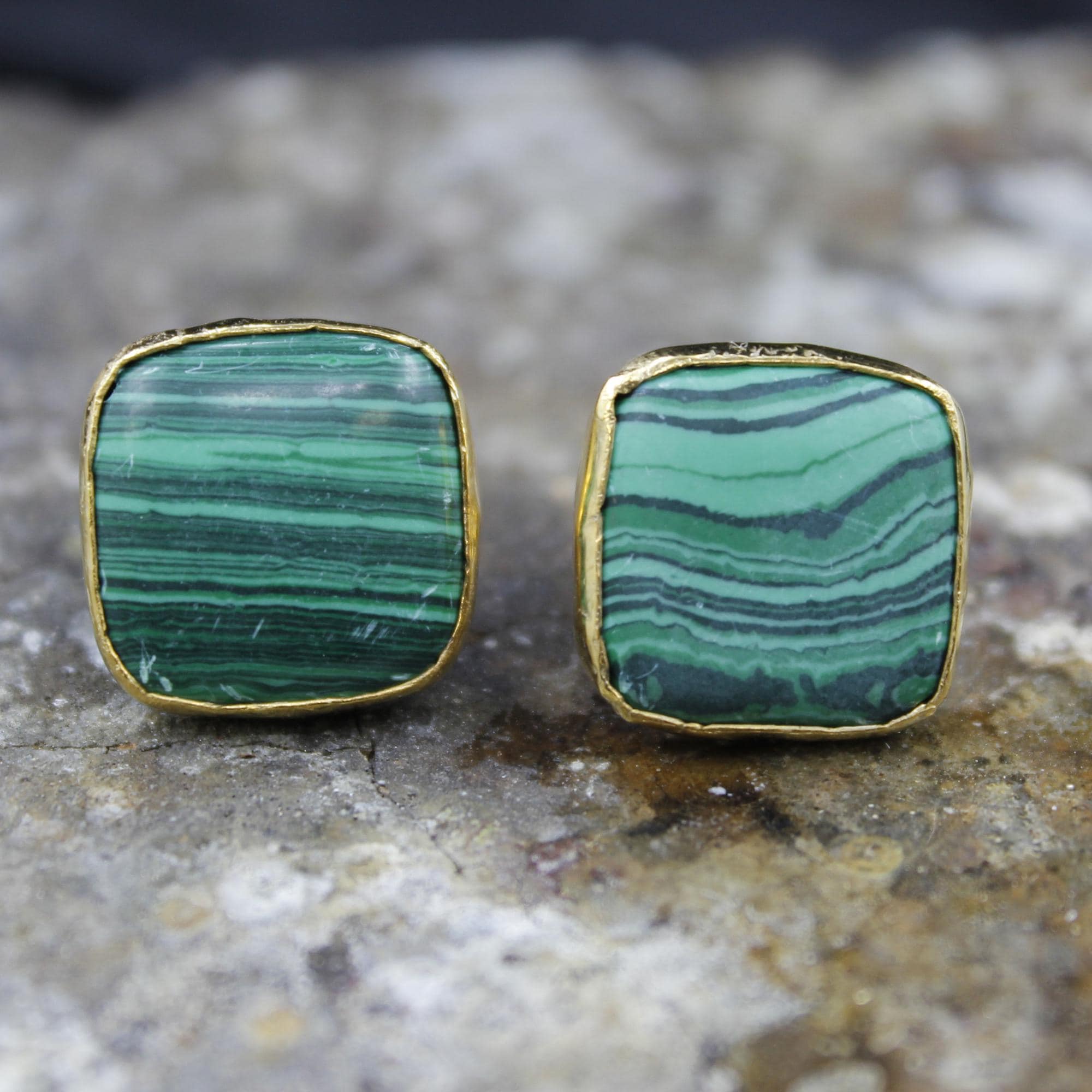 METAL: 925k Solid Silver GEM: Lab Created Malachite Stone Size: 18 x 18 mm Finish : Yellow Gold Vermeil , Solid Silver Finish, Rose Gold Vermeil