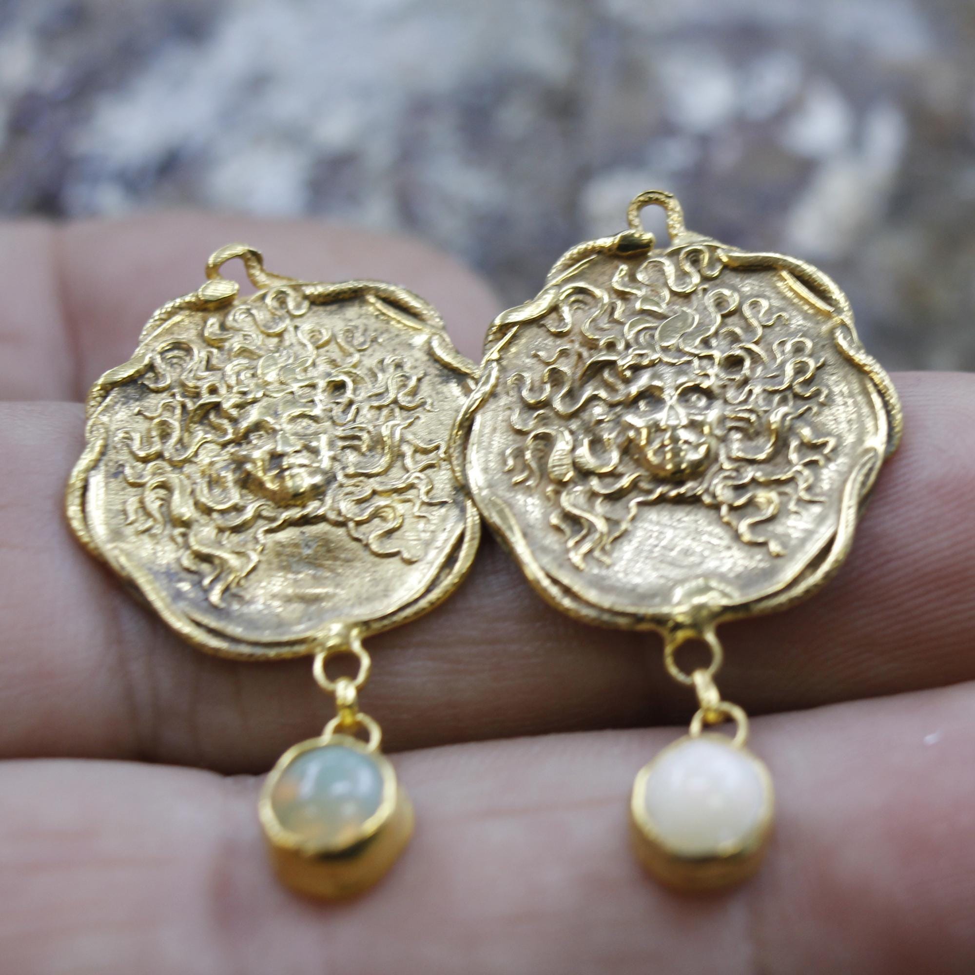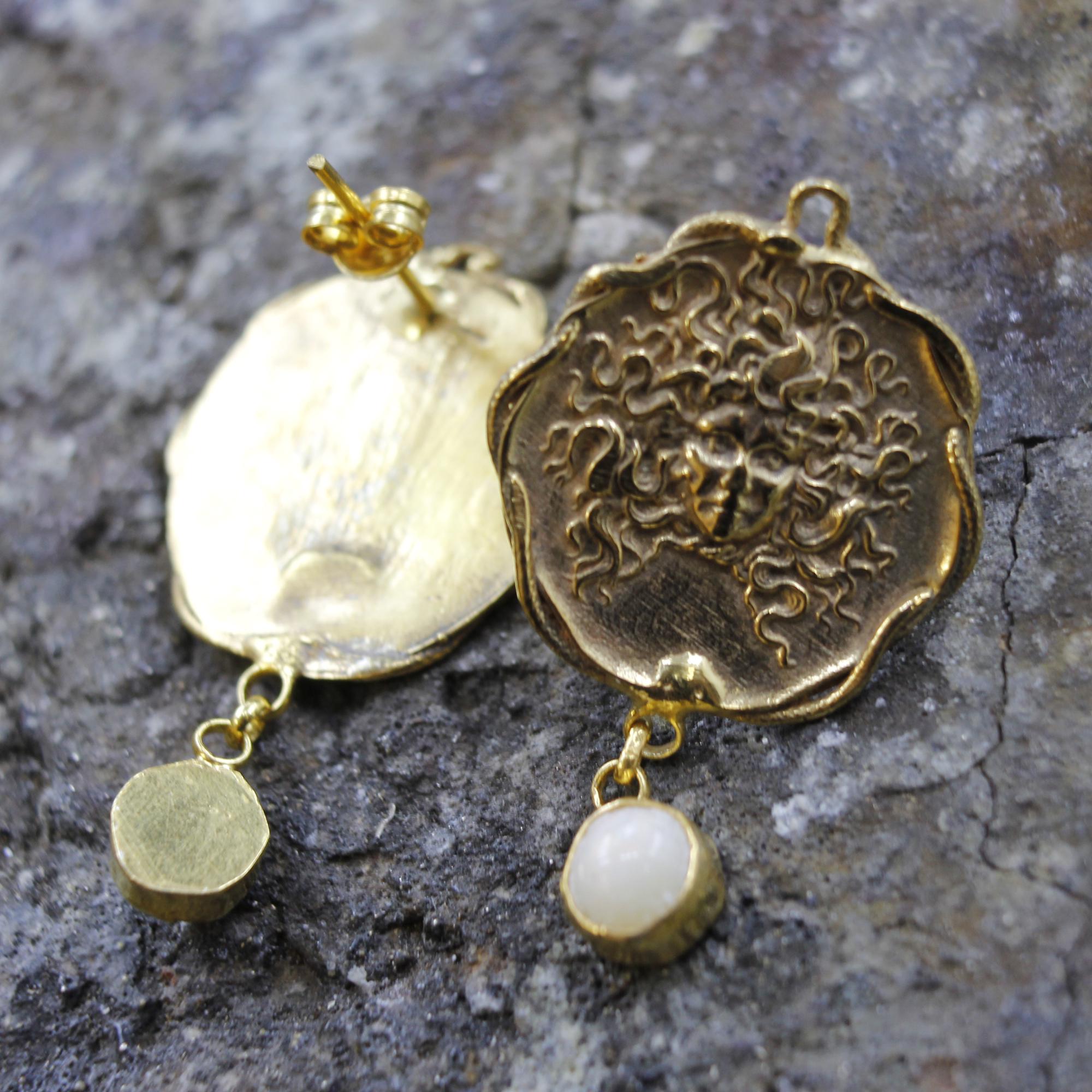 🧿 Medusa Intaglio Design: Featuring finely carved Medusa motifs in rich bronze, these earrings channel protective energy and mythic charm. Medusa’s gaze has long been regarded as a symbol of courage, transformation, and feminine strength — a powerful accent for everyday wear or special occasions.